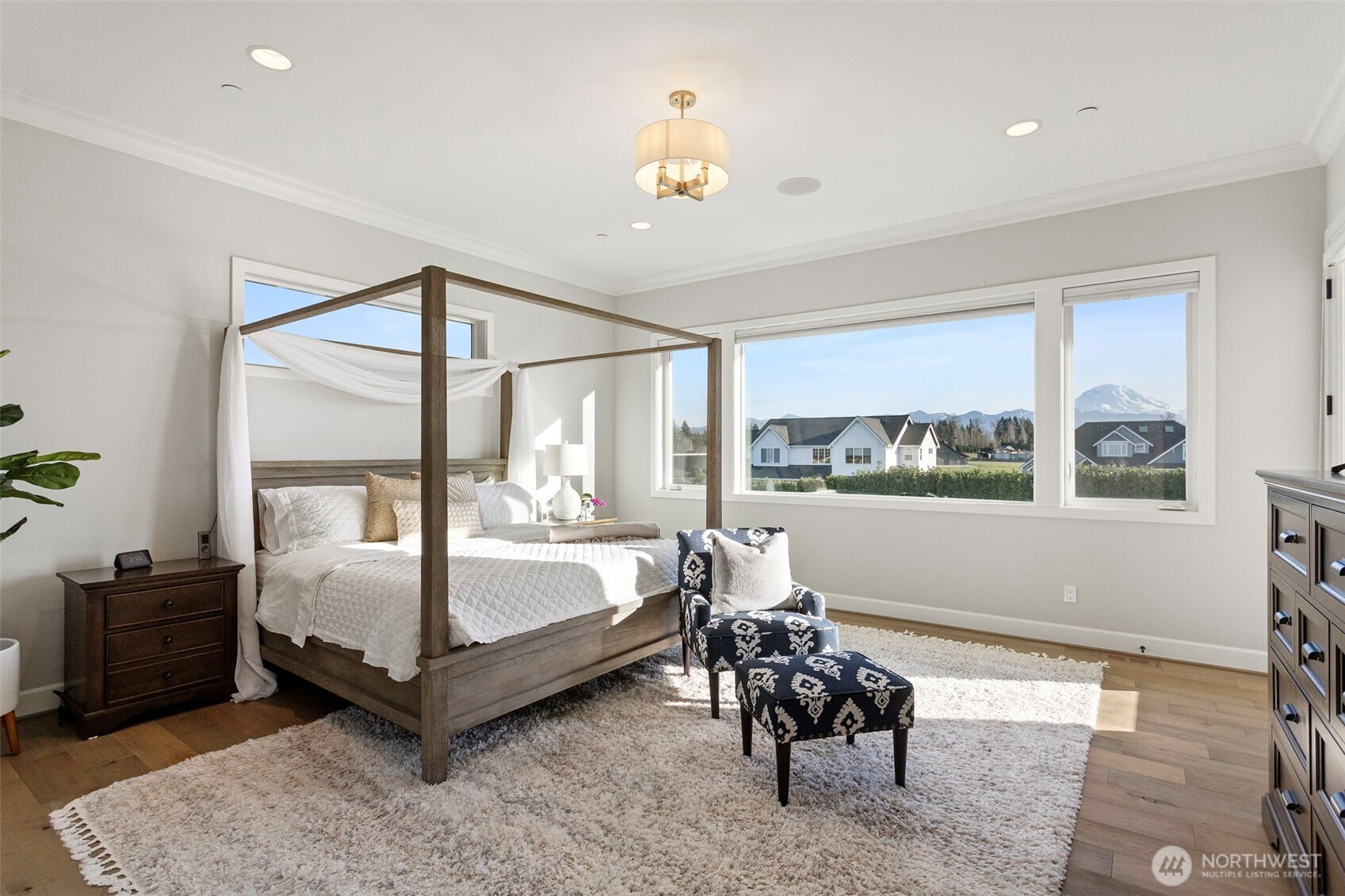 WELCOME TO MOUNTAIN VIEW HOME: A gated 4.89-acre sanctuary at the end of a quiet cul-de-sac in prestigious Bonney Lake Estates. This rare legacy compound offers the perfect balance of rural privacy & modern convenience, boasting sweeping, storybook views of Mt. Rainier, just minutes from Lake Tapps, Shopping, & Hwy 410. THE RESIDENCE: A striking new pivot door welcomes you into this 4,235 sq ft Steve Jensen masterpiece. This thoughtfully designed rambler features soaring 12' ceilings & expansive walls of glass that invite the mountain landscape inside. The chef’s kitchen is a culinary triumph w/ SS appliances, quartz counters, & walk-in pantry, flowing seamlessly into grand living spaces. Retreat to the primary suite’s spa-inspired 5-piece bath or entertain year-round on the heated covered patio w/ gas firepit. THE ULTIMATE SHOP & ADU: Fully fenced grounds are an enthusiast's dream. The 40x40 insulated shop features 200-amp service, 32x12 bi-fold door, workbench, & half bath. Plus, a 612 sq ft ADU w/ full kitchen, bed, bath, & laundry—ideal for multi-gen living or a private studio. THE LIFESTYLE: Life in Buckley near Bonney Lake blends mountain-view vibrancy w/ small-town energy. This move-in-ready estate is a rare find—beautifully finished & meticulously maintained. Why wait for the uncertainty of new construction when you can secure a perfected, turnkey legacy today?