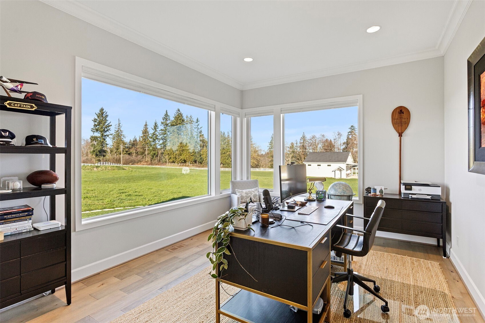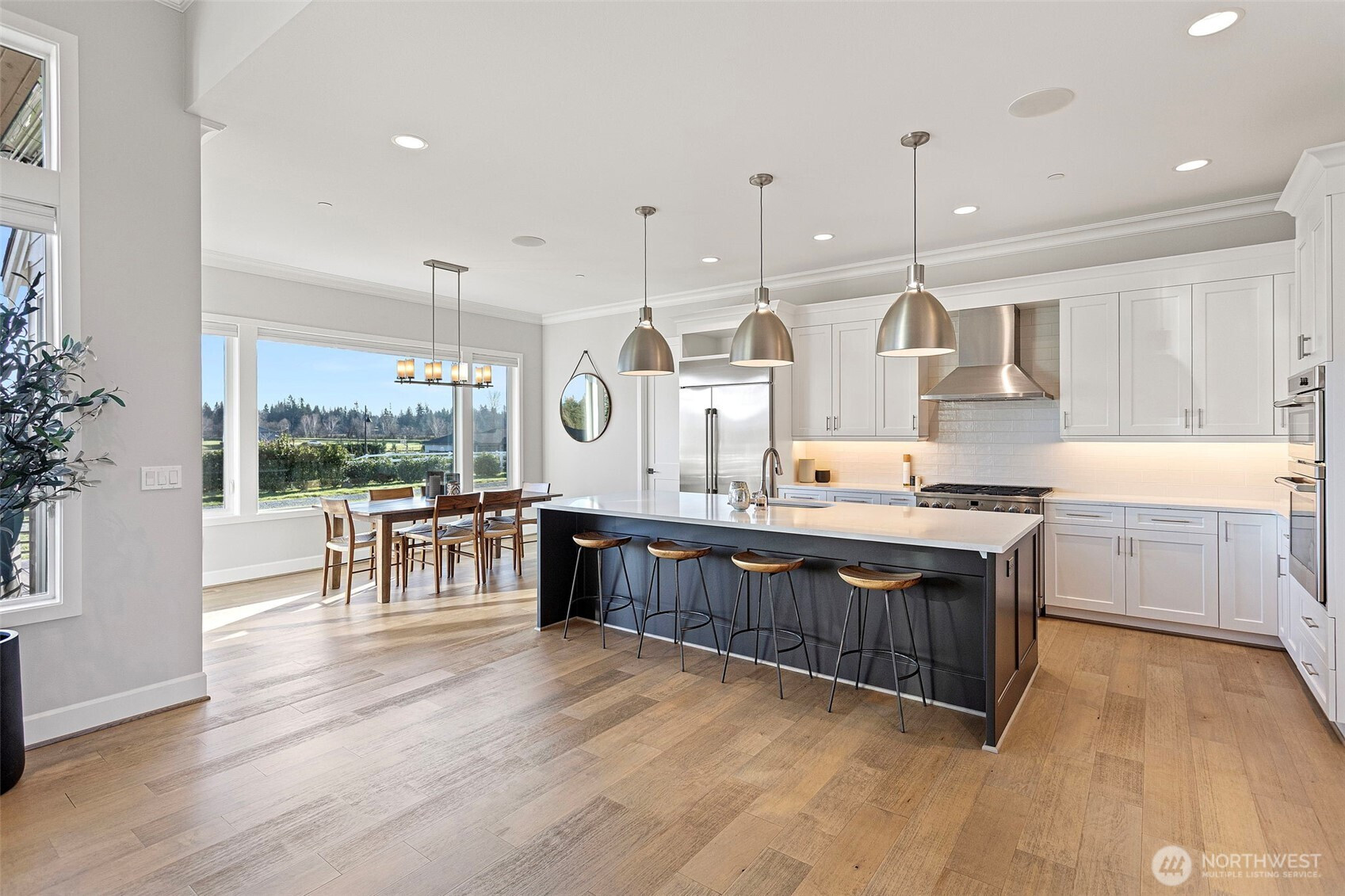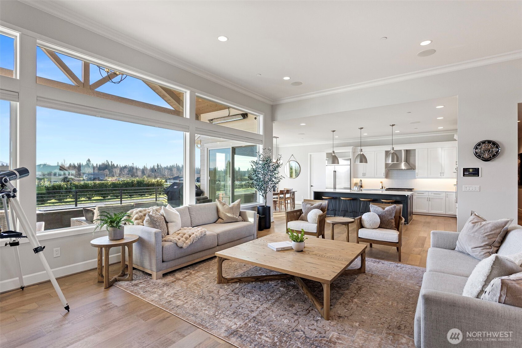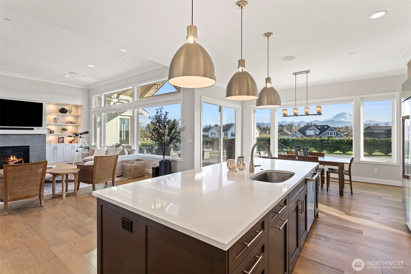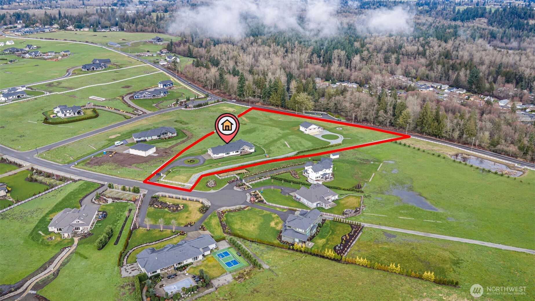 WELCOME TO MOUNTAIN VIEW HOME: A gated 4.89-acre sanctuary at the end of a quiet cul-de-sac in prestigious Bonney Lake Estates. This rare legacy compound offers the perfect balance of rural privacy & modern convenience, boasting sweeping, storybook views of Mt. Rainier, just minutes from Lake Tapps, Shopping, & Hwy 410. THE RESIDENCE: A striking new pivot door welcomes you into this 4,235 sq ft Steve Jensen masterpiece. This thoughtfully designed rambler features soaring 12' ceilings & expansive walls of glass that invite the mountain landscape inside. The chef’s kitchen is a culinary triumph w/ SS appliances, quartz counters, & walk-in pantry, flowing seamlessly into grand living spaces. Retreat to the primary suite’s spa-inspired 5-piece bath or entertain year-round on the heated covered patio w/ gas firepit. THE ULTIMATE SHOP & ADU: Fully fenced grounds are an enthusiast's dream. The 40x40 insulated shop features 200-amp service, 32x12 bi-fold door, workbench, & half bath. Plus, a 612 sq ft ADU w/ full kitchen, bed, bath, & laundry—ideal for multi-gen living or a private studio. THE LIFESTYLE: Life in Buckley near Bonney Lake blends mountain-view vibrancy w/ small-town energy. This move-in-ready estate is a rare find—beautifully finished & meticulously maintained. Why wait for the uncertainty of new construction when you can secure a perfected, turnkey legacy today?