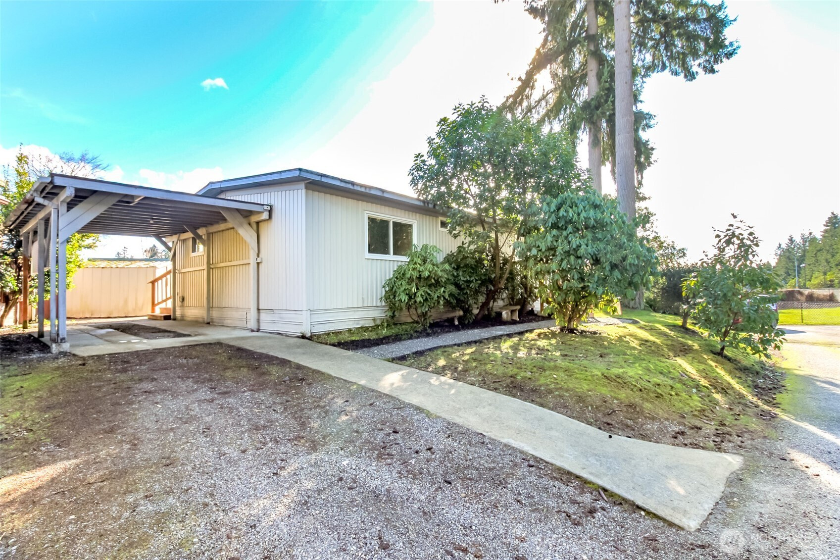 Welcome home to this charming and beautifully updated 2-bedroom, 1.75-bath mobile home nestled in a desirable 55+ community in Gig Harbor. Filled with natural light, this inviting home offers a bright and airy feel throughout, enhanced by fresh interior paint, brand-new flooring throughout, and beautiful new exterior decks. The updated kitchen features modern appliances, ample cabinetry, and a functional layout perfect for everyday living and entertaining. Both bathrooms have been tastefully refreshed, offering comfort and style. Step outside to enjoy the new covered back deck with an awning—ideal for relaxing year-round. The generously sized backyard provides plenty of space for gardening, hobbies, or outdoor activities, all surrounded by attractive landscaping that adds to the home’s curb appeal. Additional highlights include a convenient carport for covered parking and a backyard shed for tools and extra storage. This home offers a peaceful setting while remaining close to shopping, dining, and local amenities. This move-in-ready home is the perfect blend of comfort, charm, and convenience—don’t miss your opportunity to make it yours! Owner Financing Also Available!