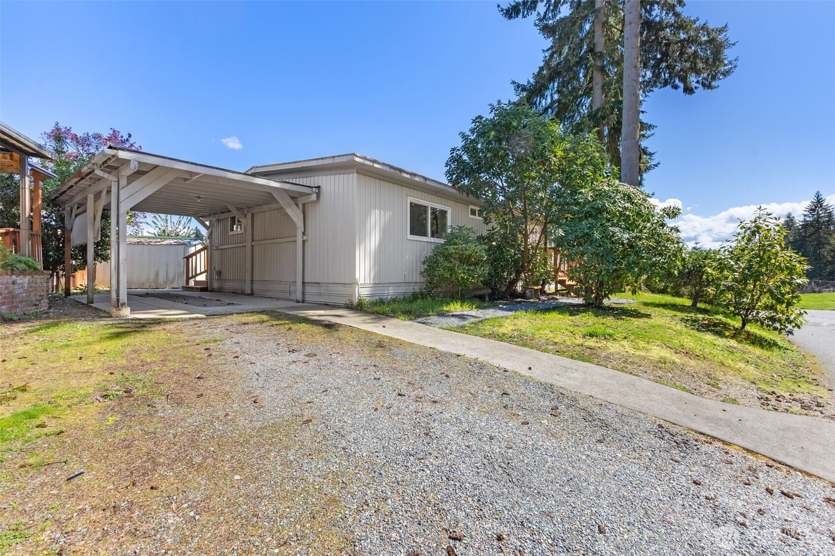 Welcome to West Anchor Mobile Home Park a highly sought-after 55+ community. offering peaceful living with breathtaking views of the Iconic Tacoma Narrows Bridge and the sparkling waters of Puget Sound. Situated on arguably the best lot in the park, this spacious doublewide home sits on a private corner setting with raised garden beds, perfect for enjoying the serene surroundings. Inside, you’ll find a thoughtfully updated interior featuring a separate living room and dining room, ideal for both everyday living and entertaining. The fully remodeled kitchen shines with new cabinetry, granite countertops, all-new appliances, and a generous eating area. Recent upgrades continue throughout the home, including all new Luxury Vinyl Plank flooring, new vinyl windows, and beautifully renovated bathrooms. The primary suite offers a private ¾ bath, with new cabinets with Granite countertops and new fixtures while the main bath features stylish new vanity and Granite counters. Step outside to enjoy the covered patio, and a large carport providing both comfort and convenience. All of this in a quiet, well-maintained community with unbeatable views. Space rent is 1100/month—great value for this location and lifestyle. Park approval is required OWNER TERMS Available,