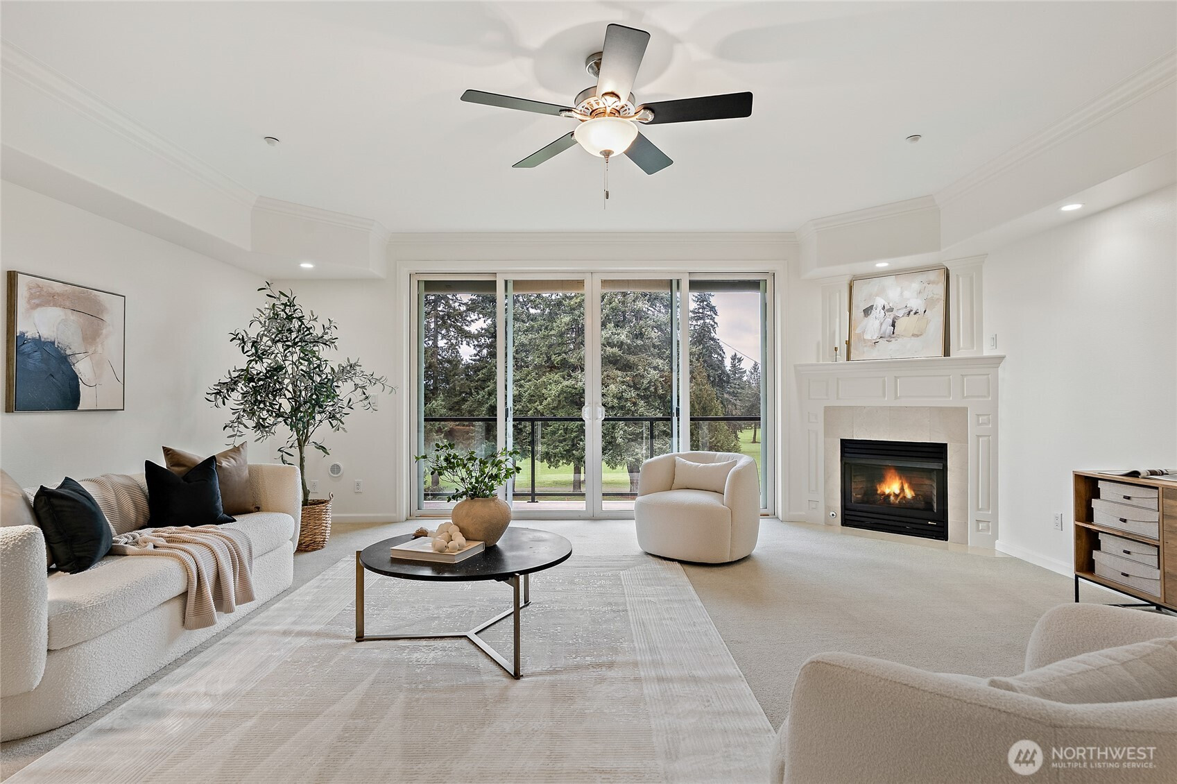 Live Your Best Life at this Allenmore East Condo! Set above the green, lush 5th hole at Allenmore Golf Course, enjoy your morning coffee on the large private deck off of the living room or primary bedroom. This light, bright home feels luxurious due to high ceilings, crown molding, radiant heated floors, open kitchen with SS appliance/gas range/beautiful granite & oversized laundry room with full sized W/D. Cozy gas fireplace. Ceiling fans. The spacious primary bedroom has a 5 piece en-suite bath with spa tub. Bonus room can be used as an office, bedroom or ? 4 (yes 4) deeded parking spaces in secure garage & storage locker round out this wonderful home. Close to amenities and hospital. Don't miss the views of Mt Rainier & exercise room!