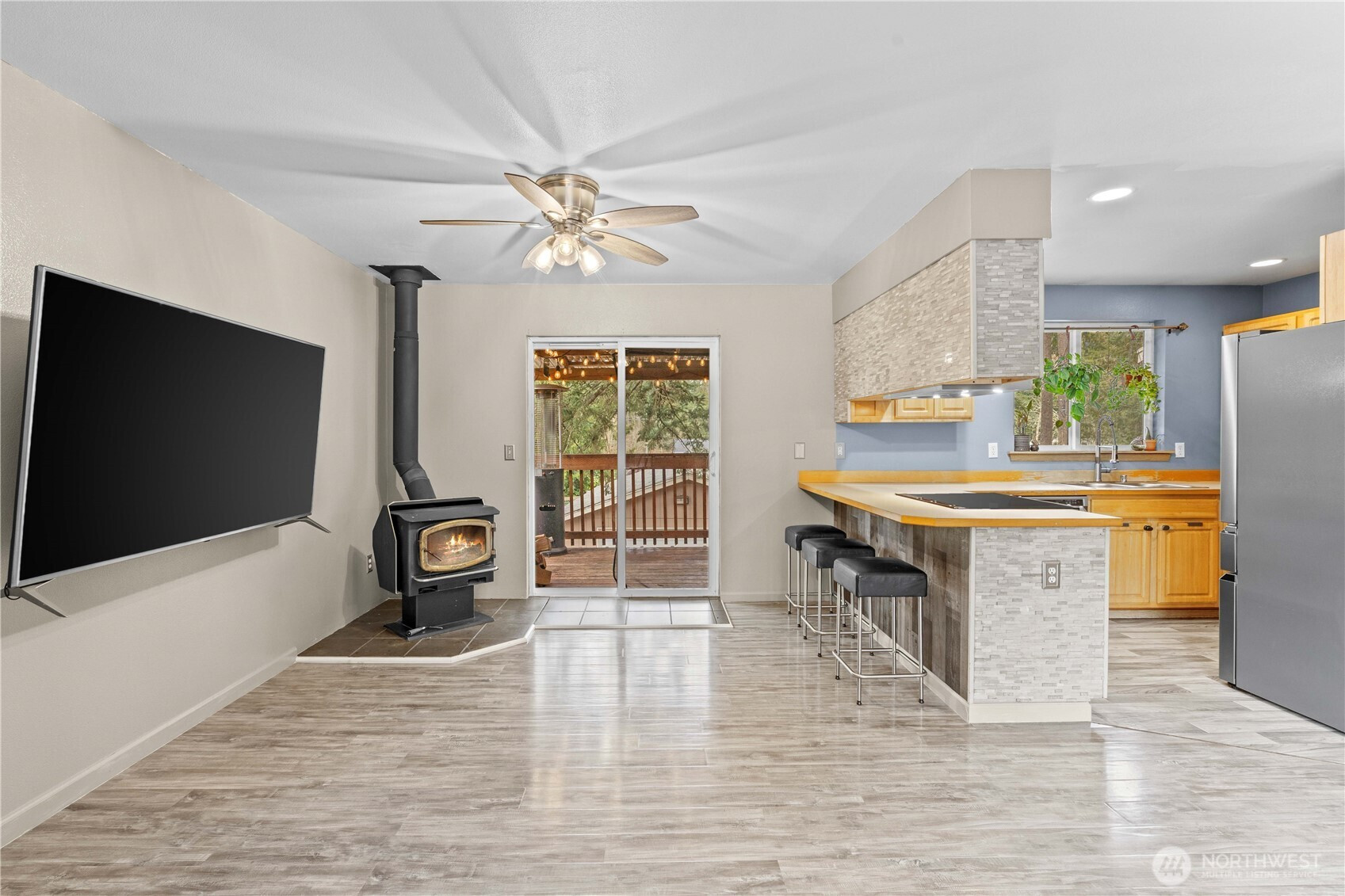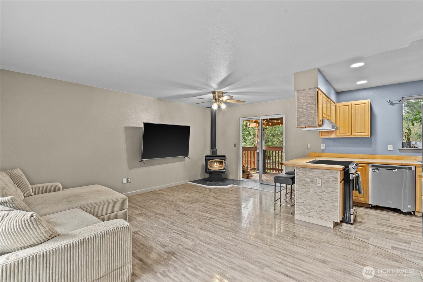 Charming 3 bed, 2 bath split-level home situated on over a quarter-acre lot with a private, park-like setting. Surrounded by beautiful evergreens, the property offers a peaceful forest-like feel while still providing plenty of functional outdoor space. The spacious deck is perfect for entertaining, overlooking the backyard and patio area featuring an awesome custom firepit—ideal for relaxing evenings with friends and family. Garden enthusiasts will appreciate the raised garden beds ready for growing whatever your heart desires. The property also features a huge detached 4-car garage/shop offering incredible space for vehicles, hobbies, storage, or a workshop. There is additional room for RV parking and extra toys, making this property perfect for those who need both indoor and outdoor space. Inside, the split-level layout provides comfortable living with three bedrooms and two bathrooms, offering flexibility for everyday living. Whether you enjoy entertaining, gardening, working on projects, or simply relaxing in a serene backyard setting, this property offers the space and versatility to make it your own.