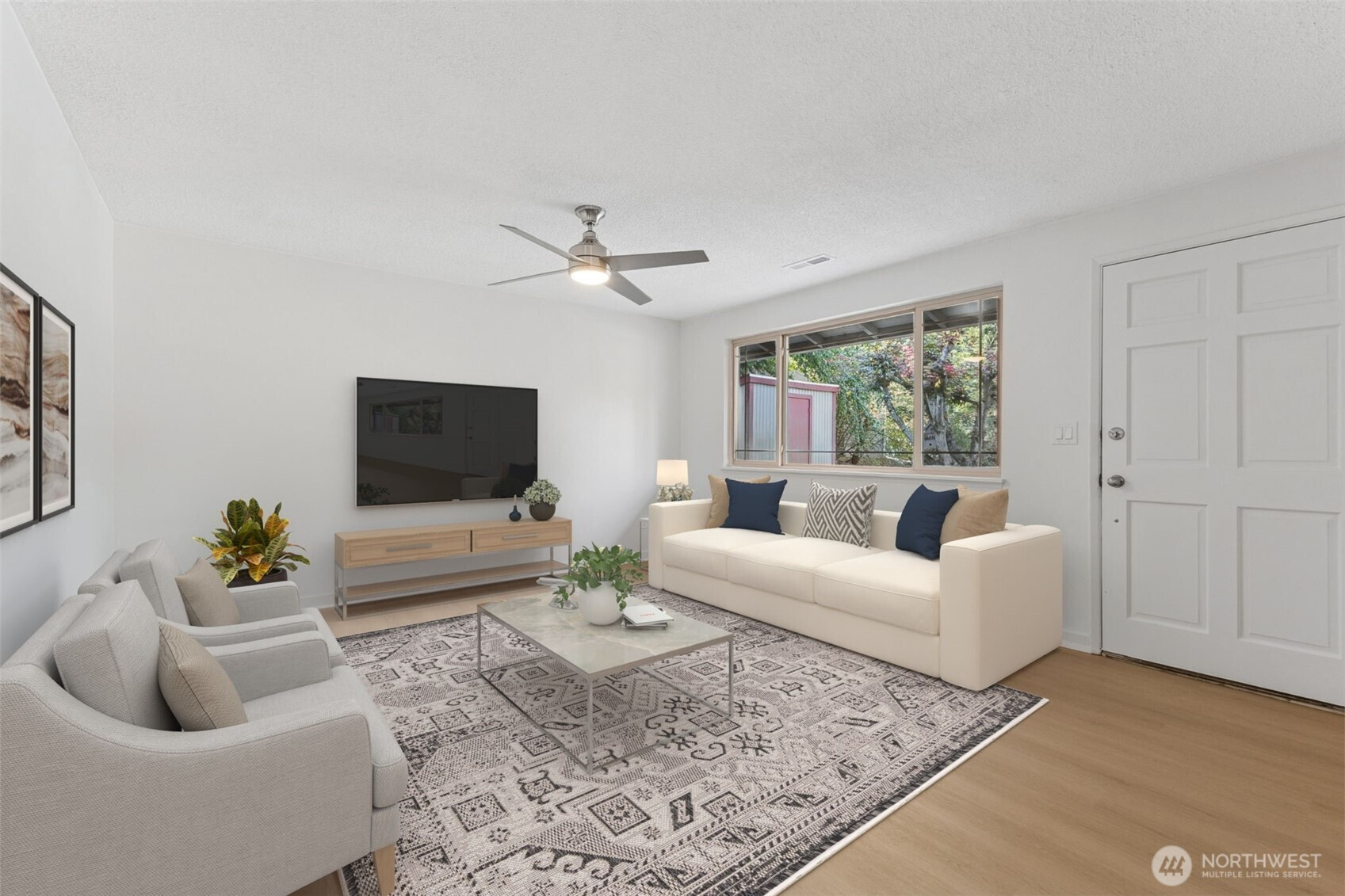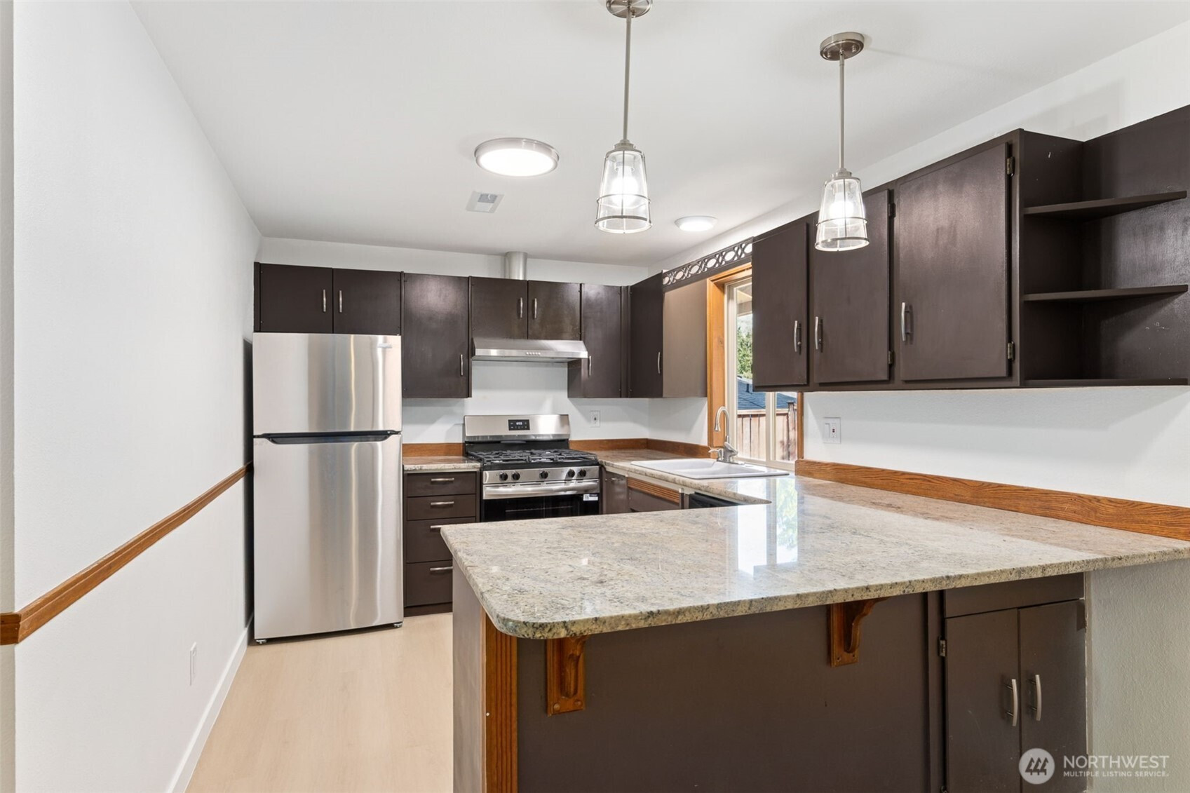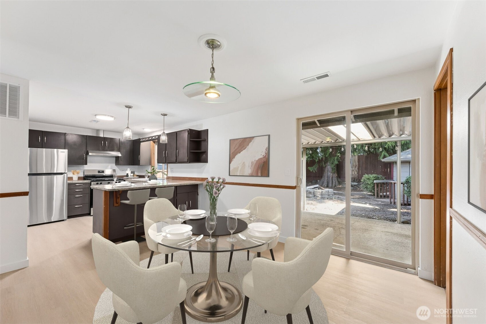 Welcome home to a turnkey home in the heart of Puyallup! The long driveway showcases a fully fenced large corner lot with mature trees to maximize privacy. Inside, shining new LVP flooring runs throughout. Large living room windows let in plenty of light as you walk to the attractive kitchen that boasts brand new stainless appliances and an eating bar. There's even a walk in pantry! Sliding doors overlook a covered patio. 4 light filled bedrooms are complemented by a modern bathroom. Close to shops, restaurants and highways. Come view your new home today!