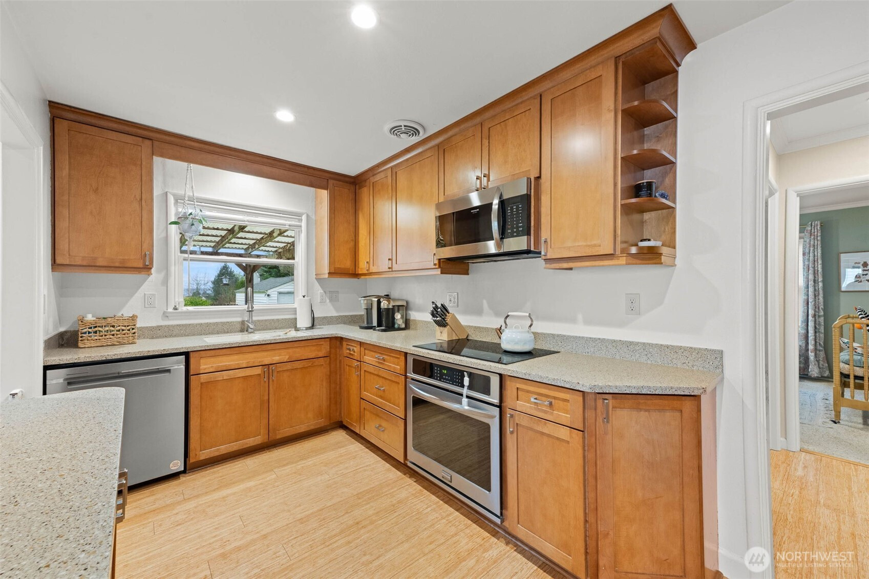 This home is amazing! Beautifully remodeled not too long ago. Newer water heater, attic insulation, ductwork, updated kitchen cabinets, counters and appliances, double pane windows bamboo floors, electrical panel, and the list goes on and on. The bamboo floors are beautiful, the bedrooms are spacious and the crown molding is a touch of elegance. The backyard has a large covered patio, perfect for entertaining. The garage is off the alley and provides additional storage. Excellent location on a quiet street in desirable University Place close to shopping and amenities. This home will NOT last long!!!