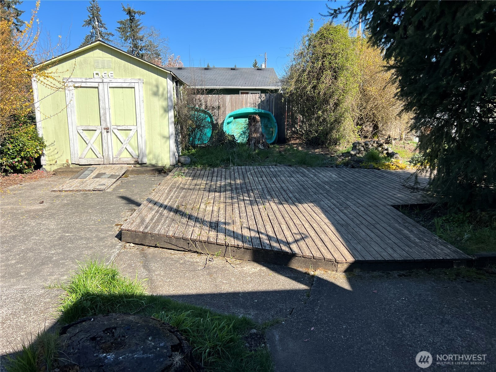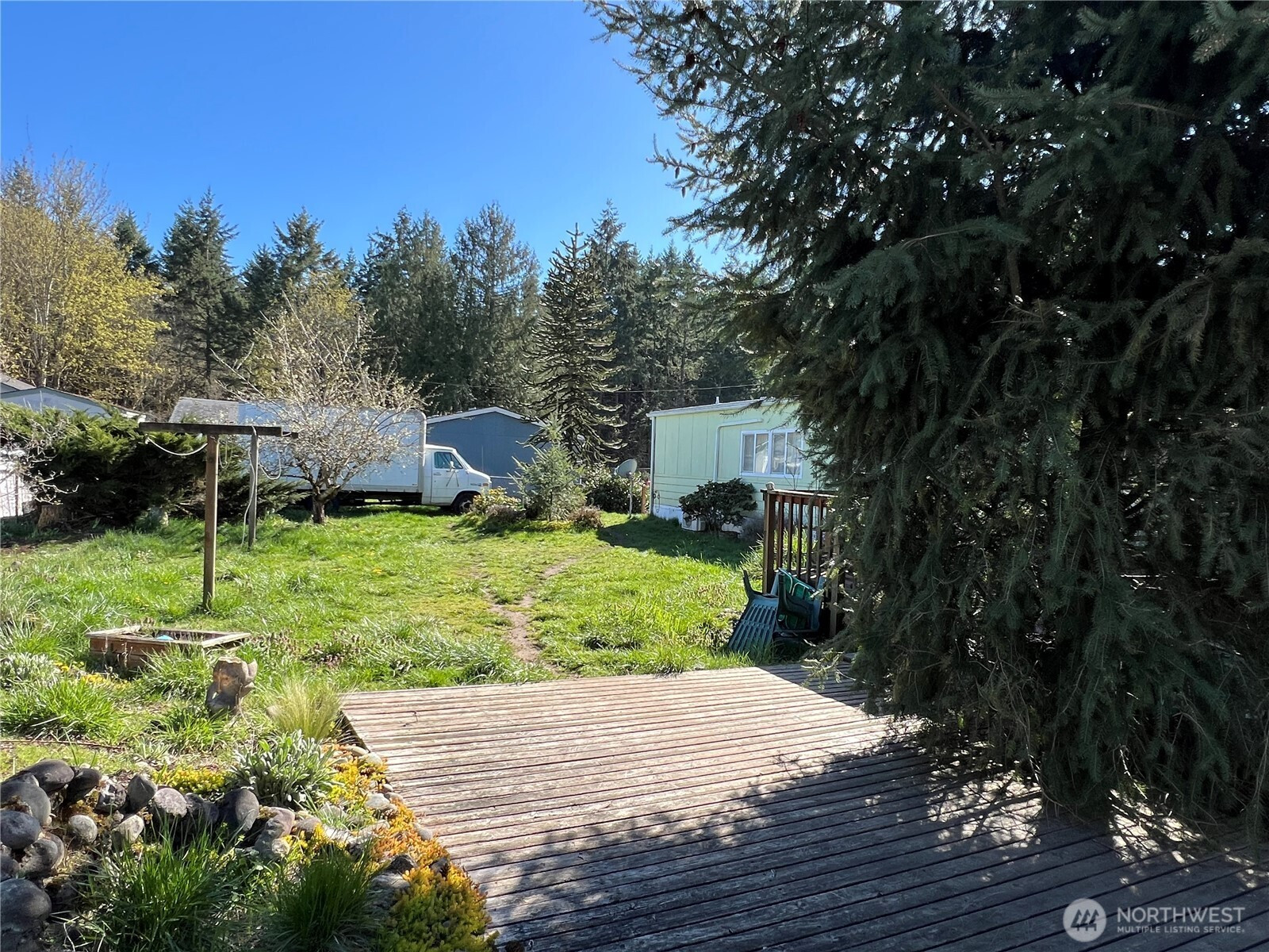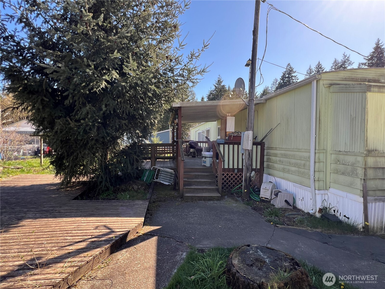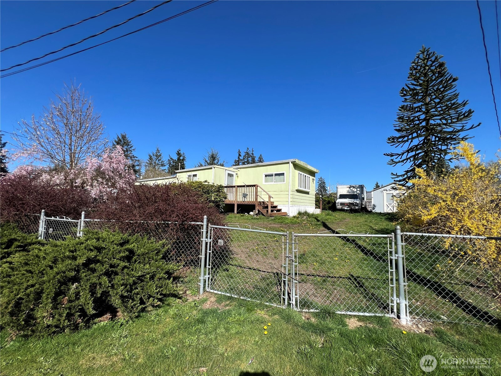 Great Opportunity on a Spacious Cul-de-Sac Lot! This 3-bedroom, 2-bath home sits on a shy 1/3-acre lot in a quiet cul-de-sac surrounded by newer stick-built homes. The property features a beautifully established yard filled with mature flowers and shrubs, creating a private and inviting setting. Enjoy outdoor living on the expansive tiered deck—perfect for entertaining. Two outbuildings, both with power, offer excellent space for storage, hobbies, or a workshop. The fully chain-link fenced yard includes two gated entrances for added convenience and security. Additional features include air conditioning, a paved driveway, and a detached carport. Ideal as a starter home, new build opportunity or investment property. Sold as-is, cash only.