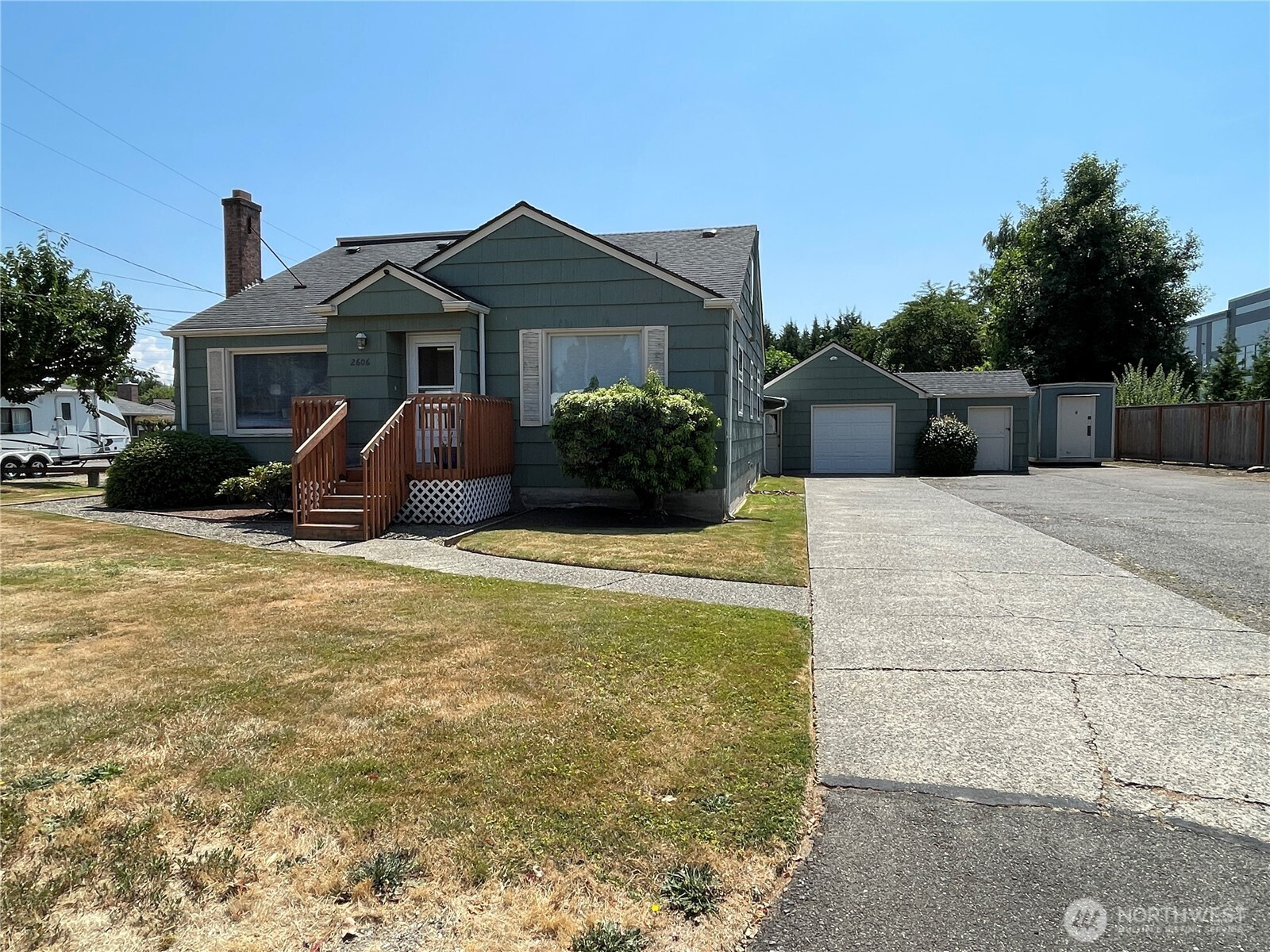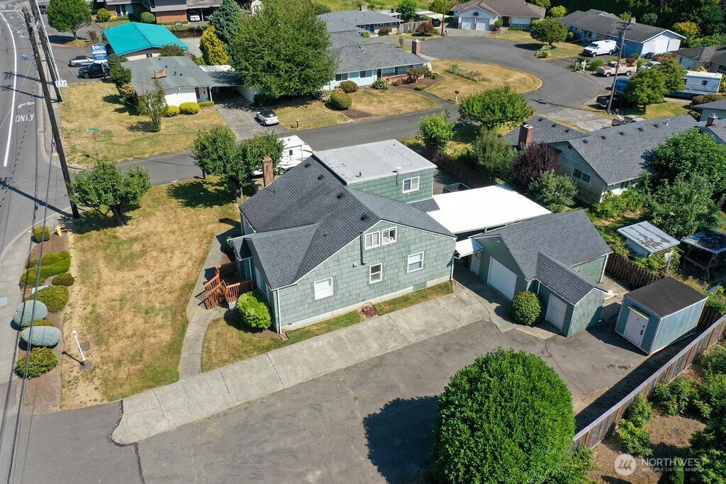 ZONED "GENERAL COMMERCIAL" in City Limits of Puyallup: 1843 SQUARE FEET OF OFFICE SPACE FOR SALE plus DETACHED GARAGE with 476 SQUARE FEET plus 8'X10' ATTACHED STORAGE... and... a DETACHED STORAGE SHED (8'x12')... LOCATED on CORNER LOT in PUYALLUP 3/4-MILE west of SR-410 & 1-MILE from SR-167... and 1/3-MILE from TOSCANOS RESTUARANT on HIGH VISIBILITY-HIGH TRAFFIC ARTERIAL...EAST MAIN AVENUE ... OFFICE is 2-STORY with 3-EXTERIOR DOOR ACCESSES... with MINIMUM of 10-WORK STATIONS.... OFFICE is HARDWIRED for INTERNET currently using VERIZON... 3/4 BATH + 1/2 BATH... with KITCHEN... CURRENT USE IS A SURVEYING OFFICE... with 10-OFFSTREET PARKING SPACES including 2-Covered (carport)... plus... 1-enclosed Garage Space & room for SHOP AREA.