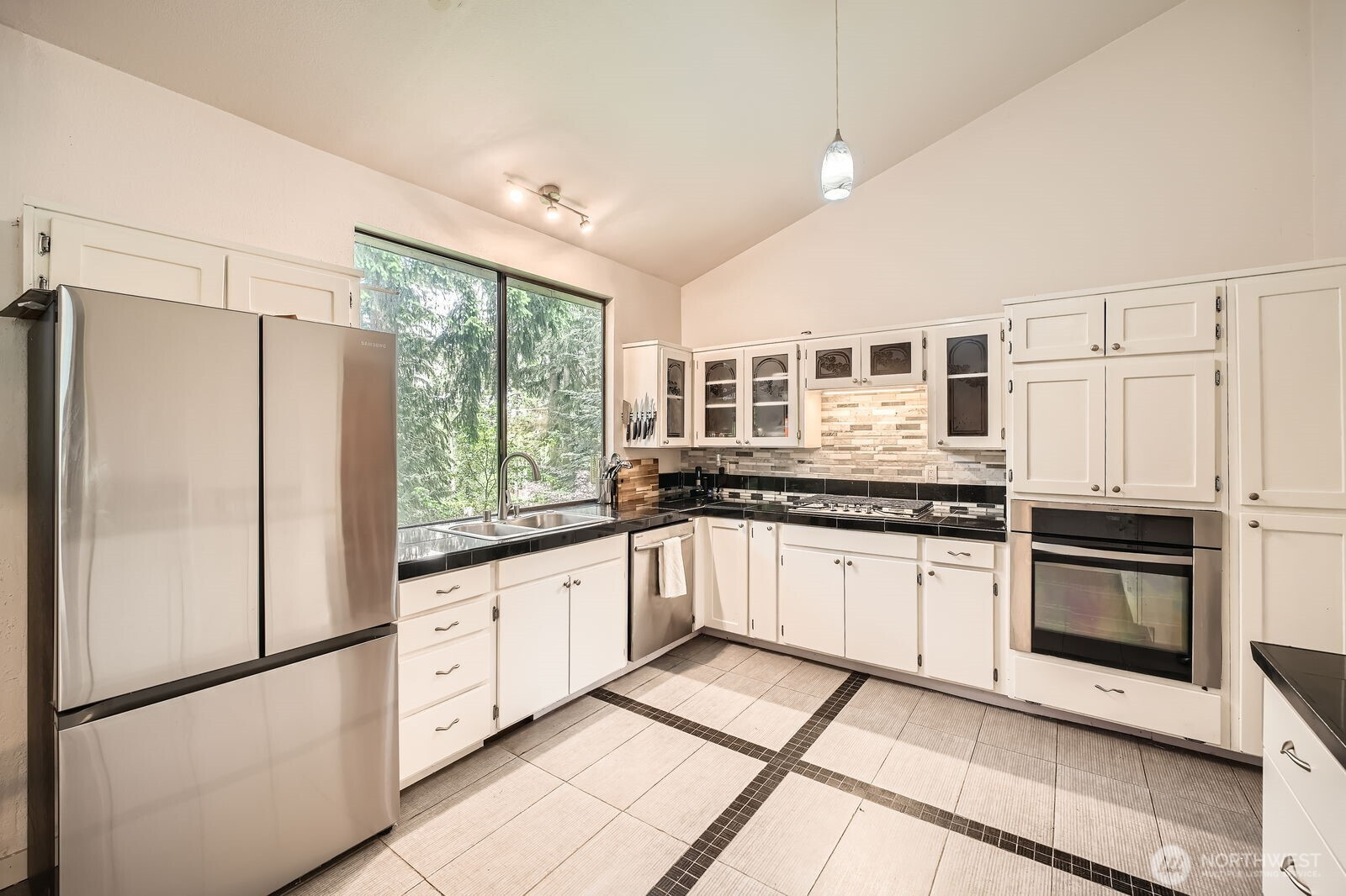 Hidden away in the tree lined Manorwood neighborhood of Puyallup, this spacious 3-bed, 2.5-bath home has a large lot with terraces and beautiful landscaping that creates a magical view from all the windows. The upper level boasts a primary suite with a upgraded ensuite bath, two additional bedrooms and a bath, an oversized kitchen with lots of storage, a living room with fireplace & dining room with deck access. The lower level adds a rec/family room, 1/2 bath, utility room, and generous oversized 2-car garage. Plus, you can’t beat the convenient location with shopping, dining, and highways just down the road. Clean inspection for our buyers to see!