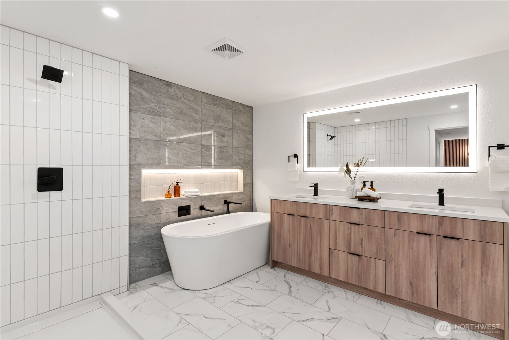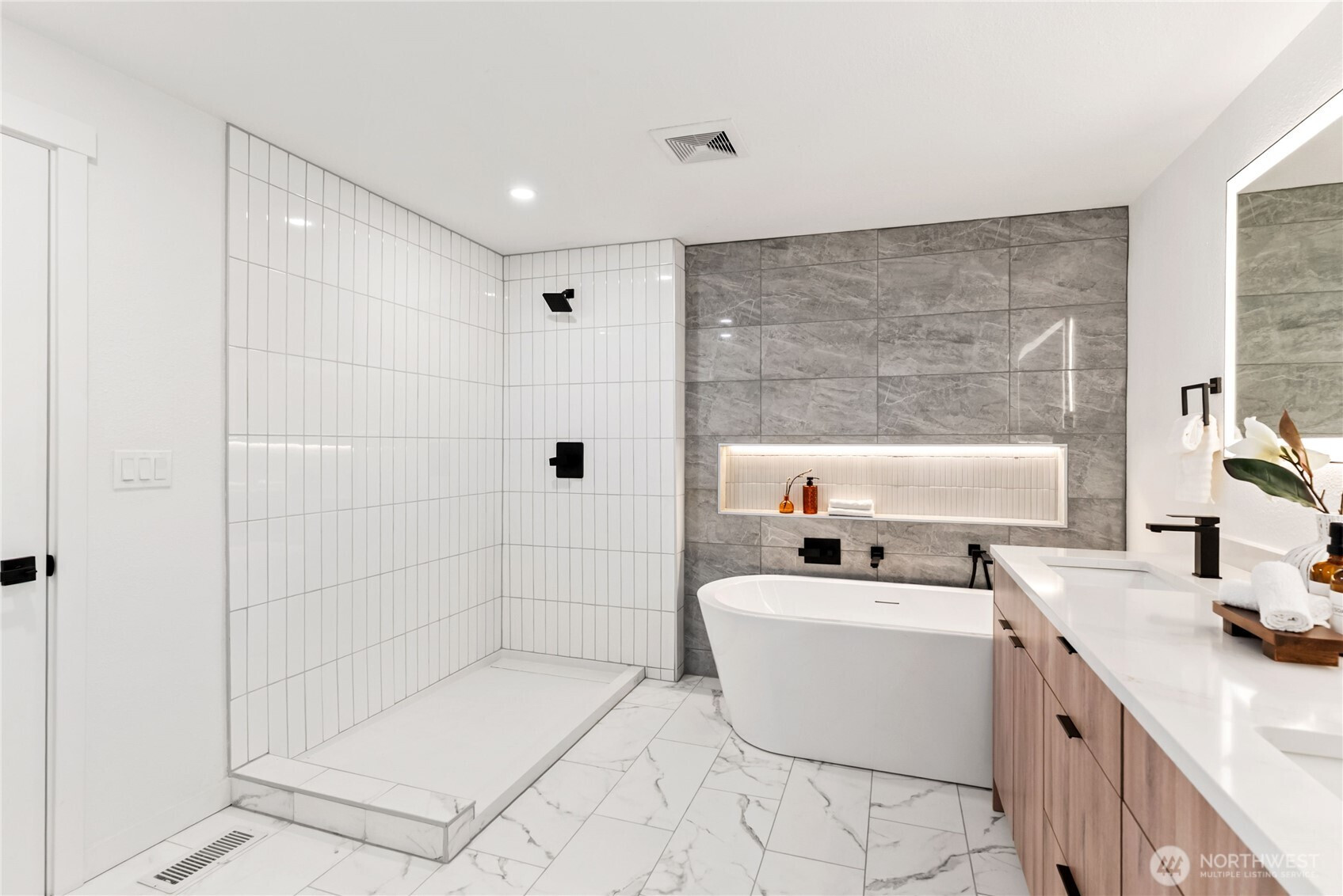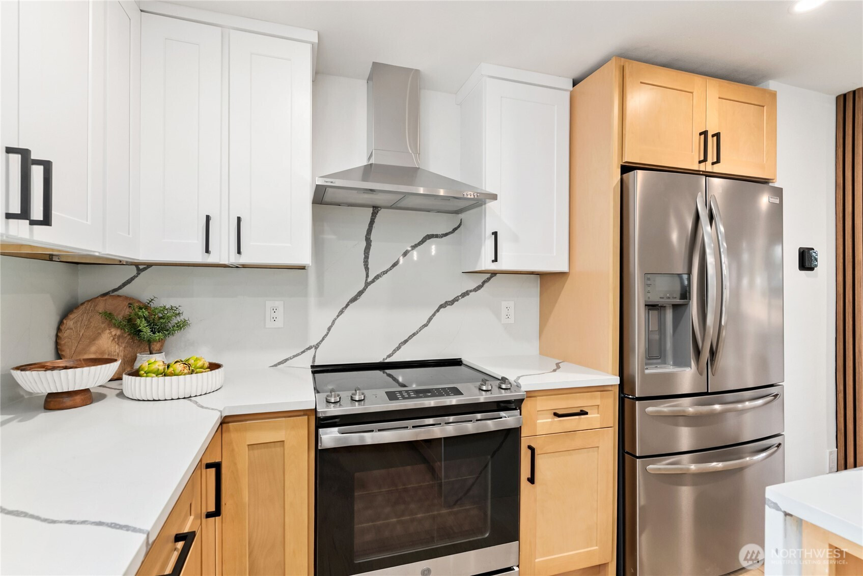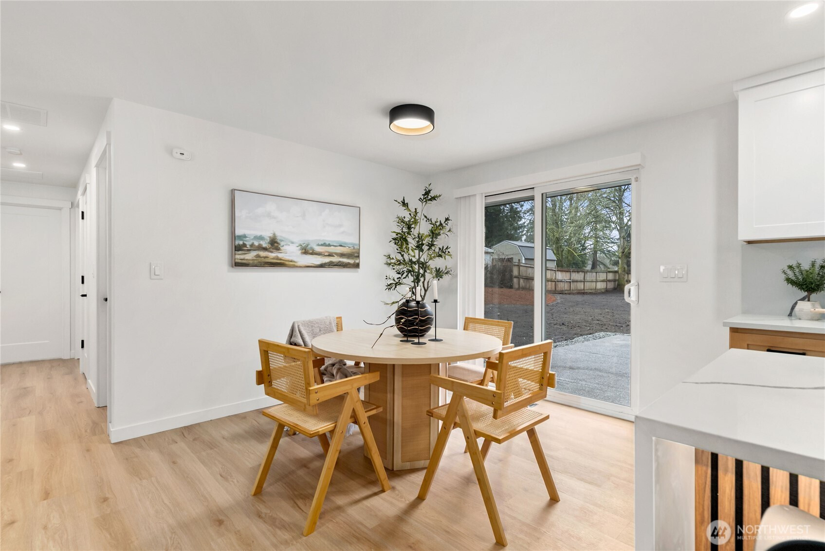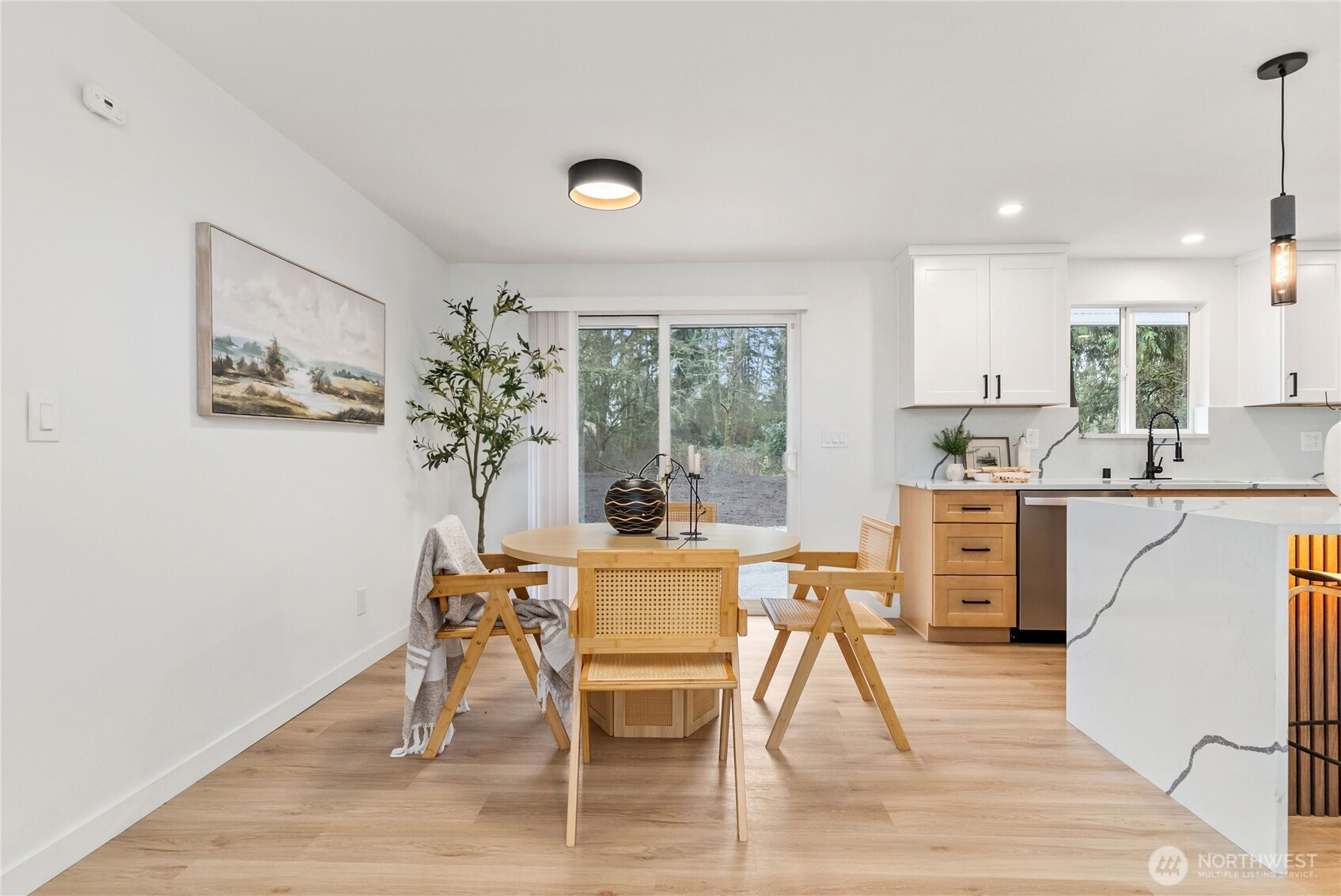 Thoughtfully remodeled Summit-area rambler offering refined design and true turn-key living. From the moment you enter, you are welcomed into an open-concept living space highlighted by a custom accent wall and sleek electric fireplace, creating a warm yet sophisticated atmosphere.The chef’s kitchen is a showstopper, featuring stainless steel appliances, elegant two-tone cabinetry, quartz countertops, and a full quartz backsplash for effortless maintenance. A dramatic island with dual waterfall edges and motion-activated under-island lighting anchors the space and invites gathering. The oversized laundry room provides convenience and generous storage. The private primary suite is a serene retreat with a walk-in closet and designer accent walls. The spa-inspired primary bath offers a luxurious soaking tub with niche lighting, double vanity, private bathroom, and a stunning custom walk-in shower. Three additional bedrooms are thoughtfully positioned on the opposite side of the home, offering privacy and flexibility for guests, office, or lifestyle needs. Outdoors, enjoy peace of mind with a brand-new roof, partially fenced yard, RV parking, and a spacious patio overlooking a large backyard—perfect for entertaining, relaxing, or future outdoor living dreams. This home blends style, comfort, and functionality in a sought-after Summit location. Must See!