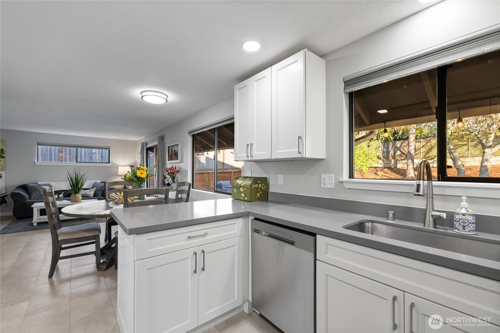 Gorgeous remodeled North Tacoma rambler ready for you! Perfect location for this 3 bedroom, 1.5 bath home with generously sized bedrooms, living and family rooms. White kitchen cabinets, quartz counters, continuous easy care flooring throughout. Remodeled bathrooms, newer roof, two car garage and RV parking. Light, bright great flow inside, and perfect deck and manicured near quarter acre lot make this home a joy to live in. Close to shopping at Westgate, waterfront fun and schools, but tucked down a quiet street.