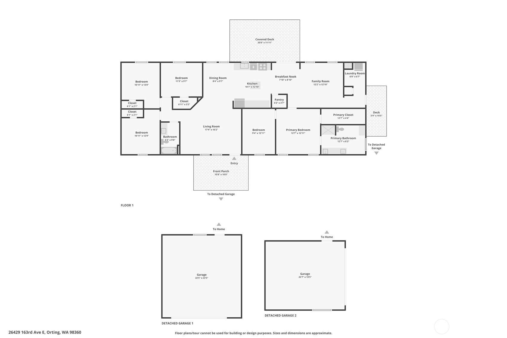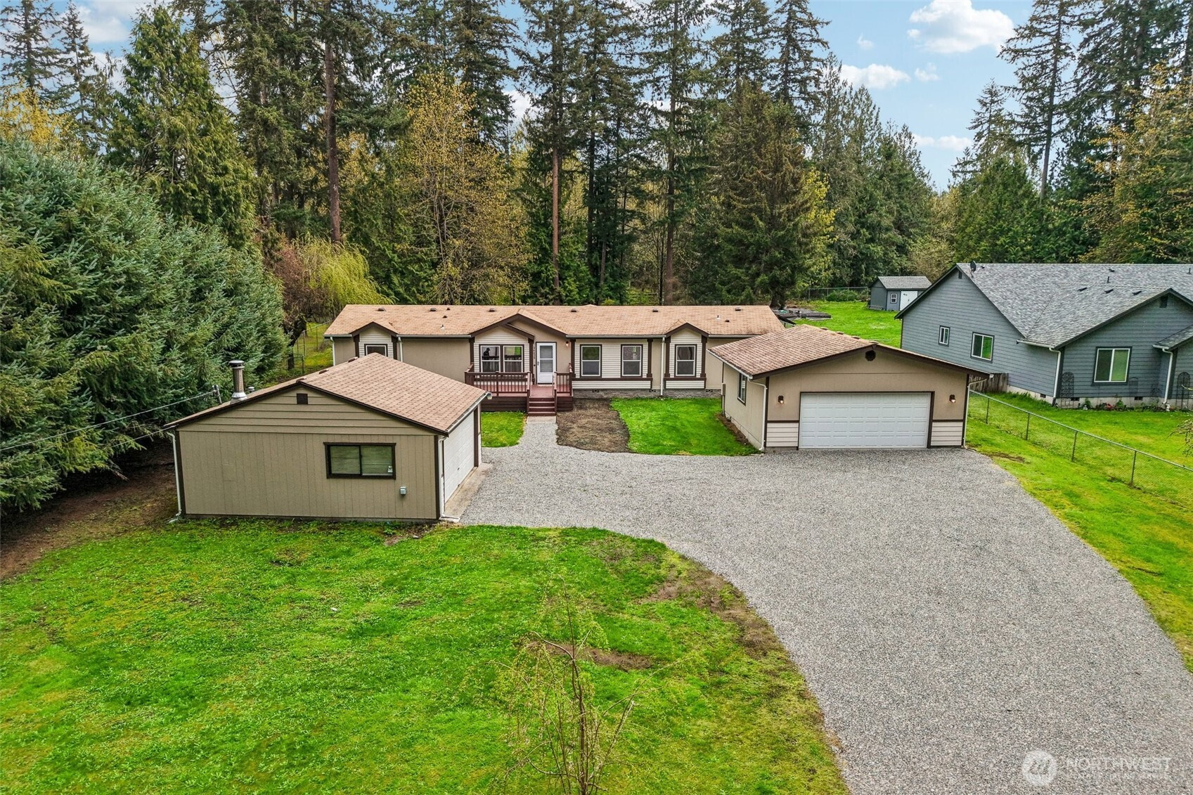 Discover the perfect combination of space, flexibility, and modern updates on this nearly 1-acre property in Orting. This move-in ready 4-bedroom, 2-bath home offers 1,917 square feet of refreshed living space, featuring durable LVP flooring throughout, updated kitchen and bathrooms, and fresh interior and exterior paint, new roof in 2020. A standout feature of this property is the rare **two detached 2-car garages**, providing incredible versatility for a workshop, hobby space, storage, or parking for multiple vehicles and recreational equipment.The expansive 35,501 sq ft lot offers endless possibilities—room to garden, entertain, or simply enjoy the open space. Whether you need extra storage, workspace, or room to spread out, this property delivers a unique opportunity that’s hard to find. Conveniently located near local amenities and schools, this home offers privacy, comfort and functionality in one complete package.