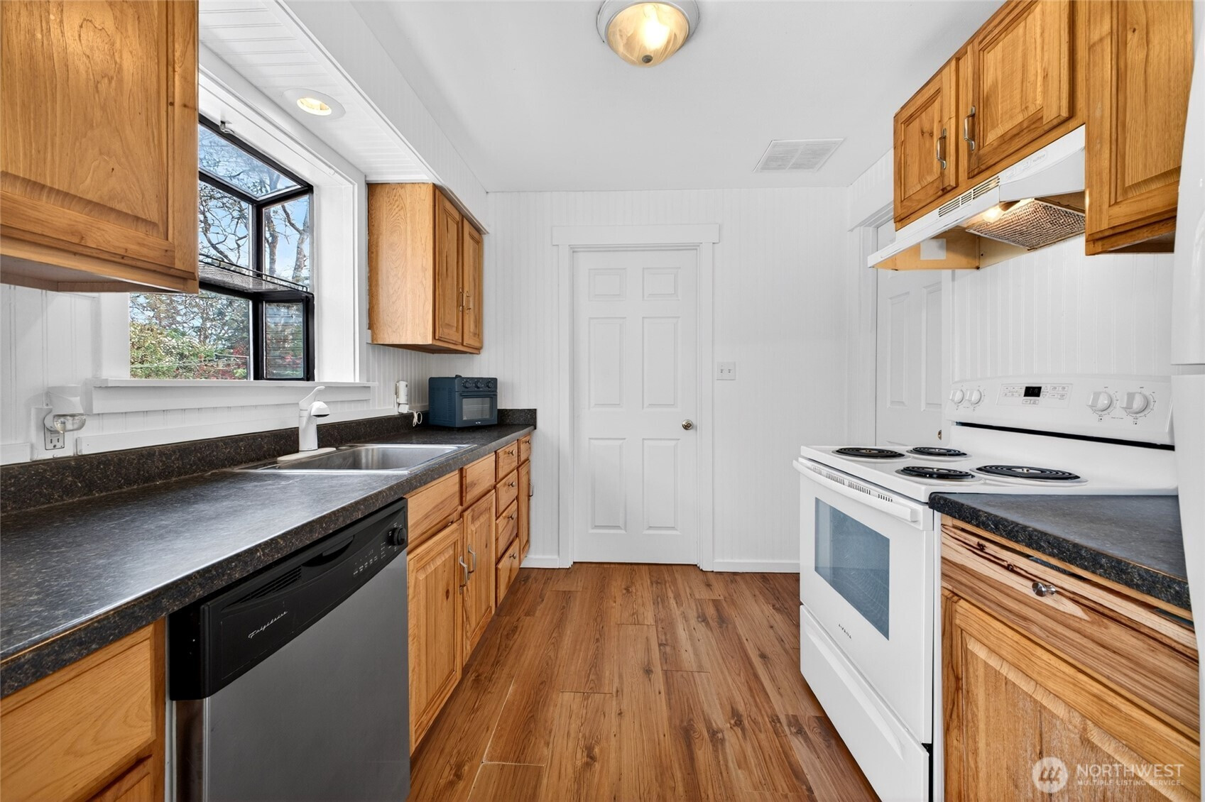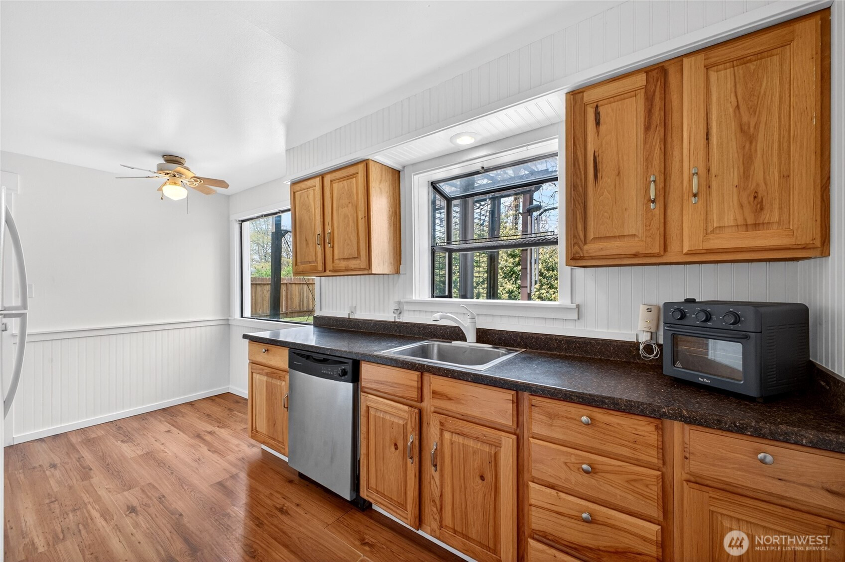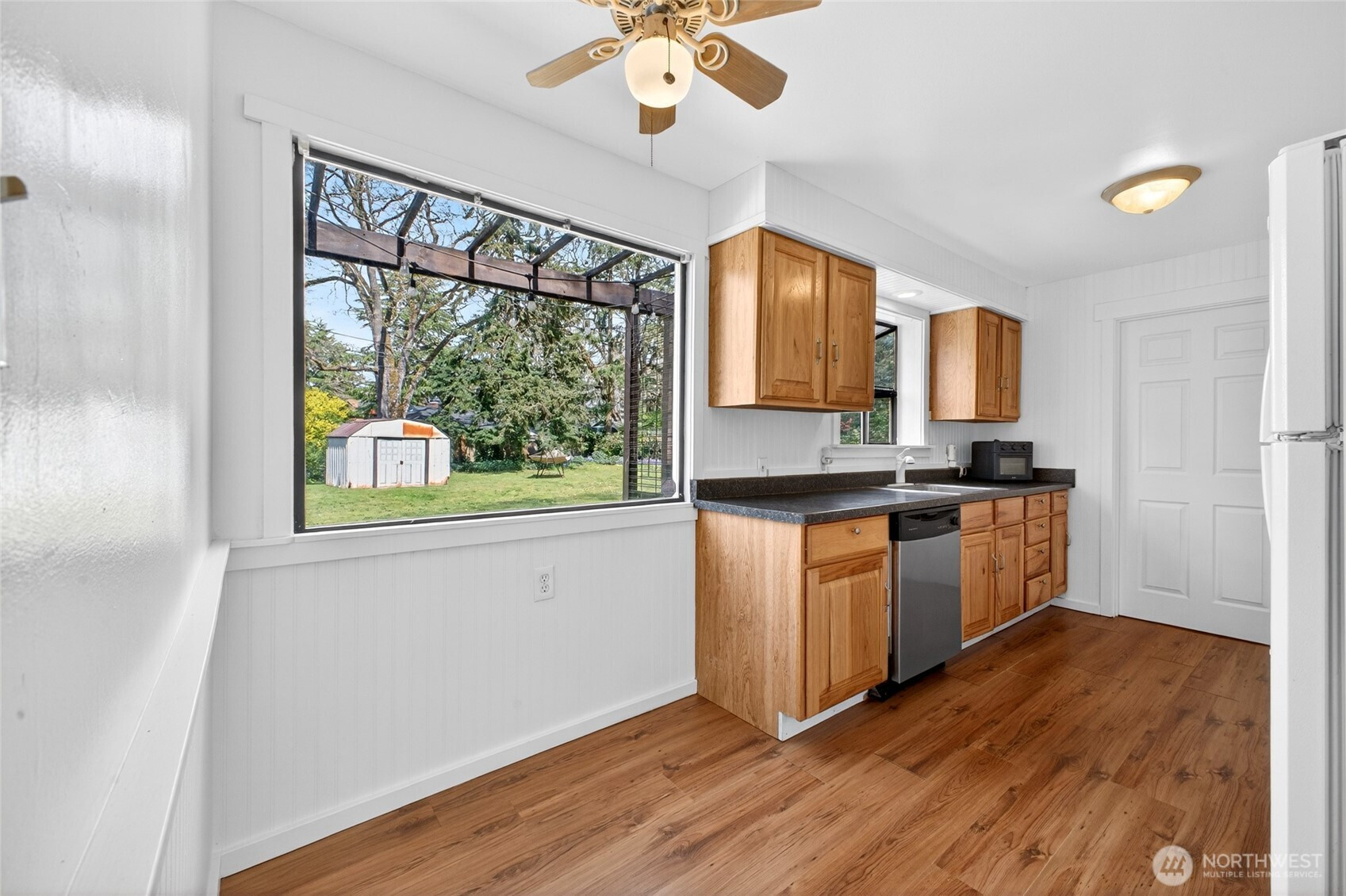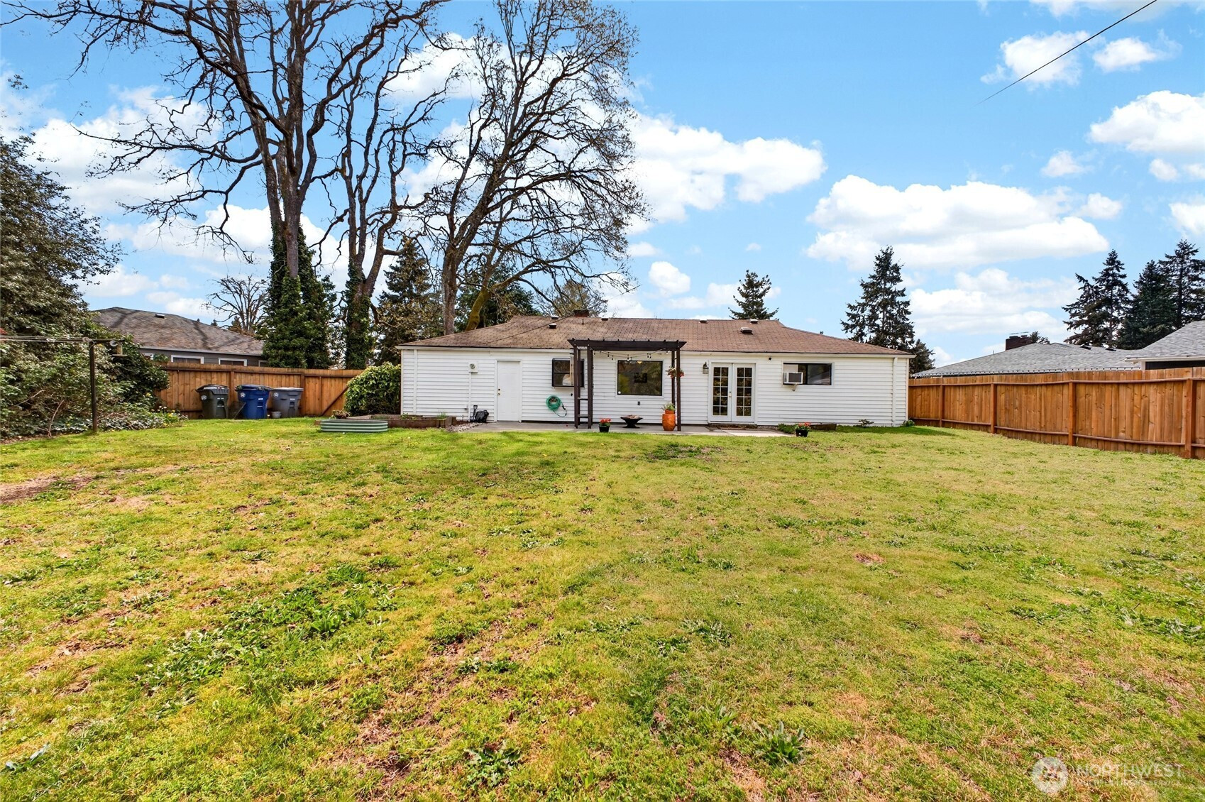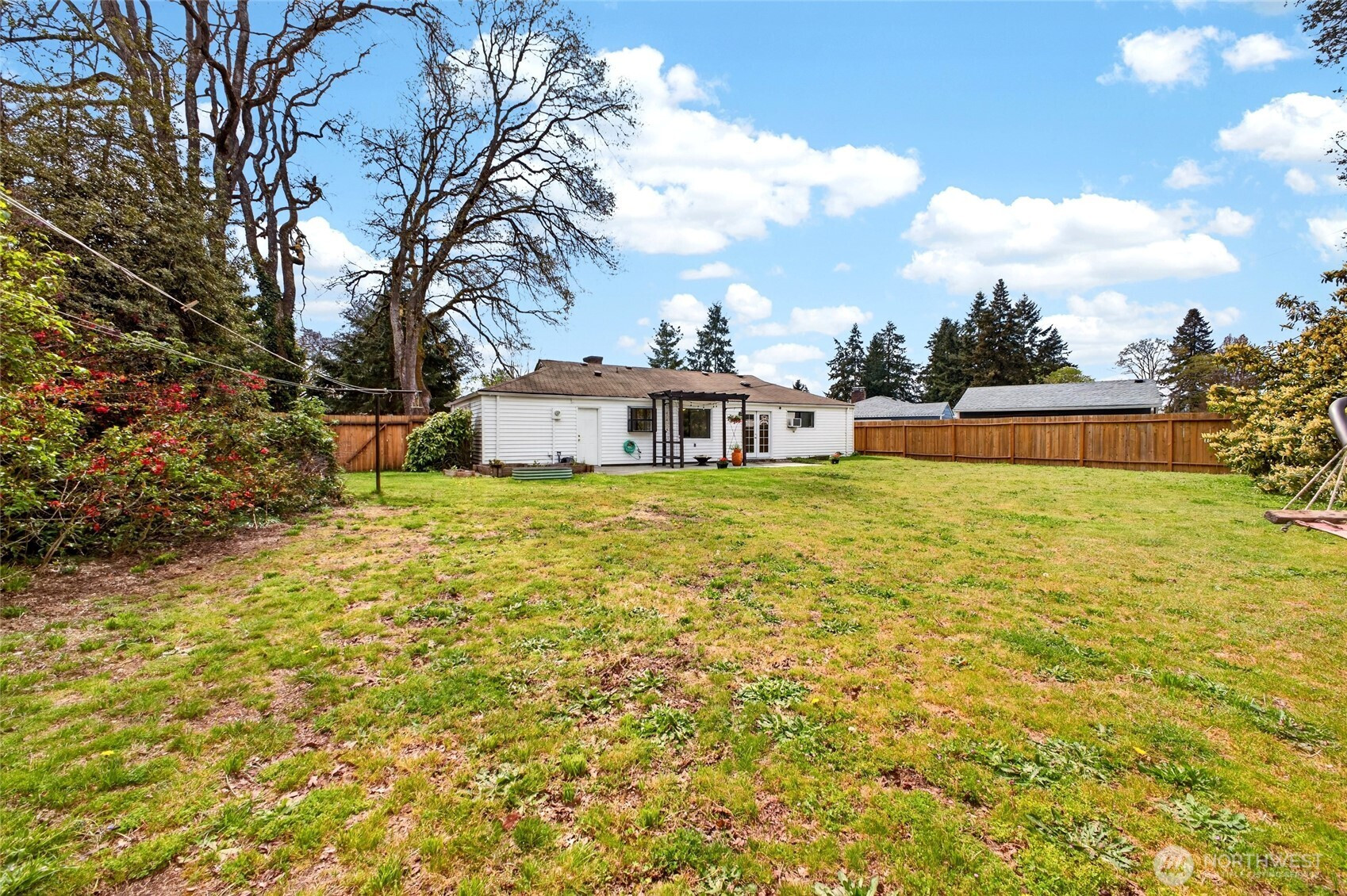 Discover your private oasis in the heart of Lakewood! This beautifully updated 2-bed rambler sits on a massive 11,000sf flat lot—a true gardener’s dream with mature landscaping,detached shed, and huge patio perfect for summer bashes! Inside, French doors and large windows flood the home with light. Enjoy chic wainscotting, durable laminate floors, and a modern kitchen with sleek newer counters (all appliances stay!). Stay cozy with a wood fireplace and efficient radiant floor heat. Featuring low-maintenance vinyl siding, a 1-car garage, and a prime location near Lakewood Town Center shopping and transit. This gem is priced to sell fast—don’t wait!