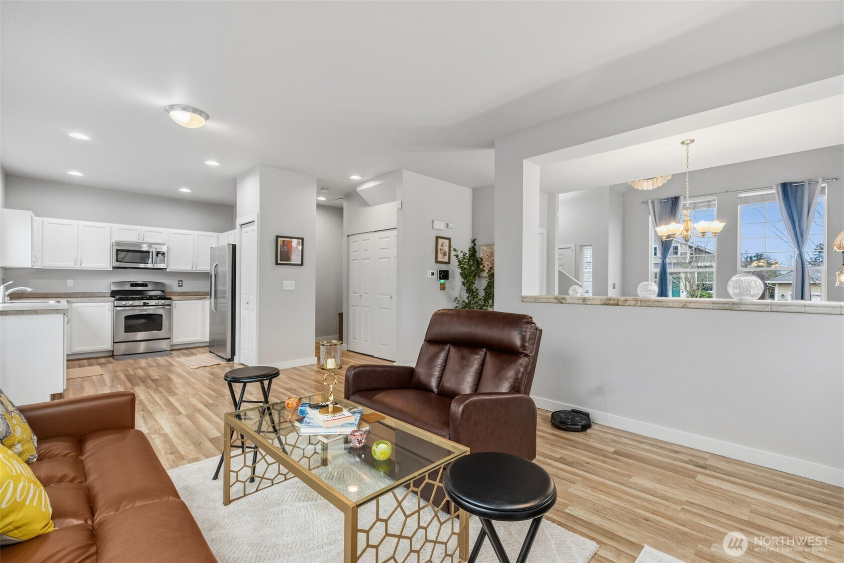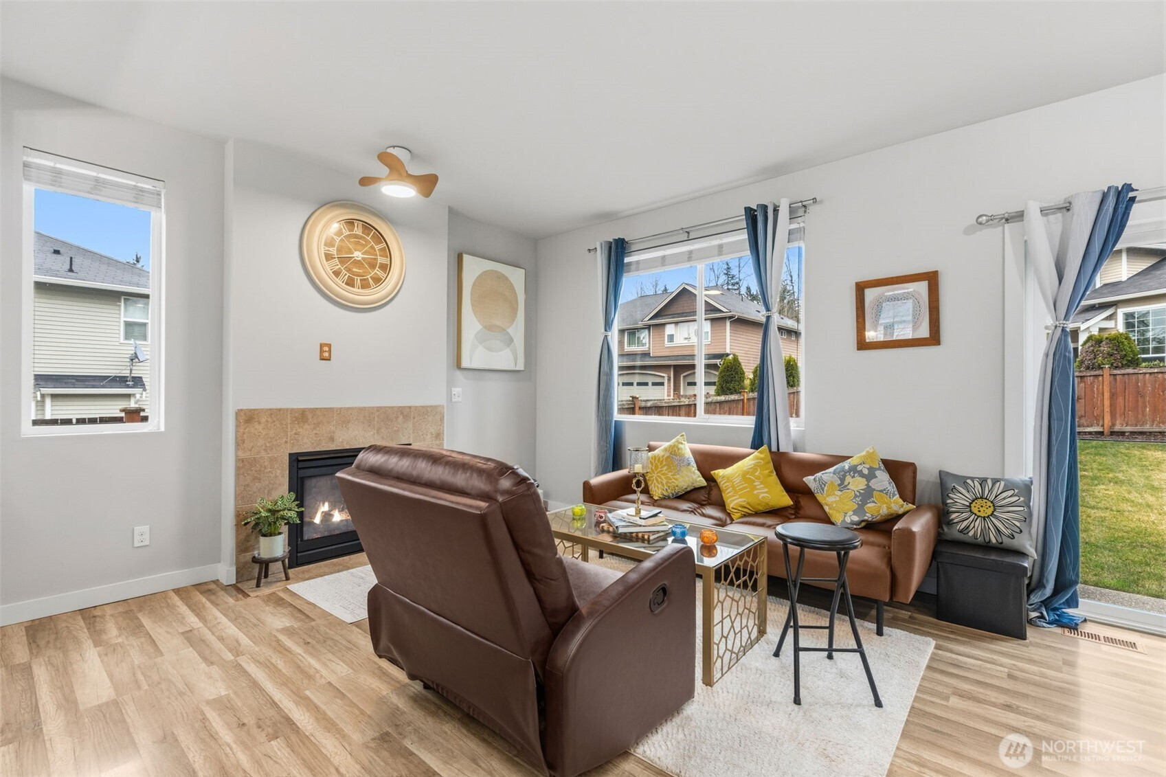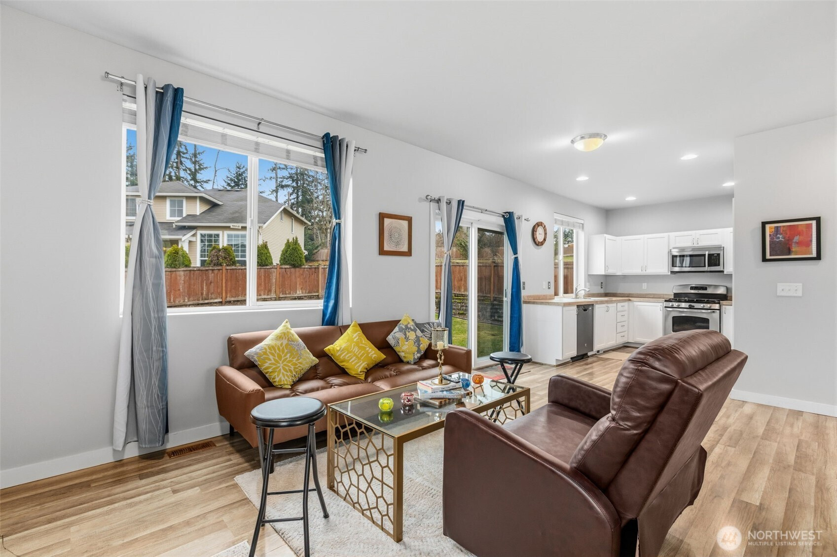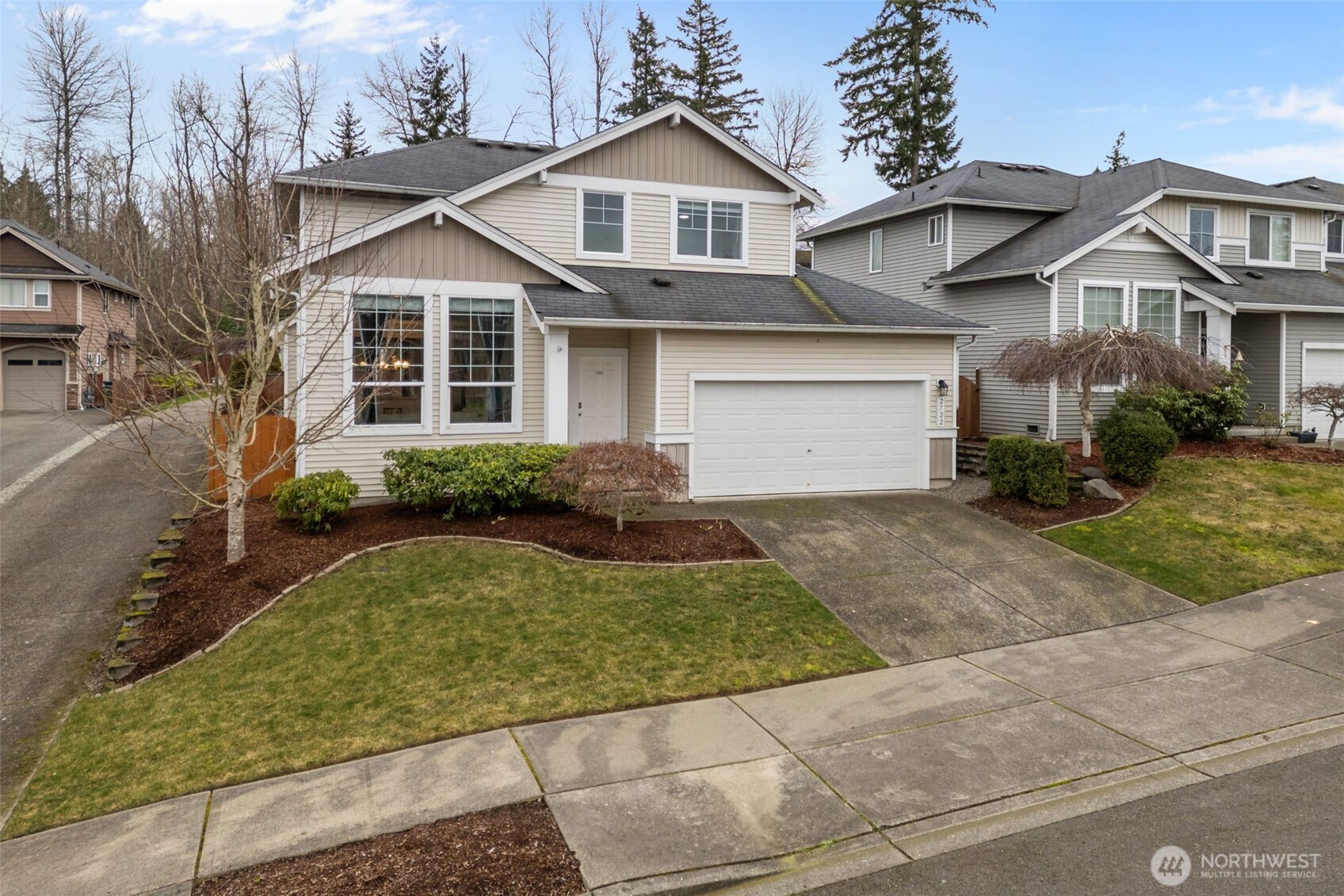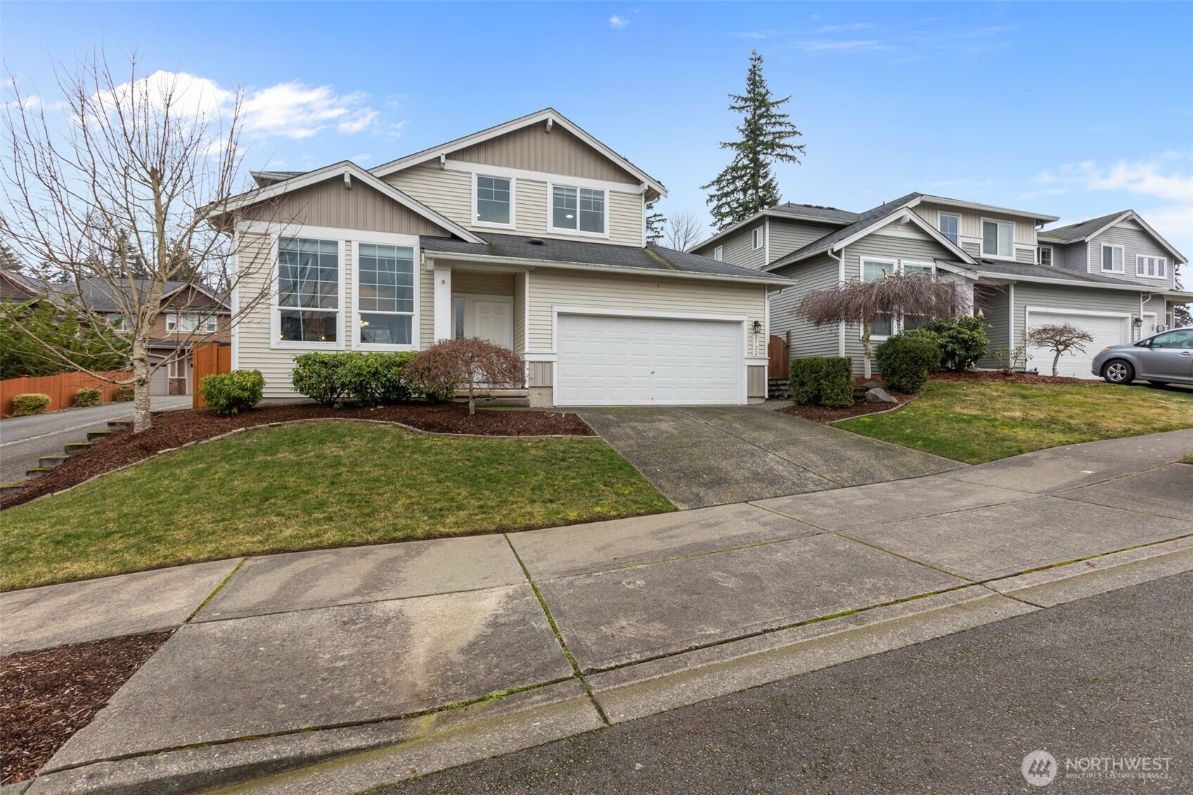 Located in North Tapps Estates of Auburn, this well-maintained home offers a comfortable layout designed for everyday living and entertaining. The main level features an open living space with a kitchen equipped with stainless steel appliances, ample cabinetry, and easy flow into the dining and living areas. A sliding glass door leads to a private, fully fenced backyard that is professionally landscaped and ideal for relaxing, entertaining, or outdoor enjoyment. Upstairs includes two secondary bedrooms, a primary suite with a private bath and walk-in closet, and a versatile loft suitable for a home office, study, or bonus space. Recent upgrades and ongoing maintenance include a tankless water heater, roof updates, plumbing improvements, EV charger installation, ceiling fans, appliance repairs, fencing improvements, and a home security system. Conveniently located near Lakeland Hills Town Center, Lake Tapps, parks, and major highways, this home offers easy access to shopping, recreation, and commuting routes. A great opportunity to move into a home that has been thoughtfully cared for.