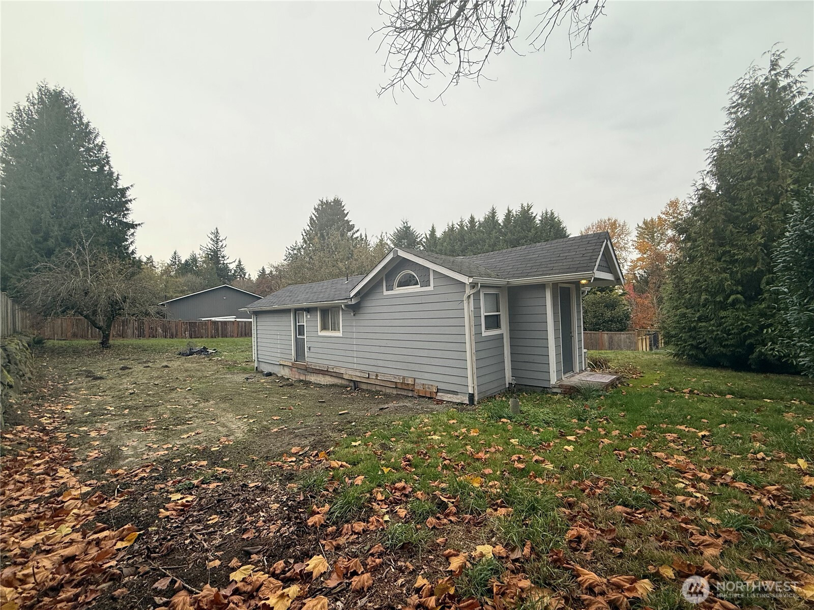 Stunning opportunity on just over 1/3 acre in a highly desirable Puyallup location! Whether you want a buildable lot with house plans already drawn up or a move-in-ready home, this property offers versatility. On a 2-bedroom septic, it features a bright, spacious living room and an updated kitchen with center island and access to a large private deck. The oversized bedroom includes a massive walk-in closet and full bath. Enjoy fruit trees, garden space, an unfinished basement, outbuilding, and plenty of parking. Minutes to freeways, shopping, restaurants, and more—endless potential!
