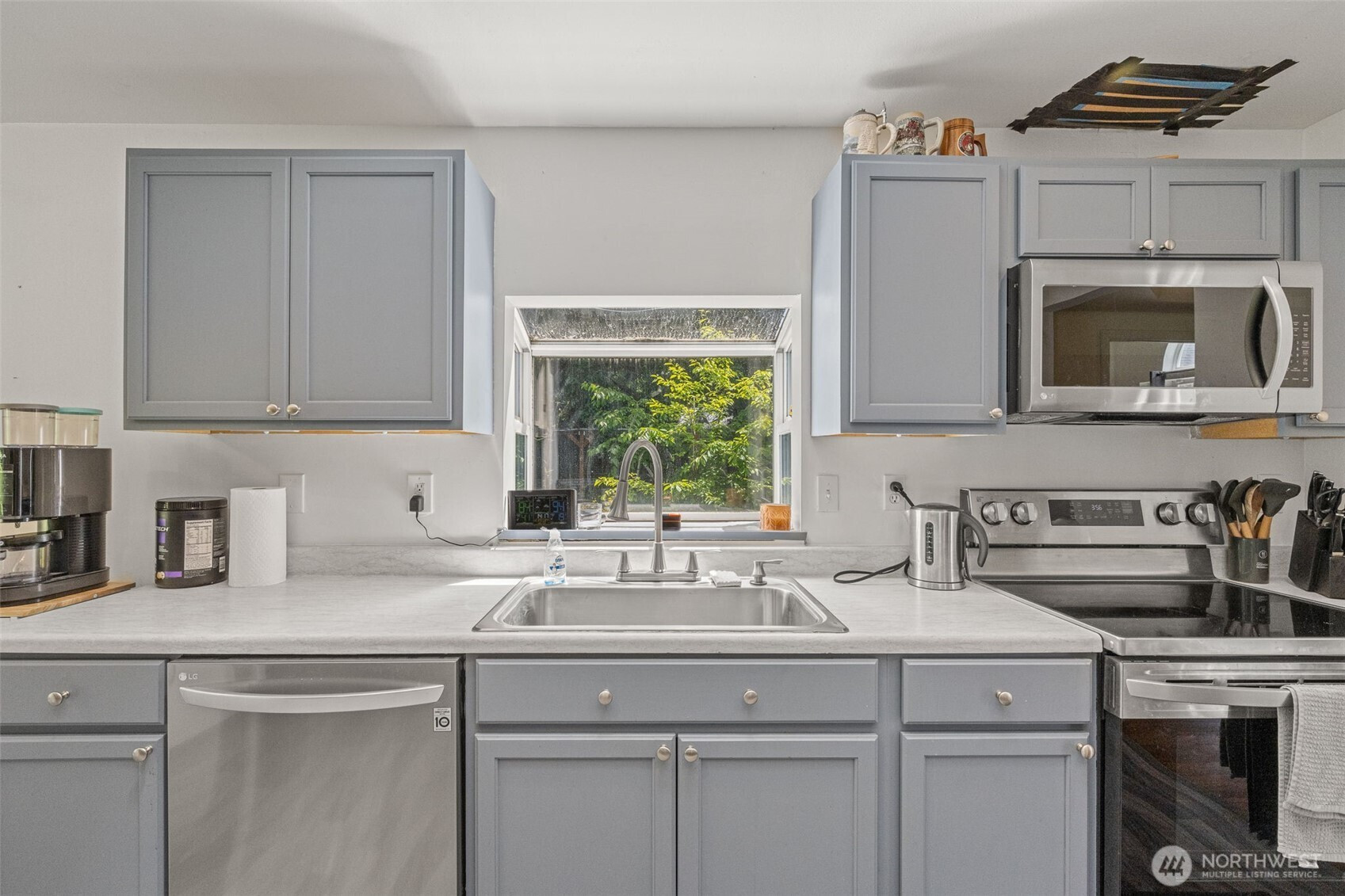 Don’t miss this great deal with a rare chance to earn instant equity—your serene retreat in Graham awaits! This beautifully maintained home sits on over an acre of level land, offering space, privacy, and endless possibilities. Enjoy vaulted ceilings, abundant natural light, and a spacious, inviting layout. The kitchen provides ample cabinetry and counter space, perfect for entertaining. The primary suite features an en-suite bath and walk-in closet. Outside offers a fully fenced yard, oversized deck, fire pit, garden space, multiple outbuildings, and RV parking. No HOA and just minutes to schools, shopping, and JBLM—country living with convenience!