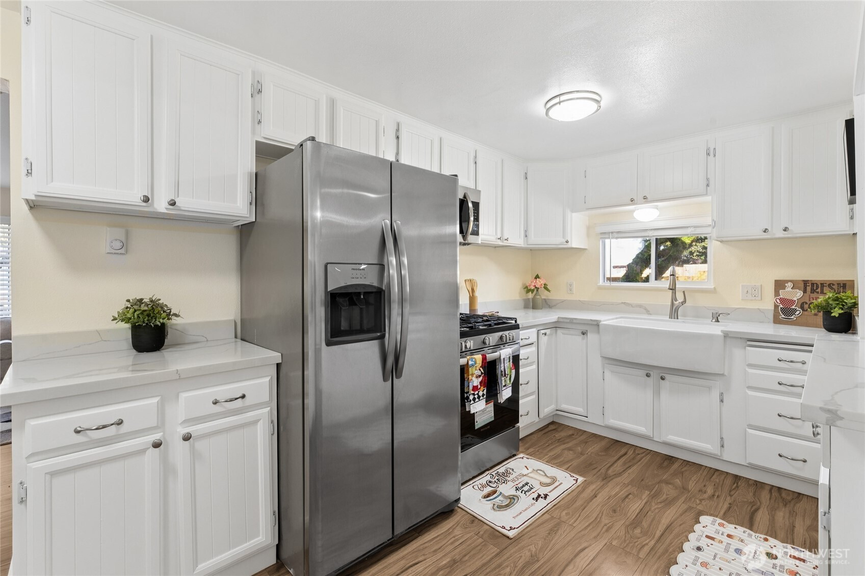 Welcome to this beautifully updated home in desirable Northeast Tacoma! Offering 2,185 sq ft, this property features a functional layout with spacious living and dining areas—perfect for everyday living and entertaining. Recent upgrades include a newer roof (2 years), new plumbing, updated electrical panel, quartz countertops, waterproof luxury laminate flooring, new carpet, and a mini-split system. Enjoy a covered patio, fully fenced yard, and solar panels for added efficiency. The home includes 3 bedrooms plus an additional finished room, providing flexible space for a home office, guest room, or hobby area. The oversized 4-car attached garage and extended driveway offer ample parking, storage, or workspace. The lot is subdivided into two parcels, presenting excellent potential for an ADU or additional single-family home (buyer to verify). Conveniently located near highways, shopping, and dining Floor plans available. Don’t miss this great opportunity!