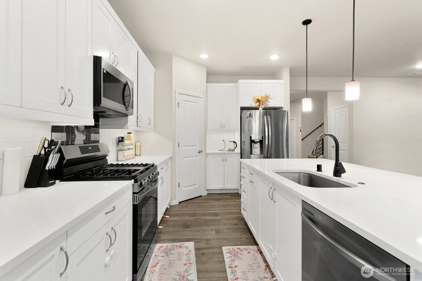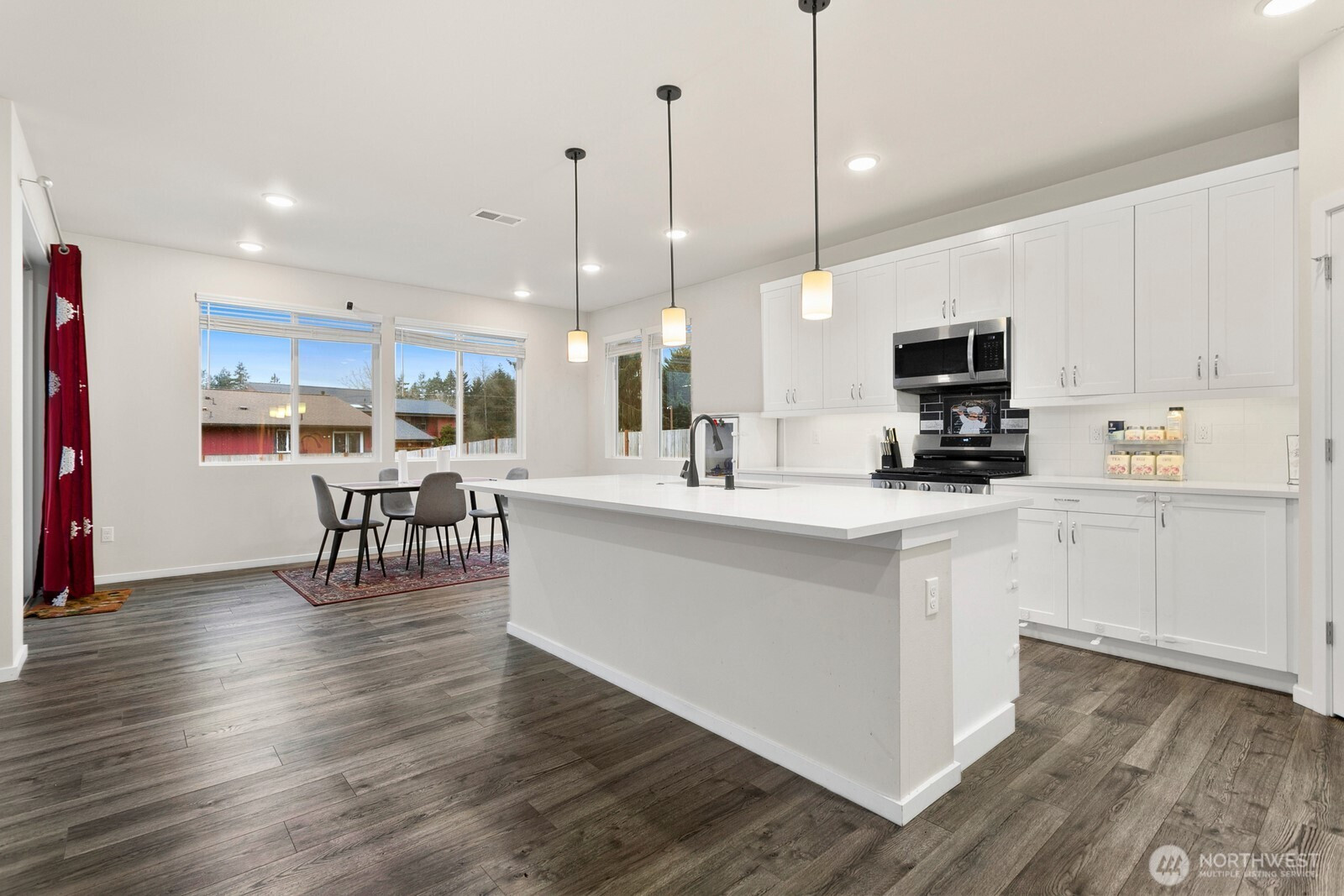 Tucked into Tacoma’s Prairie Oaks community in the Frederickson area, this 2024-built home delivers the space you want and the layout that actually works. With 5 bedrooms, there’s room for everyone—plus a main-floor bedroom and ¾ bath that’s perfect for guests, a true home office, or multigenerational living. The kitchen is the center of the home, designed for real use: quartz counters, a large island, stainless appliances, gas range, full-height subway tile backsplash, and soft-close cabinetry, flowing right into the dining area and oversized great room for easy entertaining. Upstairs you’ll find four additional bedrooms, including a spacious primary suite with a 5-piece bath and walk-in closet, plus a bonus space that flexes as a media room, playroom, or second lounge. Outside, enjoy a private, fully fenced backyard ready for summer BBQs, pets, and low-maintenance relaxing—plus a 3-car garage for storage, hobbies, and life logistics. And the community itself is a standout—limited homes, peaceful setting, and green-space vibes with mature oak trees nearby.