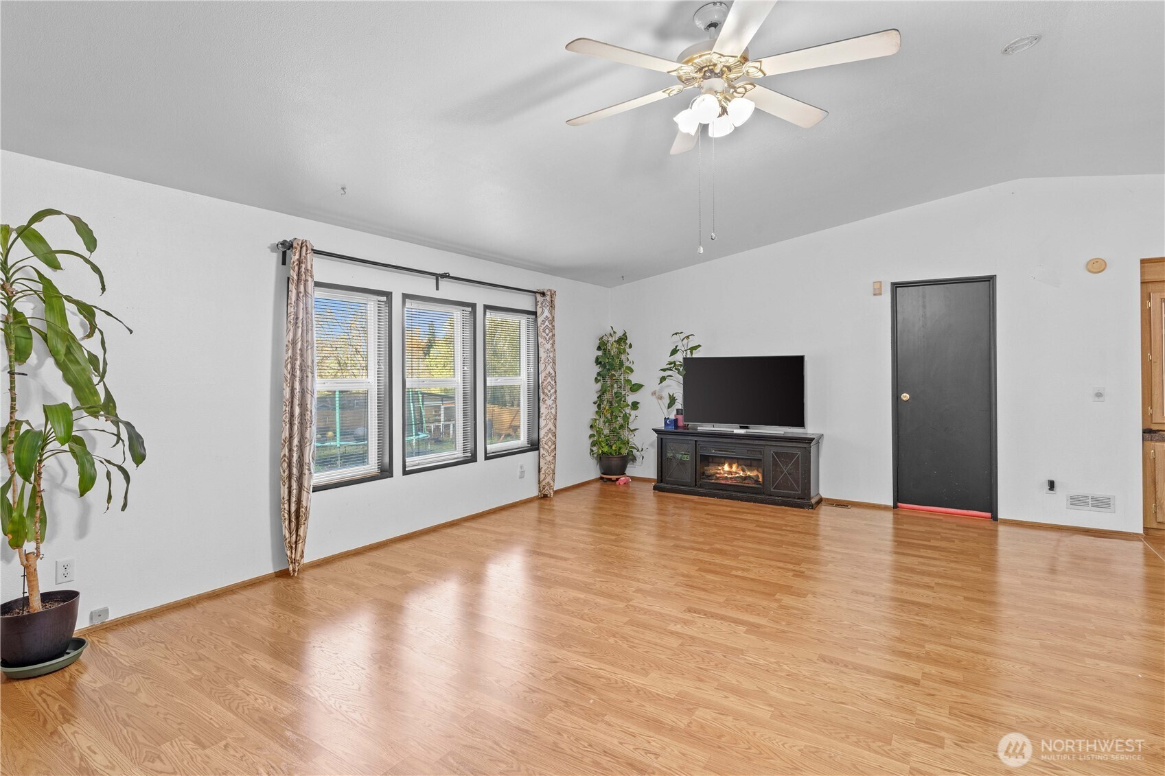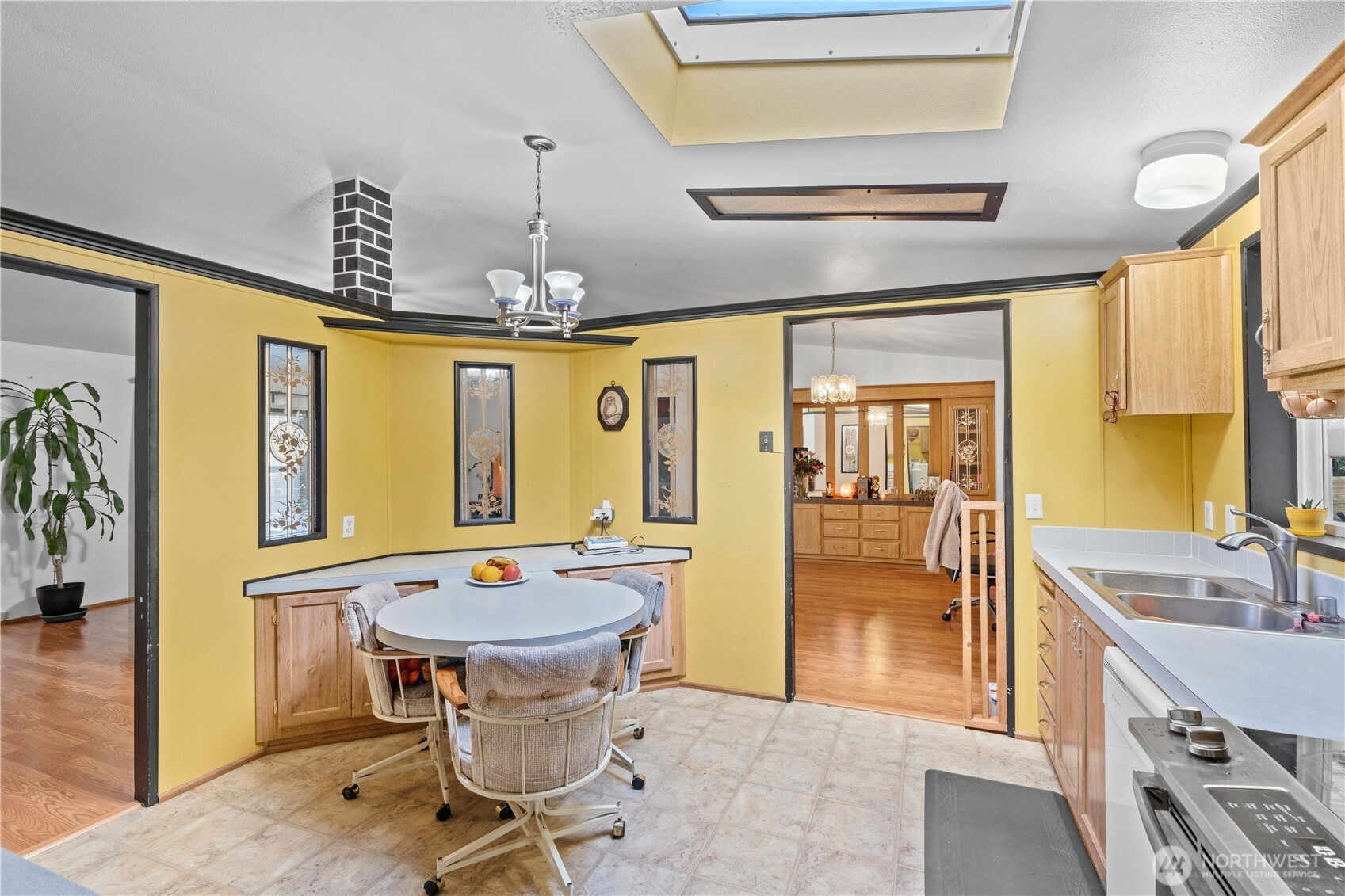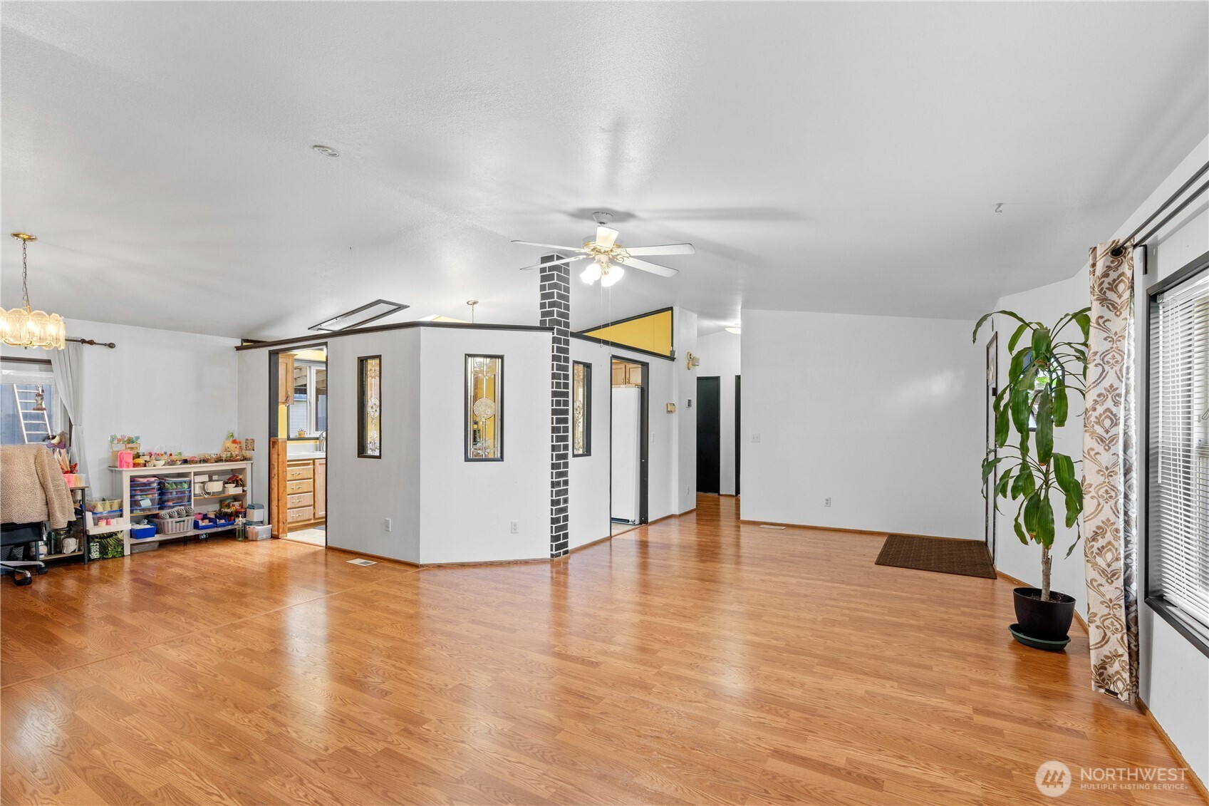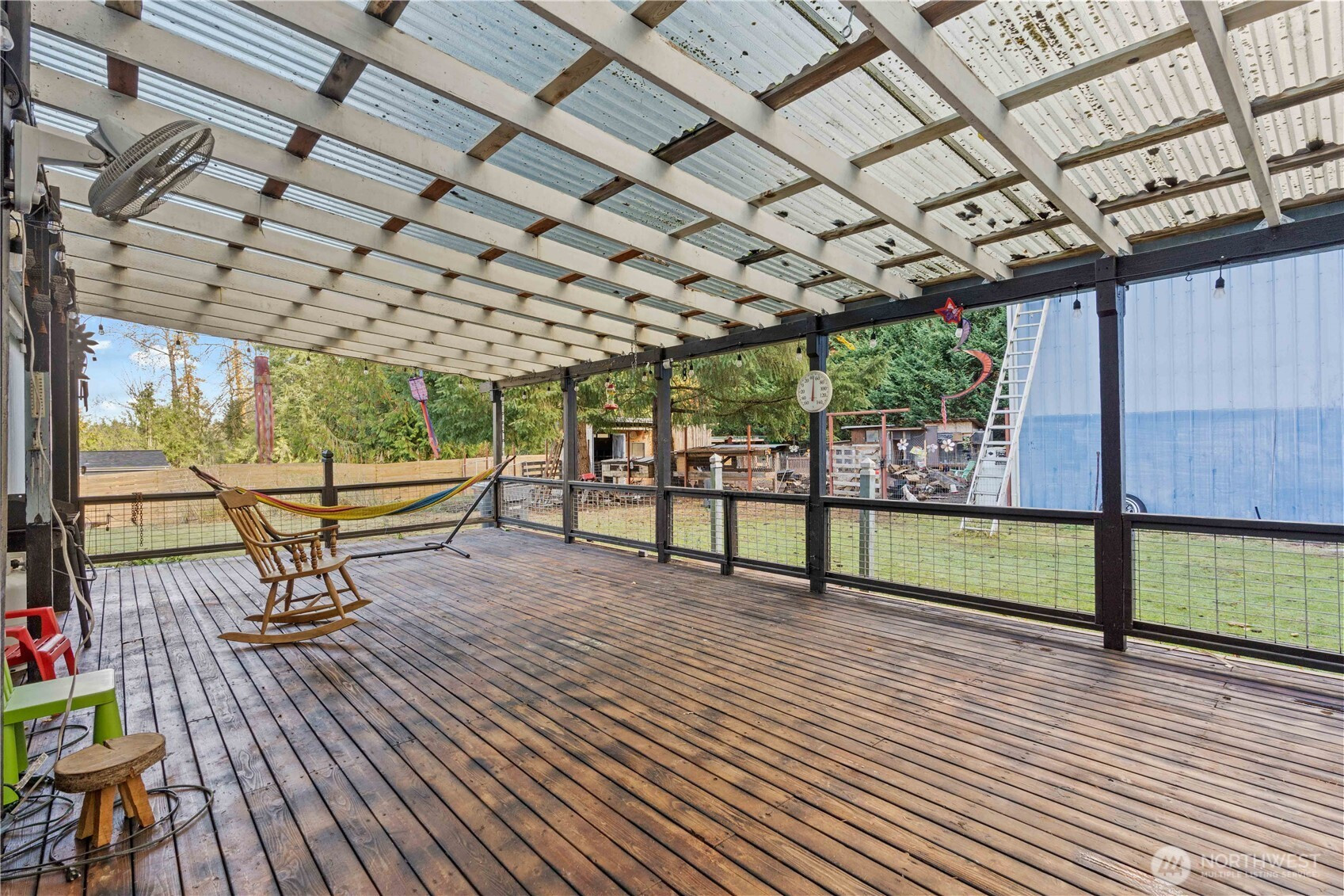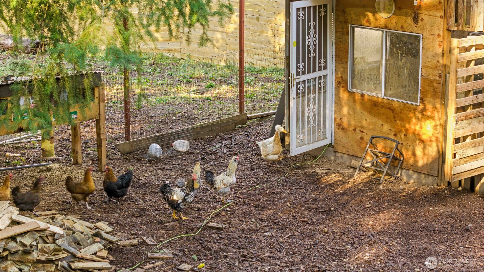 Discover this charming 3-bedroom, 2-bath, 1,666 sq ft home perfectly situated on 1.26 serene acres. Enjoy laminate floors throughout, skylights that fill the home with natural light, and a thoughtful floor plan with the primary suite separate from guest bedrooms. The spacious primary features a private large bath and walk-in closet. Relax or entertain on the covered back deck overlooking the peaceful property with space for gardening or tending chickens in existing coops. A massive 2,400 sq ft shop offers parking for up to 6-9 cars or RV storage, plus a loft ideal for an office, upper storage or studio, with power, propane tank and commercial heating. Tranquil living close to amenities and shopping centers!