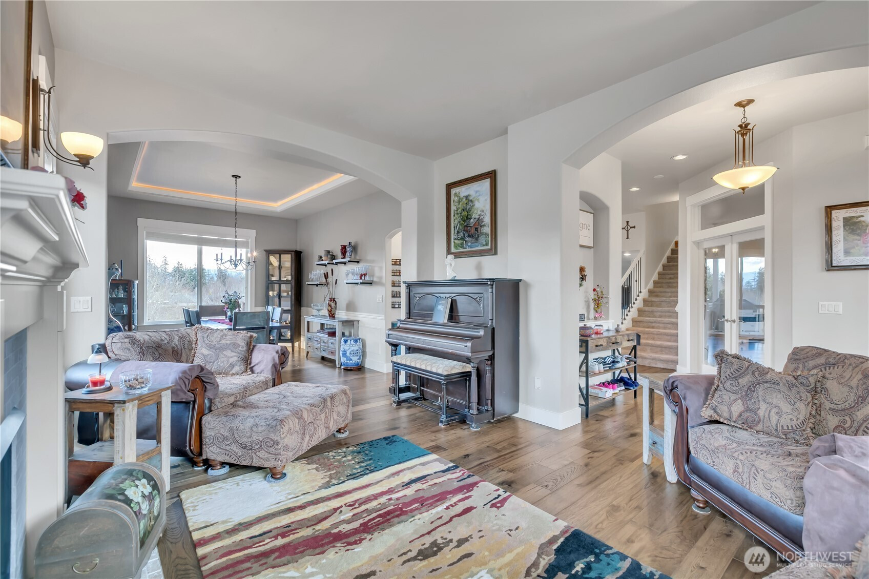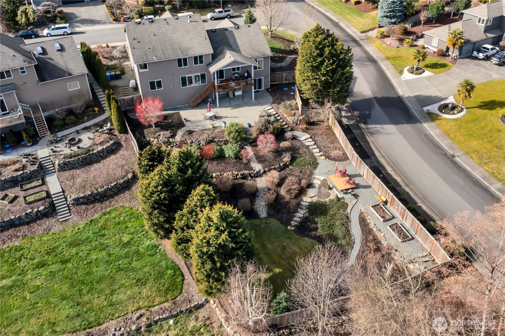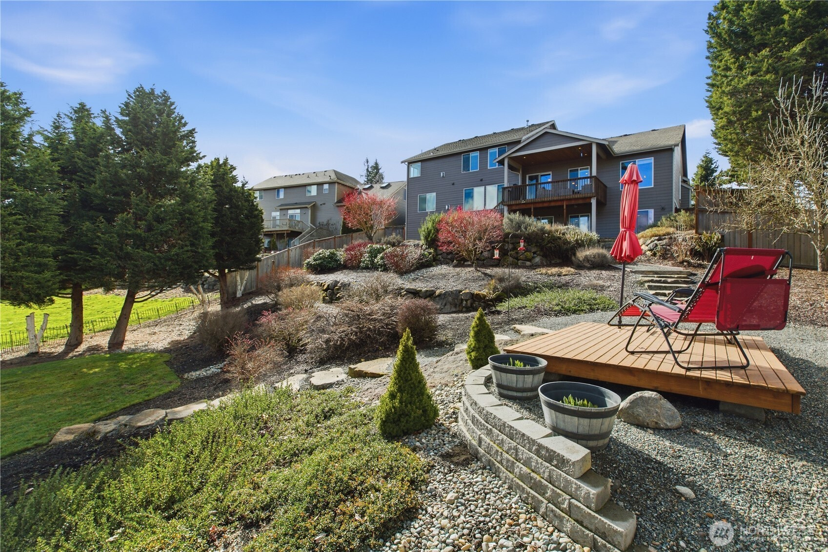 Welcome to this "Gorgeous" sanctuary, located in the sought after Quiet Water Neighborhood! This spacious 3-story home, is light, bright, and loaded with positive energy. It boasts 6 bedrooms, 4 baths, and several additional areas for all to gather comfortably. Check out the Chef's kitchen, luxurious Primary Bedroom, 3 gas fireplaces, large storage room, and so much more. Park like backyard complete w/fire pit, patio, covered deck, and mature landscaping, create an oasis on this tranquil street. A true "Gem"!