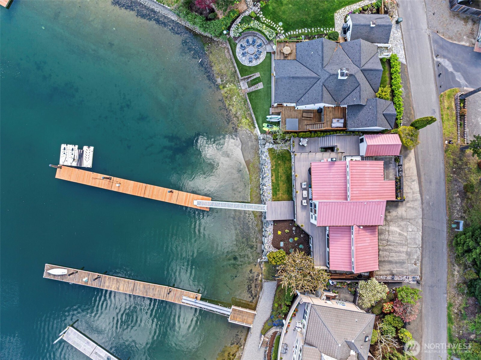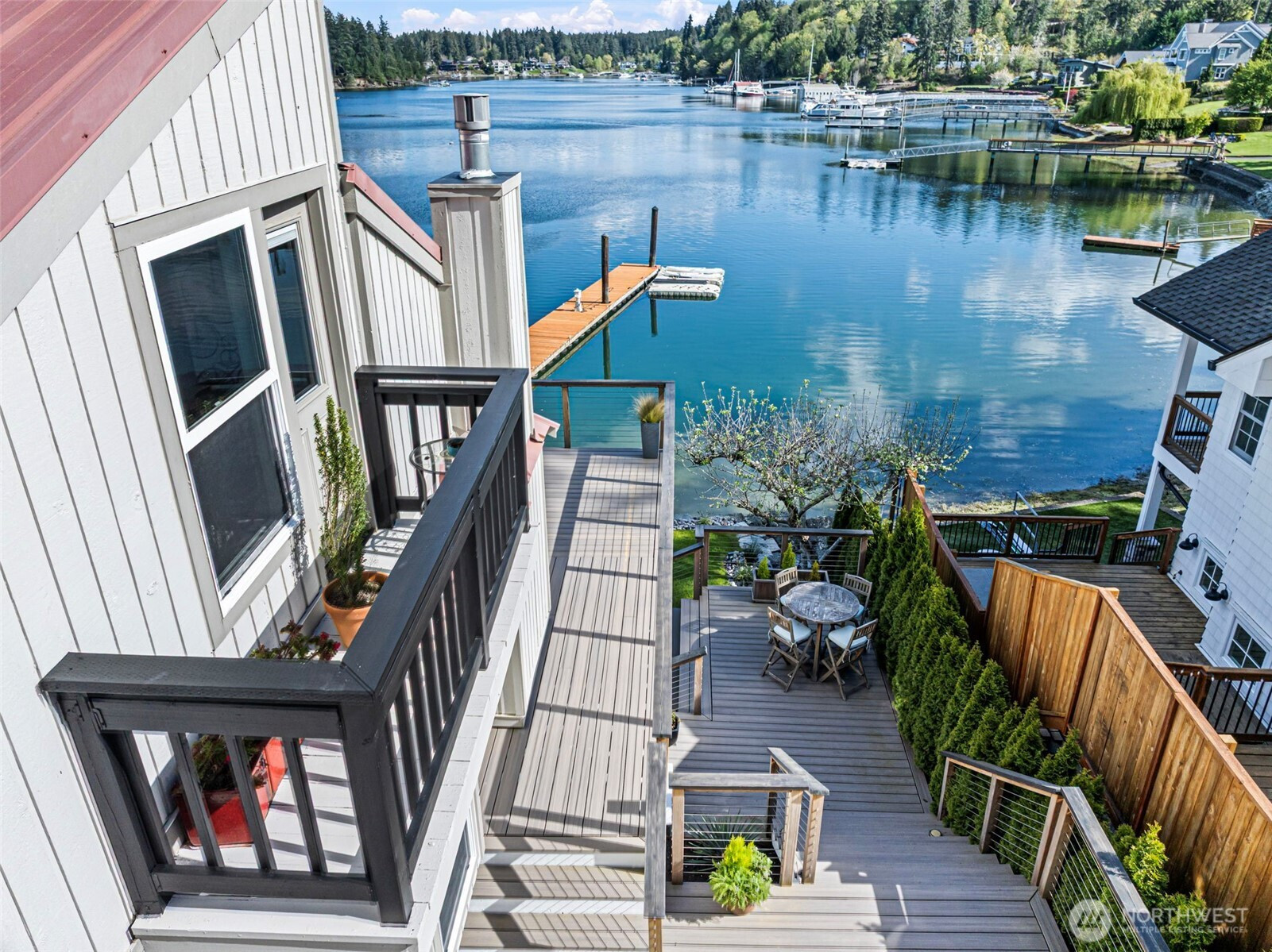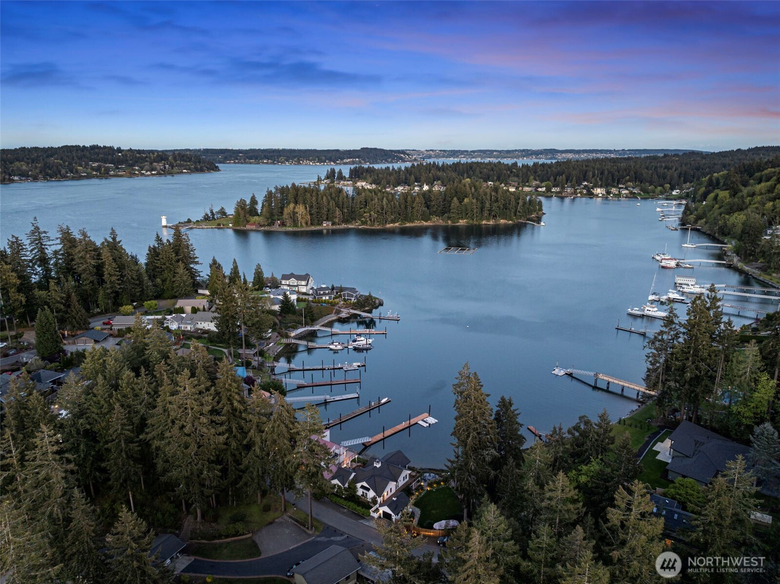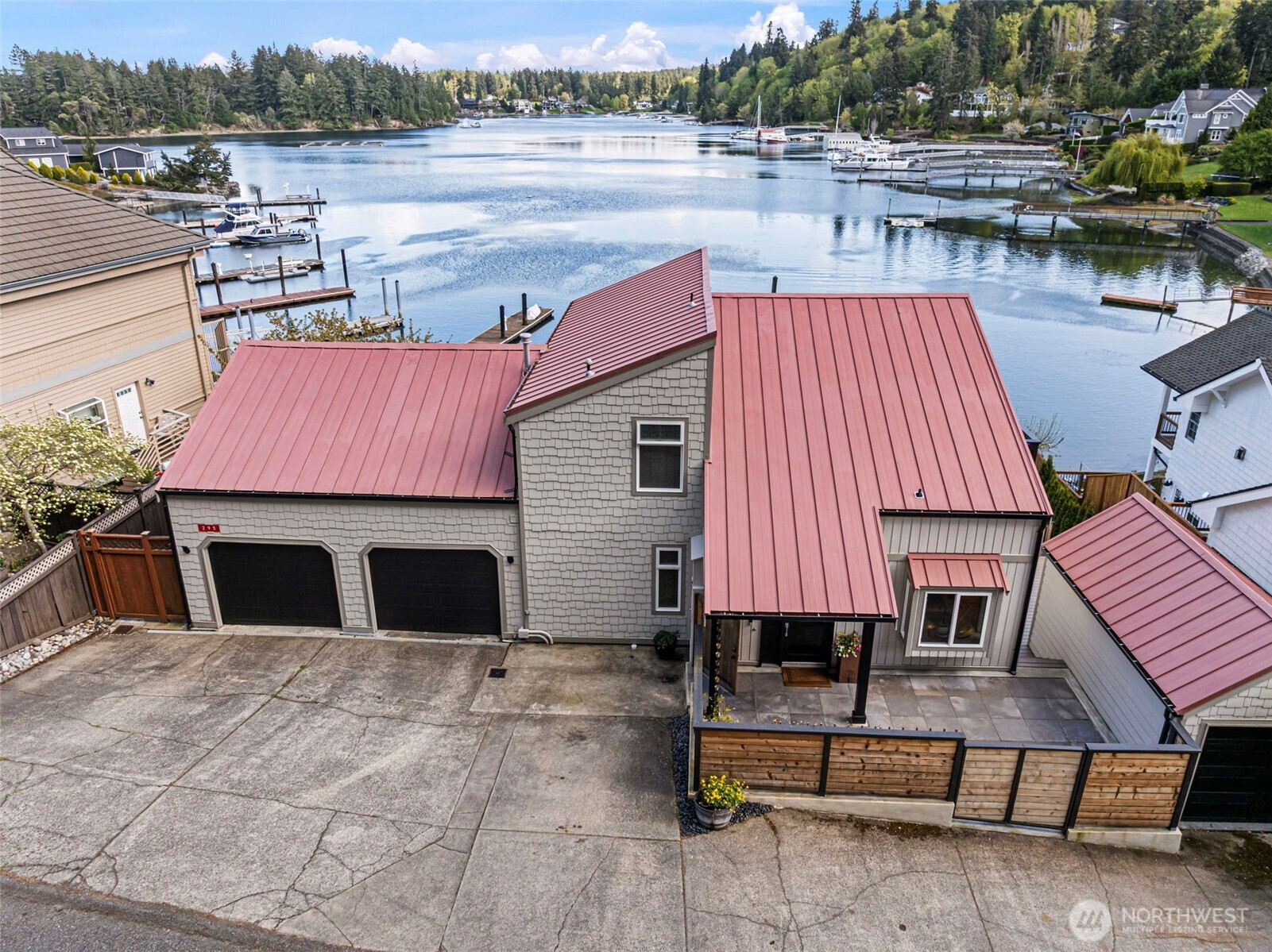 295 Shorewood Court is where Fox Island waterfront living feels effortless. Set along Echo Bay, tucked quietly off the main road, this multi-level home captures unobstructed water and Mount Rainier views from every room, and every level. The presence of the water is felt throughout, and every level opens to the outdoors. Wake up to the glassy waters of Echo Bay and start your day from the water. Swim, kayak, or boat from your own backyard. Great room flows seamlessly through double doors extending your living to the outdoors onto the new Trex multi-level decks and cable railing. A bedroom and bath on every level. Primary Suite is private and occupies its own level with an open loft, balcony, and abundant storage. Renovated lower level features a full kitchen, secondary living, and flex space/3rd bedroom — ideal for extended guests. Concrete patio just a few steps to the private dock. New 73' engineered rock bulkhead - professionally installed & permitted. Private dock with water. New 42' commercial-grade aluminum gangway. New 3-tank GeoFlow septic system with drainfield. Metal roof. Central A/C. Wired for generator. Hardwood floors on main and plank flooring on lower level. Tinted windows add privacy. Attached 2-car garage, detached 1-car garage/shop/gym. Fully inspected. Fox Island has a rhythm of its own with annual community events, summer concerts, or walks to Bella Bella Beach. 295 Shorewood Court — where the life you imagined becomes the one you live.