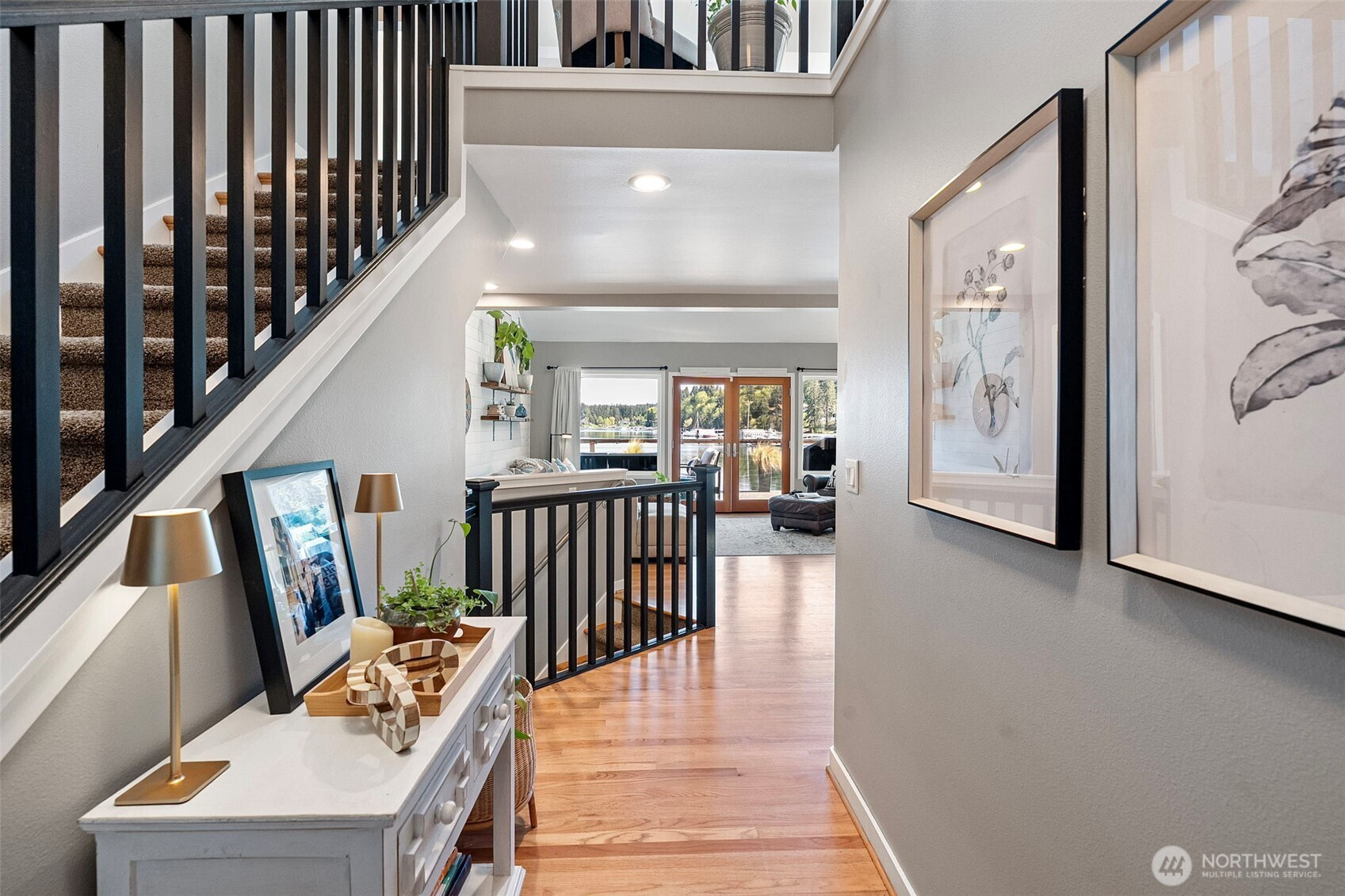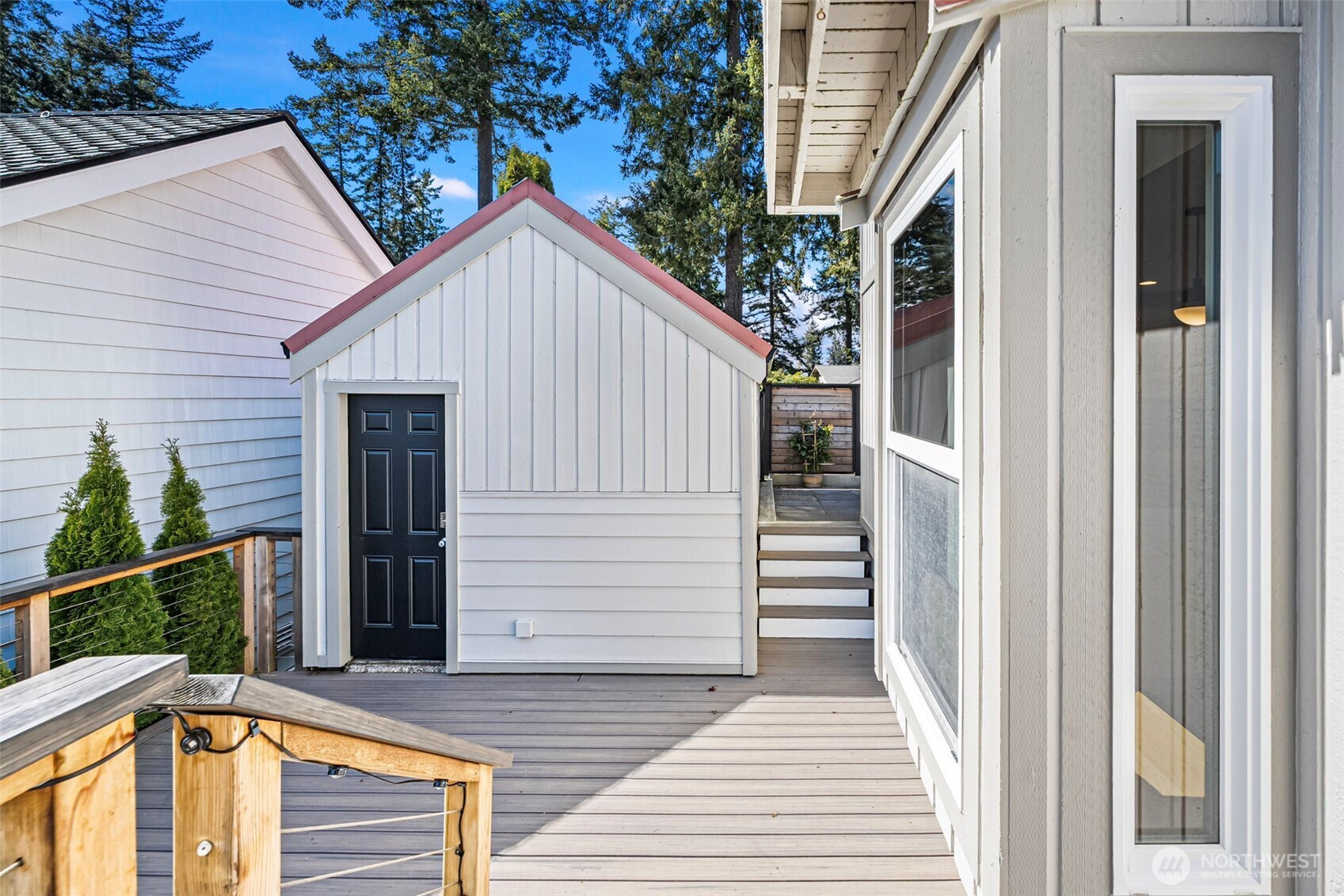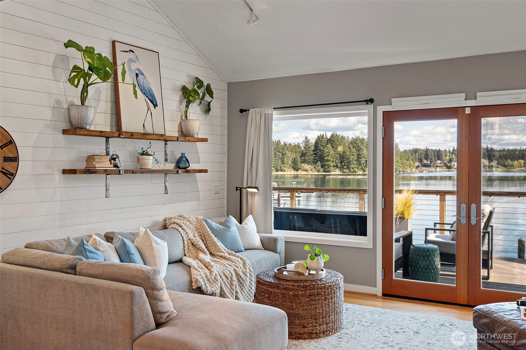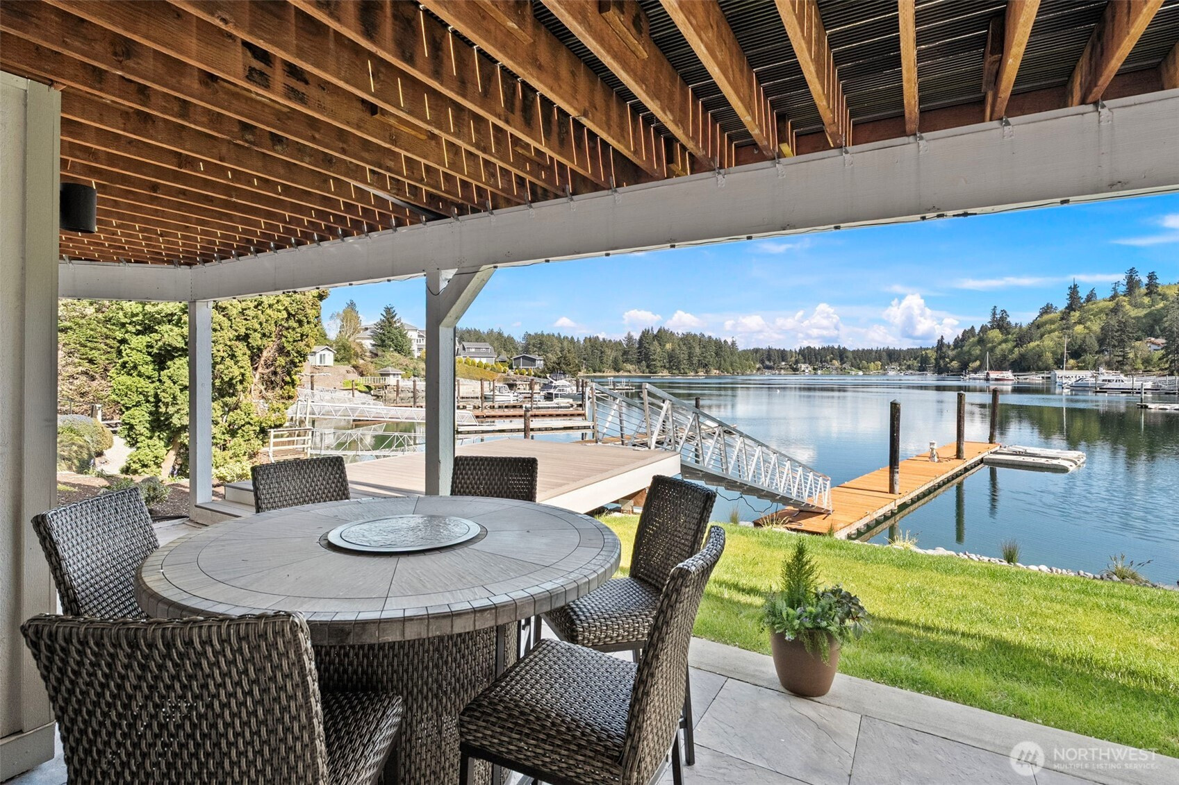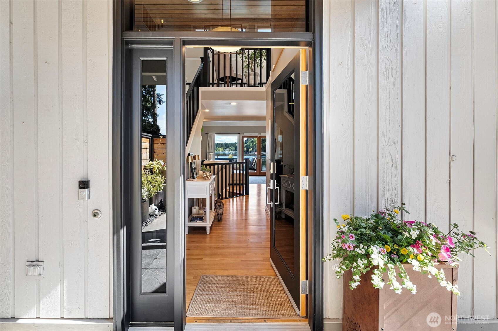 295 Shorewood Court is where Fox Island waterfront living feels effortless. Set along Echo Bay, tucked quietly off the main road, this multi-level home captures unobstructed water and Mount Rainier views from every room, and every level. The presence of the water is felt throughout, and every level opens to the outdoors. Wake up to the glassy waters of Echo Bay and start your day from the water. Swim, kayak, or boat from your own backyard. Great room flows seamlessly through double doors extending your living to the outdoors onto the new Trex multi-level decks and cable railing. A bedroom and bath on every level. Primary Suite is private and occupies its own level with an open loft, balcony, and abundant storage. Renovated lower level features a full kitchen, secondary living, and flex space/3rd bedroom — ideal for extended guests. Concrete patio just a few steps to the private dock. New 73' engineered rock bulkhead - professionally installed & permitted. Private dock with water. New 42' commercial-grade aluminum gangway. New 3-tank GeoFlow septic system with drainfield. Metal roof. Central A/C. Wired for generator. Hardwood floors on main and plank flooring on lower level. Tinted windows add privacy. Attached 2-car garage, detached 1-car garage/shop/gym. Fully inspected. Fox Island has a rhythm of its own with annual community events, summer concerts, or walks to Bella Bella Beach. 295 Shorewood Court — where the life you imagined becomes the one you live.