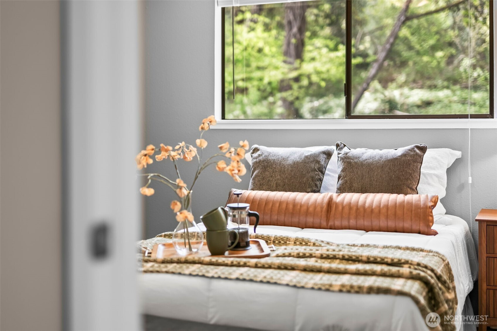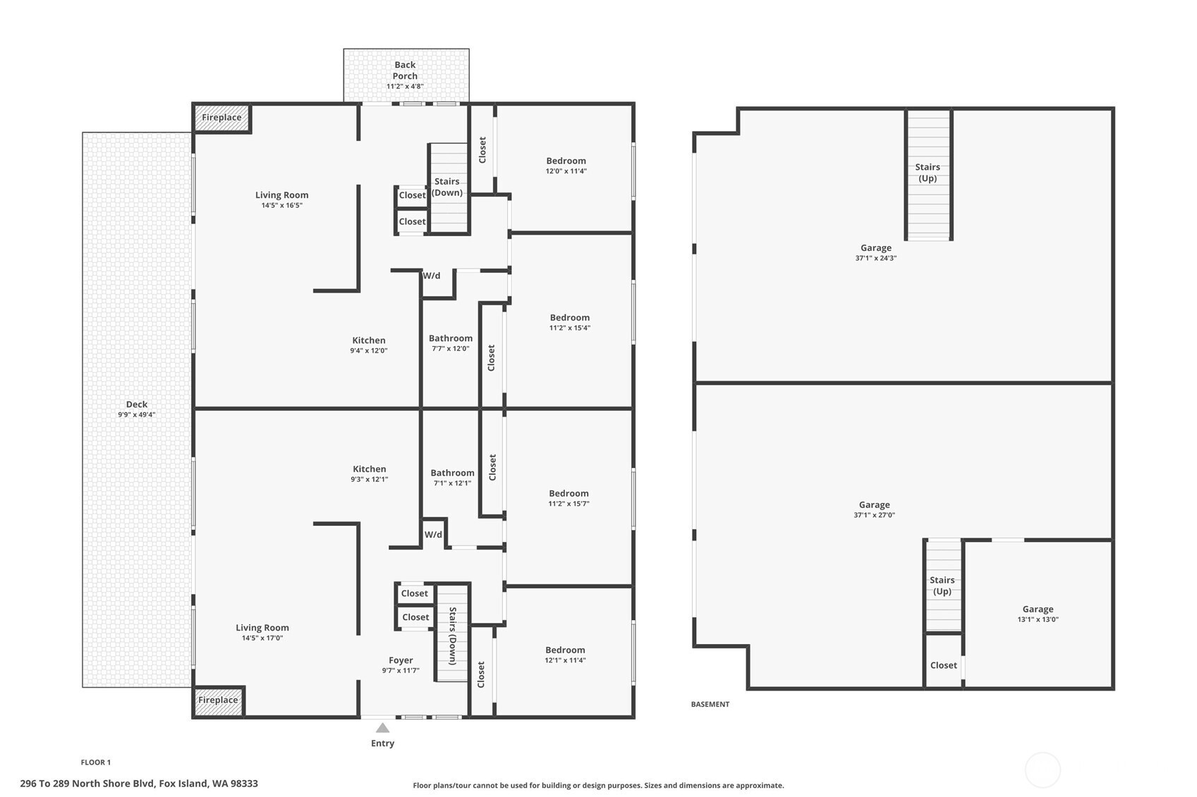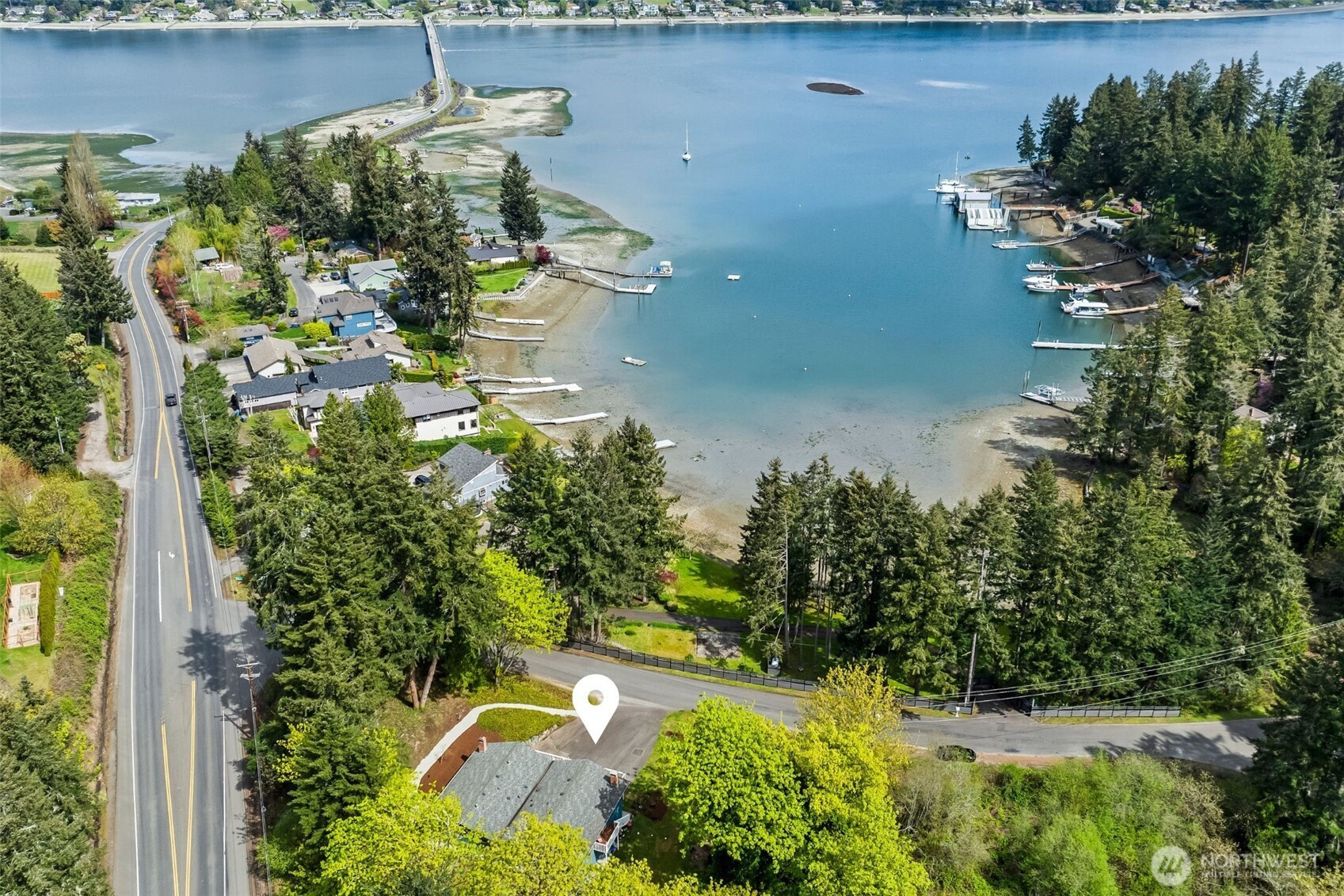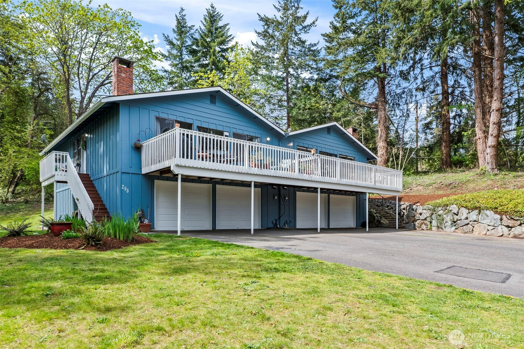 Not just one but TWO Fox Island VIEW homes with more than 2200 sf of garage and storage on a usable 1+ acre lot just across the bridge. So many possibilities are at your fingertips - Live in one, pay the mortgage with the other, take advantage of the space to park all the toys and RV, have a multigenerational compound near the water, or get creative and modify it into one. Each side features a great room with big view windows, vaulted ceilings and sliding doors to the newly resurfaced deck to take in the sunrises, the vistas of Honeymoon Bay and all the activity in Hale Passage. They also each include 2 spacious bedrooms (one with a door to the full bath), a stacked washer/dryer in the hall, and a compact open kitchen on the main level. 298 was renovated in 2016 with new cabinets, granite countertops, new flooring, canned lighting, and resurfaced ceilings (no popcorn). It's currently rented through July 2027 at $1950 per month (under market). 296 is refreshed and ready for quick move in. The huge garage/flex spaces below are a blank slate (or a dream come true for the garage lover) including 220 power. A new 4 bedroom septic installed in 2015 and a small 2nd parcel complete this exciting package!