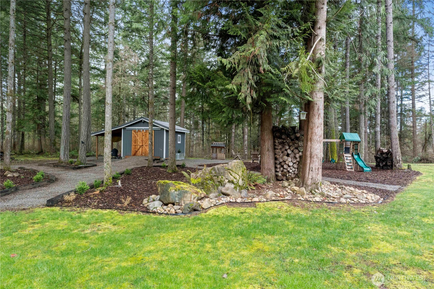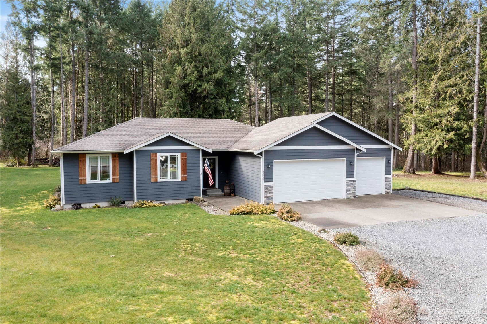 Welcome to country living! This 2015 built house sits on 5 wooded acres. Walk into your open concept family room with formal dining and loads of natural light. Your large kitchen has granite countertops, great prep space and walk in pantry. The primary bedroom boasts a 5 piece bathroom with huge walk in closet. The 2nd and 3rd bedrooms are adorned with beautiful accent colors and a Murphy bed! Loads of space in the 3 car garage. The individual well has a filtration system. Fantastic back yard with play set, storage shed, fire pit & covered back patio. RV and boat parking. Ask about the assumable VA loan at 2.25%! Quick drive to Roy, JBLM, McKenna & Yelm.