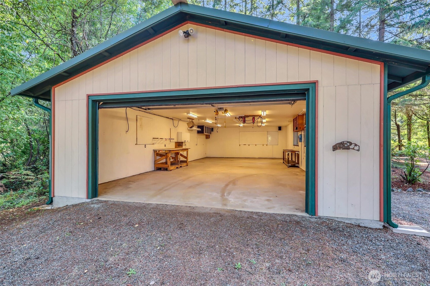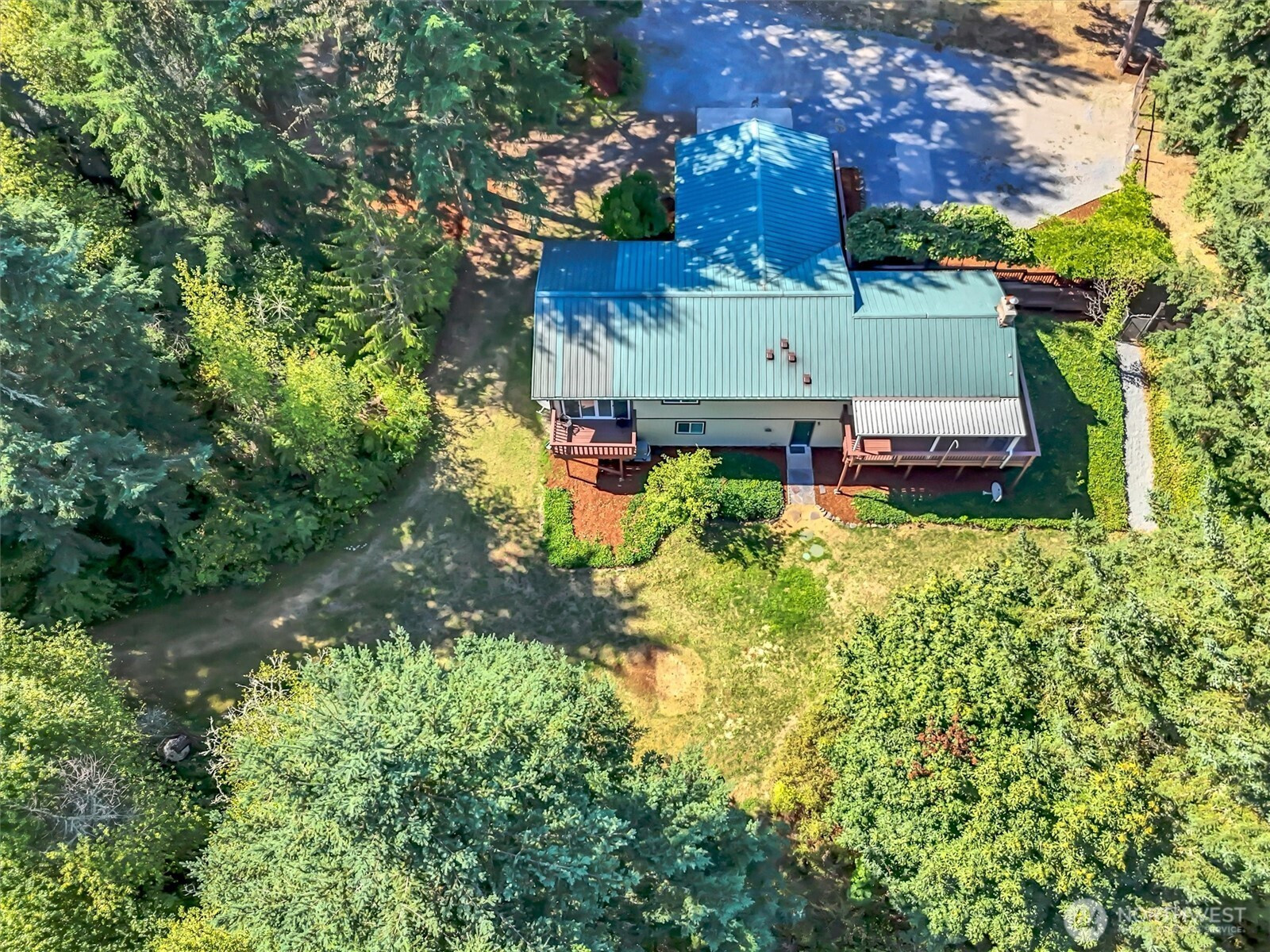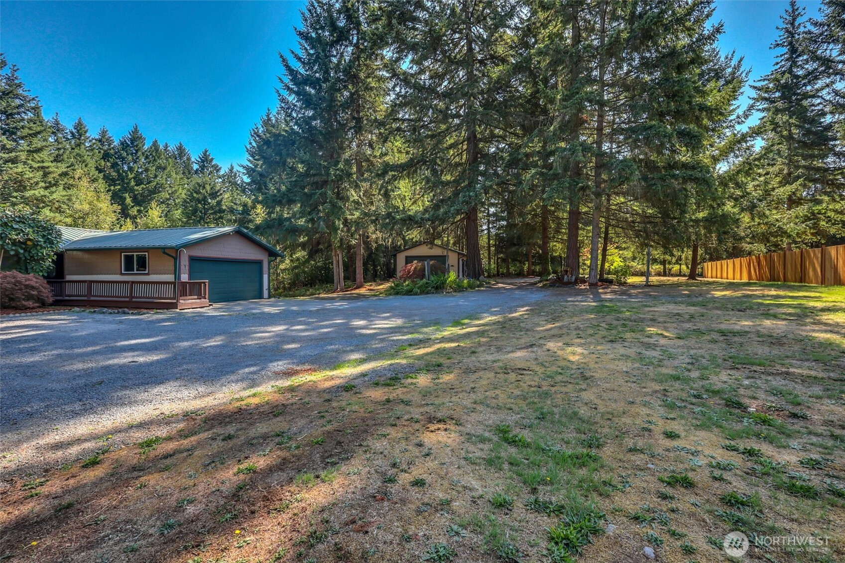 Country Living on over 3 acres, 4 Bedroom, 2 full Baths. NEW : interior/exterior paint, all carpet, Furnace and HEAT PUMP, Cedar Fencing. Primary Bedroom on each Floor plus 2 additional on main. Huge 6+ car Shop w/ three 220 outlets and included tools. 4 car carport w/electricity. 2 car Garage on Home. Extensive wrap around Decking. Metal Roofs on all Buildings. A-frame Cabin near seasonal Creek. Great fenced dog run. Lower level with separate entrance and Wood Stoves on both levels! A RETREAT you don't want to miss out on!