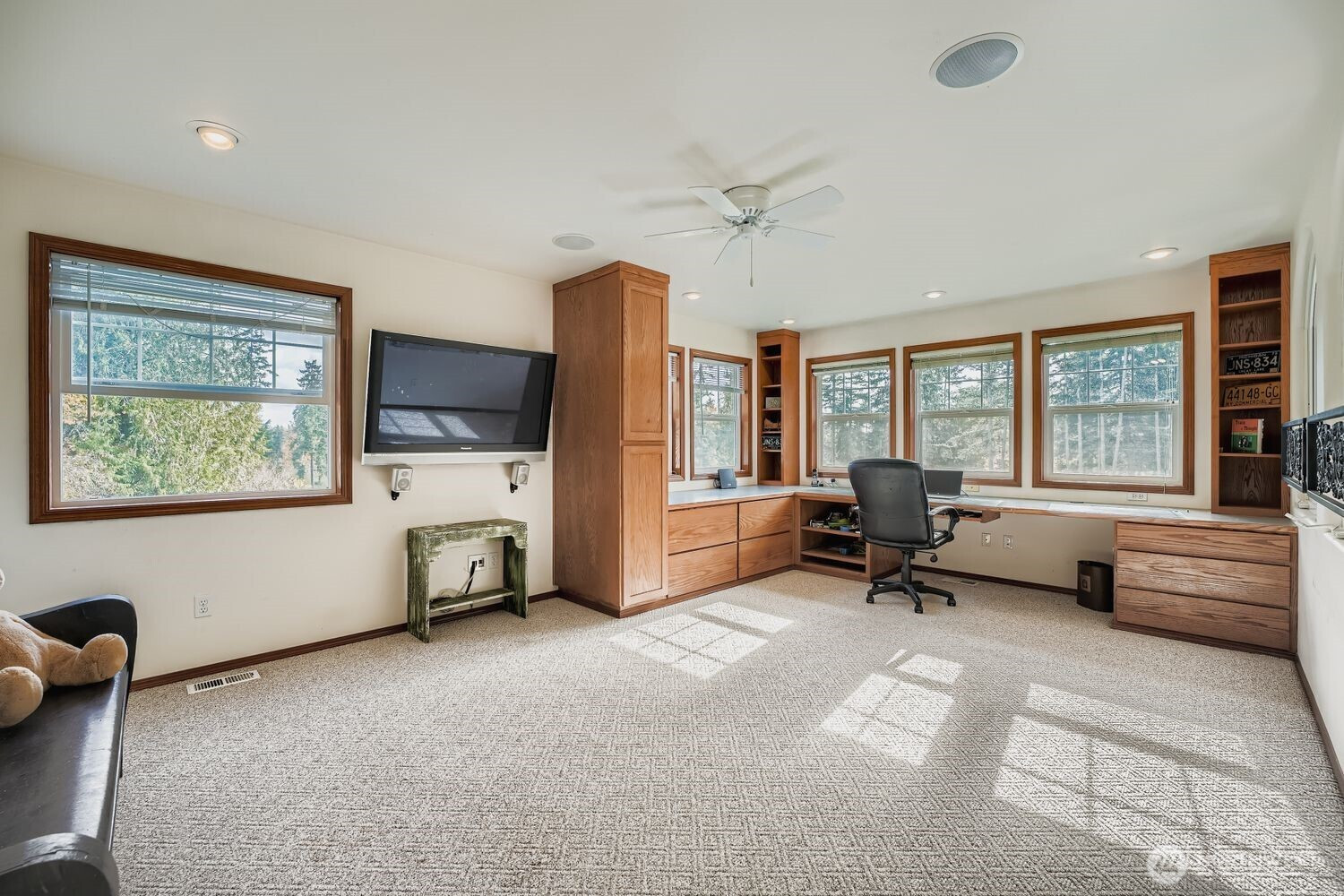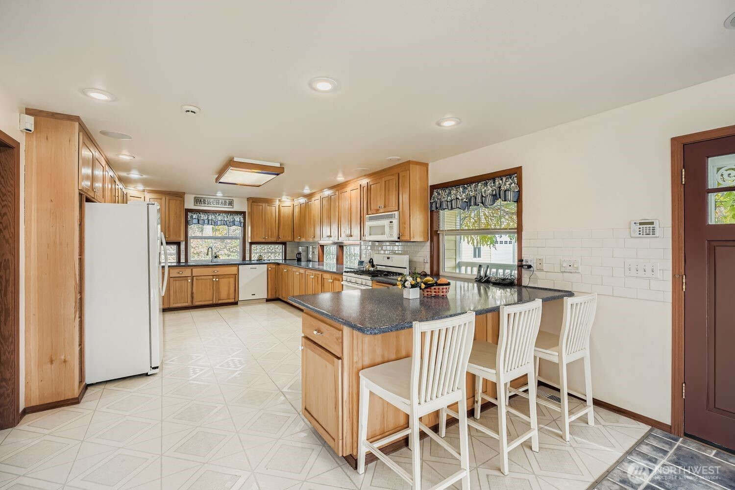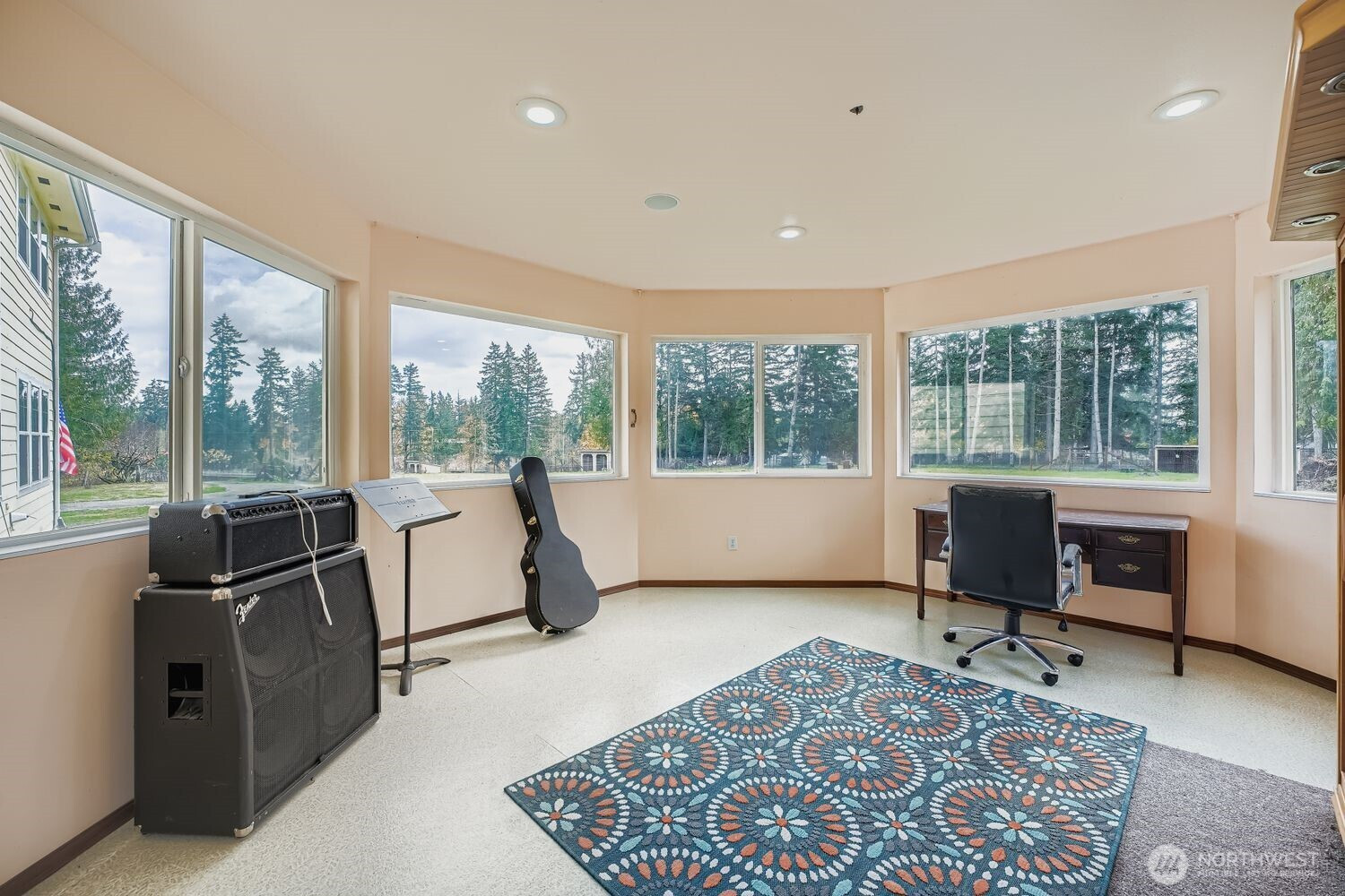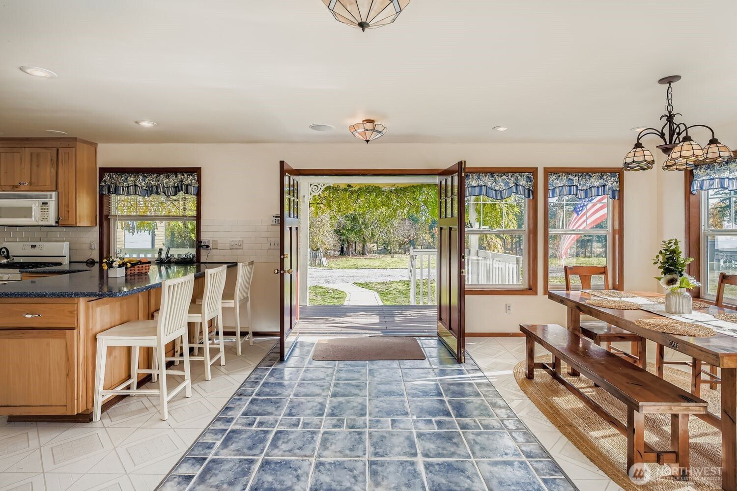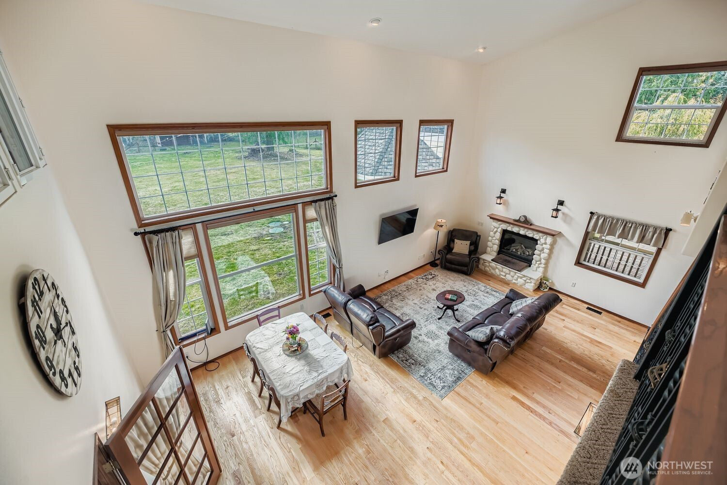 Modern farmhouse on 4.4 serene acres w/sweeping pastoral views. Nearly 3,000 sqft custom home w/handsome craftsmanship: solid oak doors, rich hardwoods, vaulted ceilings & abundant natural light framed by wrought-iron accents. Designed for entertaining, the open layout features a gourmet kitchen w/hickory cabinetry, generous dining area & seamless indoor-outdoor living w/covered front & back porches. True equestrian setup, 6 fenced pastures, horse shelters, 2 sheds, gardens, large shop built for a car lift & covered RV parking. Unique octagon music room w/private sauna. Smart ranch layout w/main-level mud/tack rooms & laundry. Upper-level office overlooks acreage & livestock w/partial Mount Rainier view. Assumable VA 3.5%!