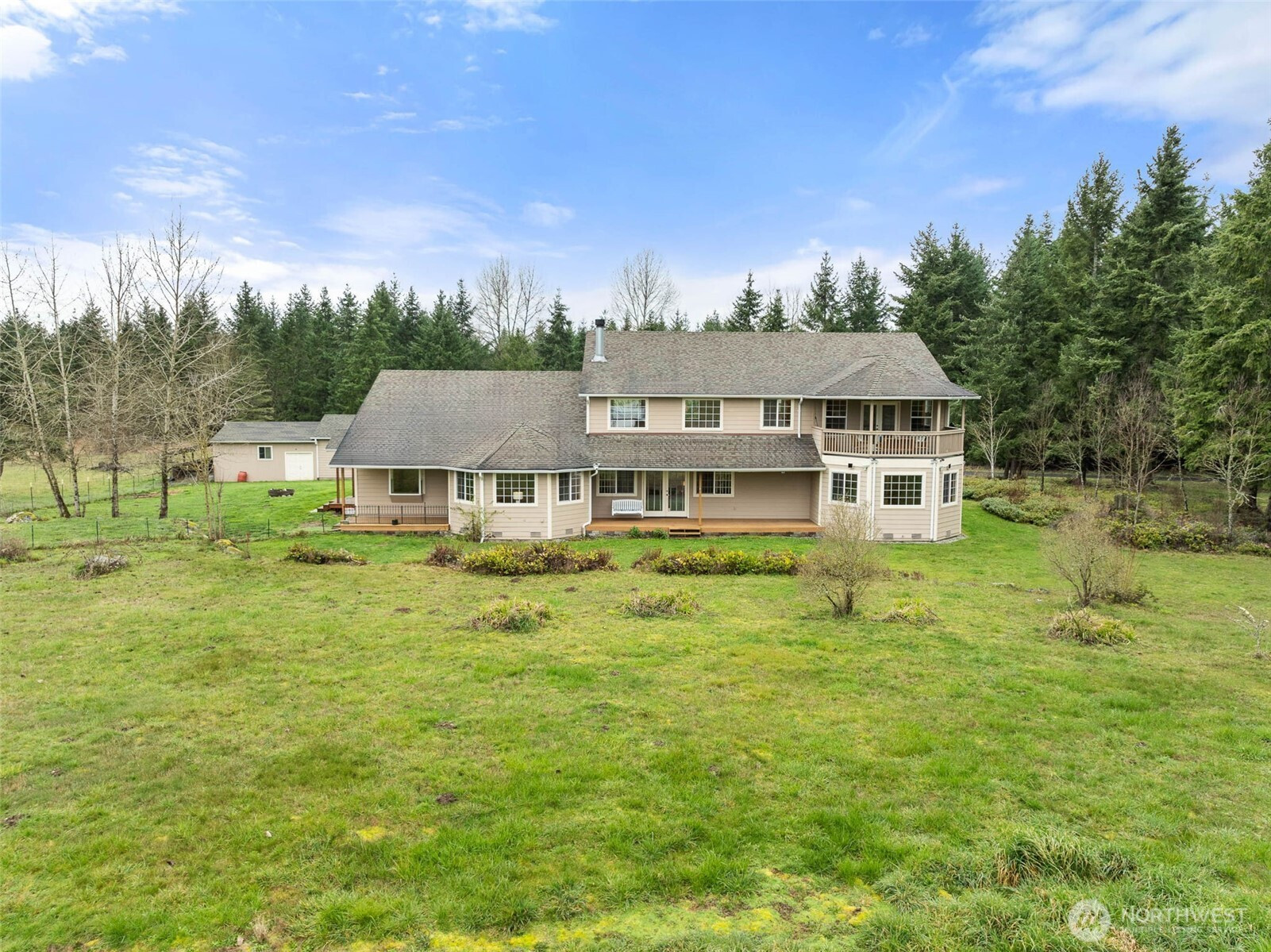 Your own PNW sanctuary with sweeping Mt. Rainier Views awaits! Private 21+ acre estate truly has it all, priced under tax assessed value! Custom built in 2001, this 4,343 sq ft home offers 4 bedrooms & 3.5 baths, perfect blend of open yet separated living spaces w/expansive windows that perfectly frame the breathtaking views. Spacious kitchen w/ abundant cabinetry, a warm vaulted knotty pine ceiling, new tile flooring, & updated appliances within the last 5 years (including a smart refrigerator.) The oversized walk-in pantry room provides incredible storage. All appliances stay, including the W/D. The main level w/original hardwood floors & primary suite w/ 5-piece bath + enormous walk-in closet. 4 bedrooms located on the main level, w/ 2 additional finished rooms + large flex space upstairs with French doors leading to the expansive upper deck; the perfect place to take in the panoramic Mt. Rainier views & countryside! Enjoy outdoor living year round on lower deck from your hanging porch swing. The home is equipped with A/C for warm PNW days. Recent updates include fresh interior paint, updated lighting fixtures, and over $110,000 invested in improvements over the past five years (detailed list available). The property offers incredible versatility w/ attached 3-car garage, a separate 2-car garage/workshop + storage room, & massive 55x30 metal carport ideal for RV or boat storage. With 21+ acres of privacy, there is ample space for hobbies, animals, recreation. Must see!