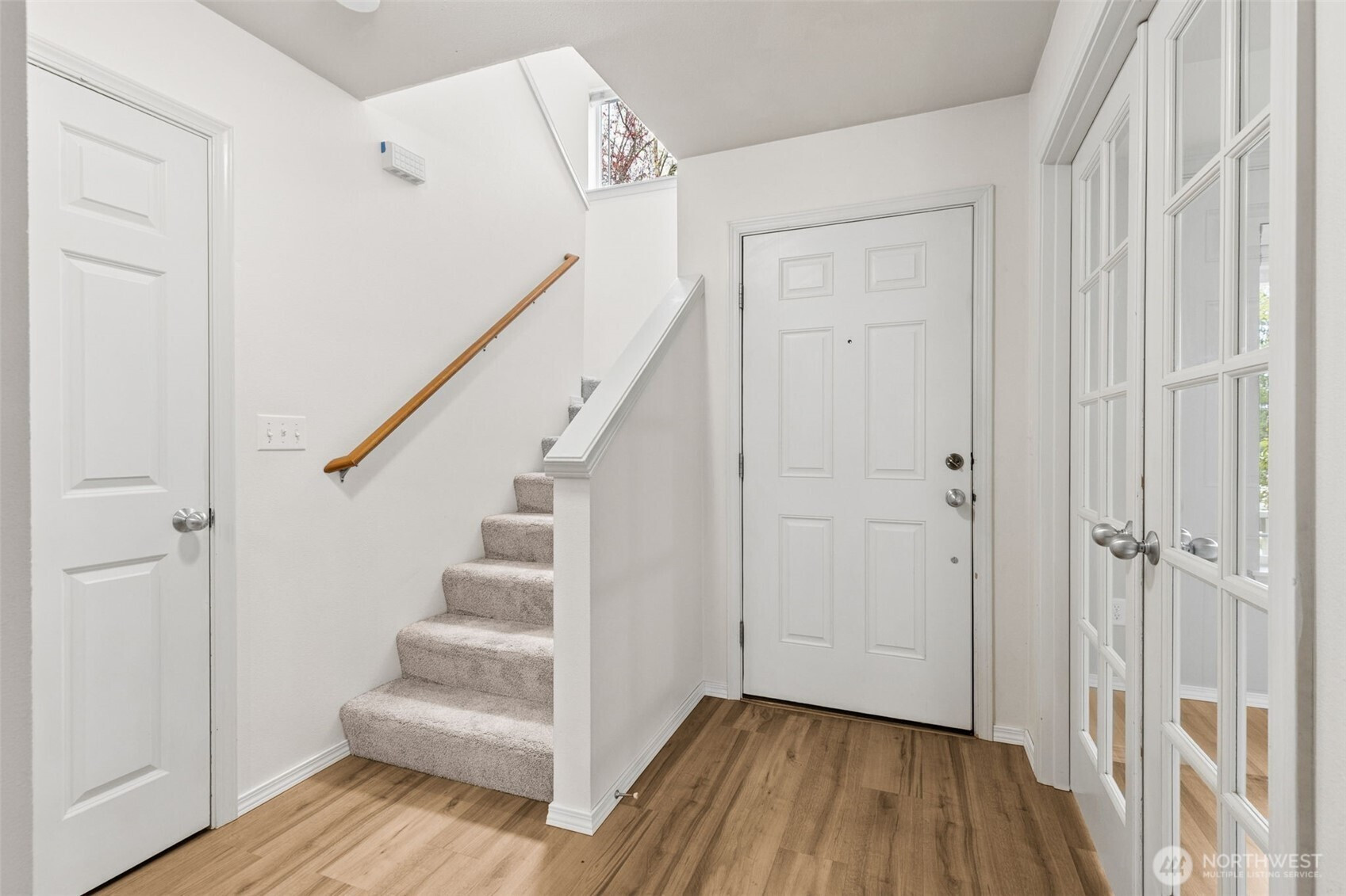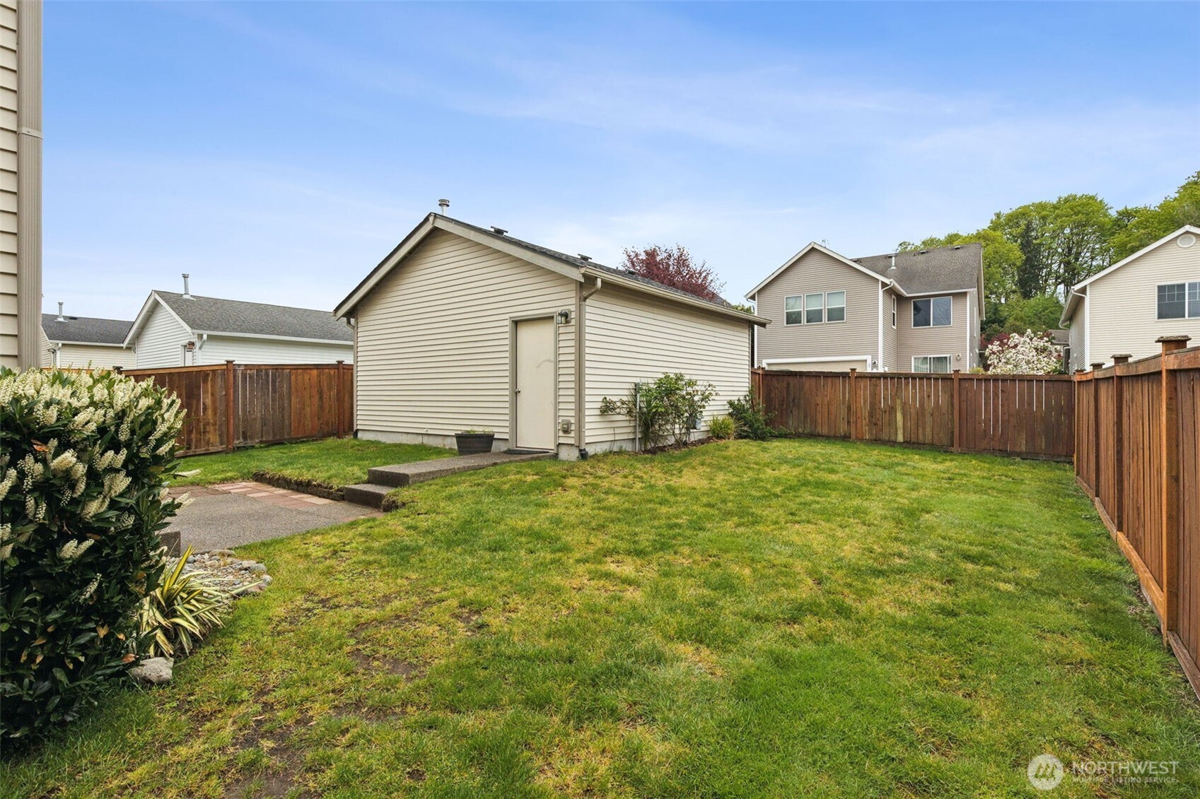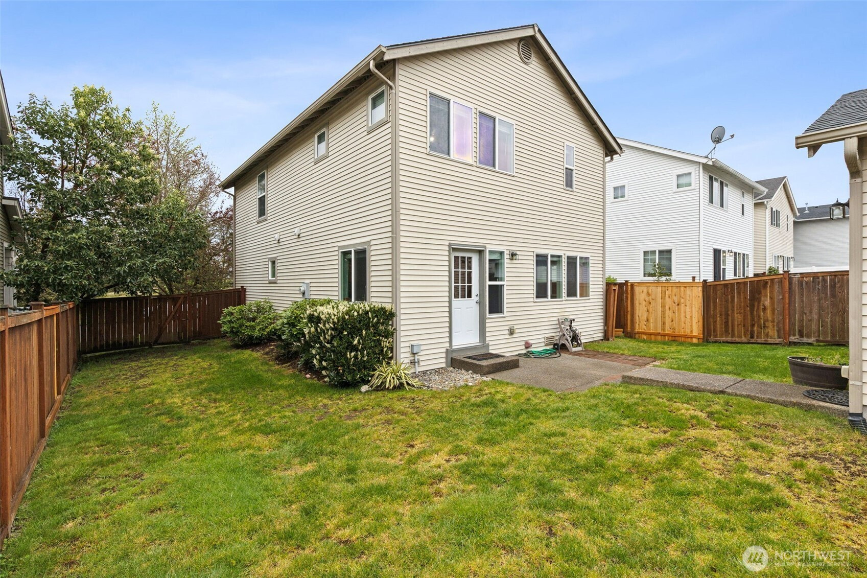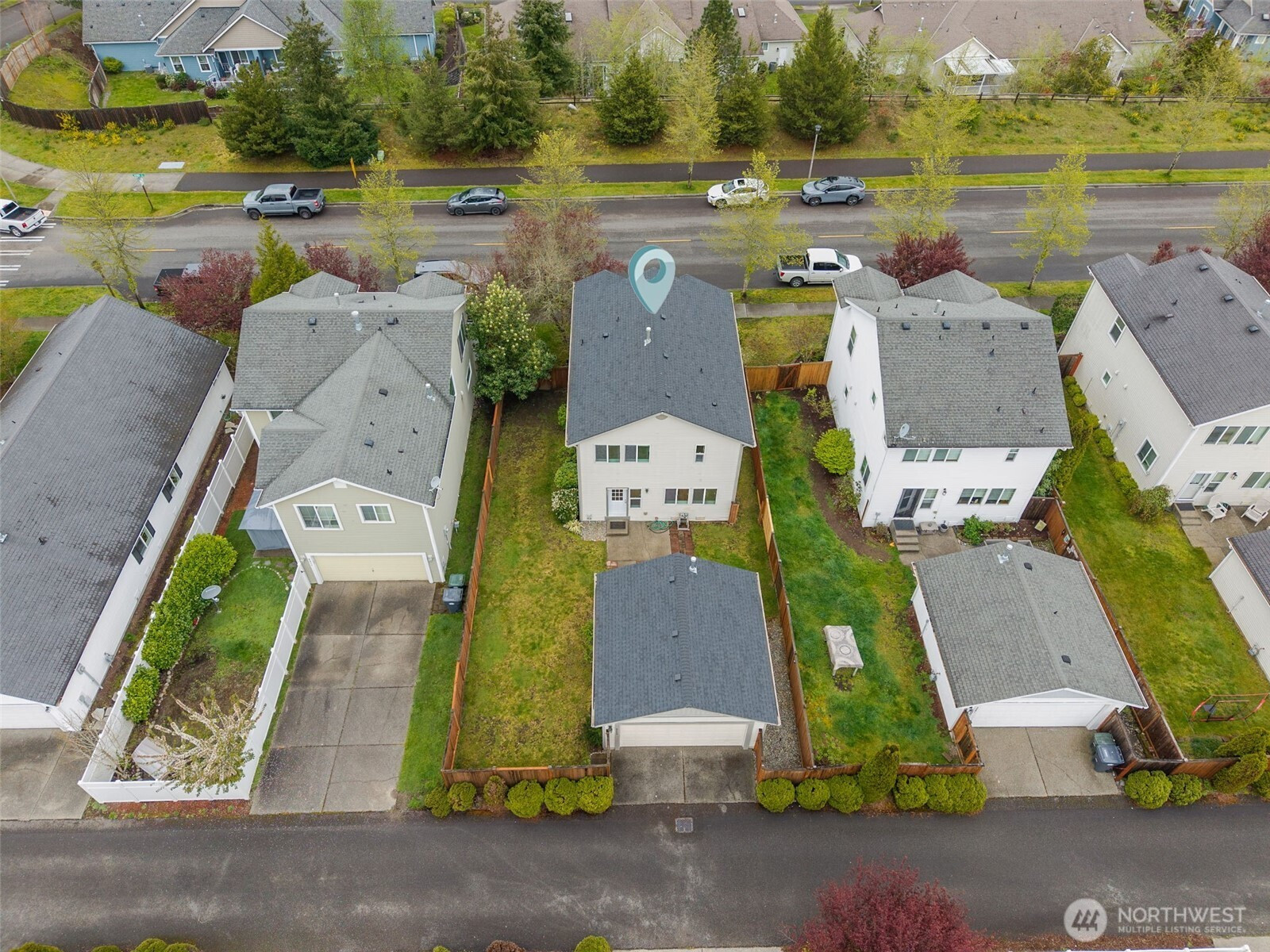 Welcome home to one of DuPont’s most sought-after floorplans! This inviting 1,712 sq ft home offers 3 bedrooms plus a versatile bonus den with elegant French doors—perfect for a home office, guest space, or playroom. Updated modern luxury vinyl plank flooring downstairs and nearly new carpet upstairs. Enjoy peace of mind with a brand-NEW roof AND gas furnace, giving you comfort and confidence for years to come. The main level features beautiful hardwood floors, a cozy gas fireplace, and plenty of natural light. Thoughtful details like 2" faux wood blinds, white doors and trim, stainless appliances and a gas range! Upstairs, the spacious primary suite includes a private ensuite bath and a generous walk-in closet. Outside, you’ll find a fully fenced, spacious yard with a patio—ideal for relaxing or entertaining—plus a detached 2-car garage. Located just a minute walk from miles of scenic trails with views of the Sound, and within walking distance to parks and playgrounds, this home offers the perfect blend of nature and community. Enjoy DuPont’s vibrant neighborhood feel with year-round events, summer farmers markets, music in the park and more. With easy access to I-5 and JBLM, commuting is a breeze!
