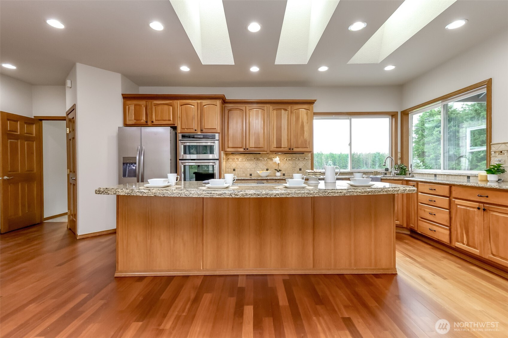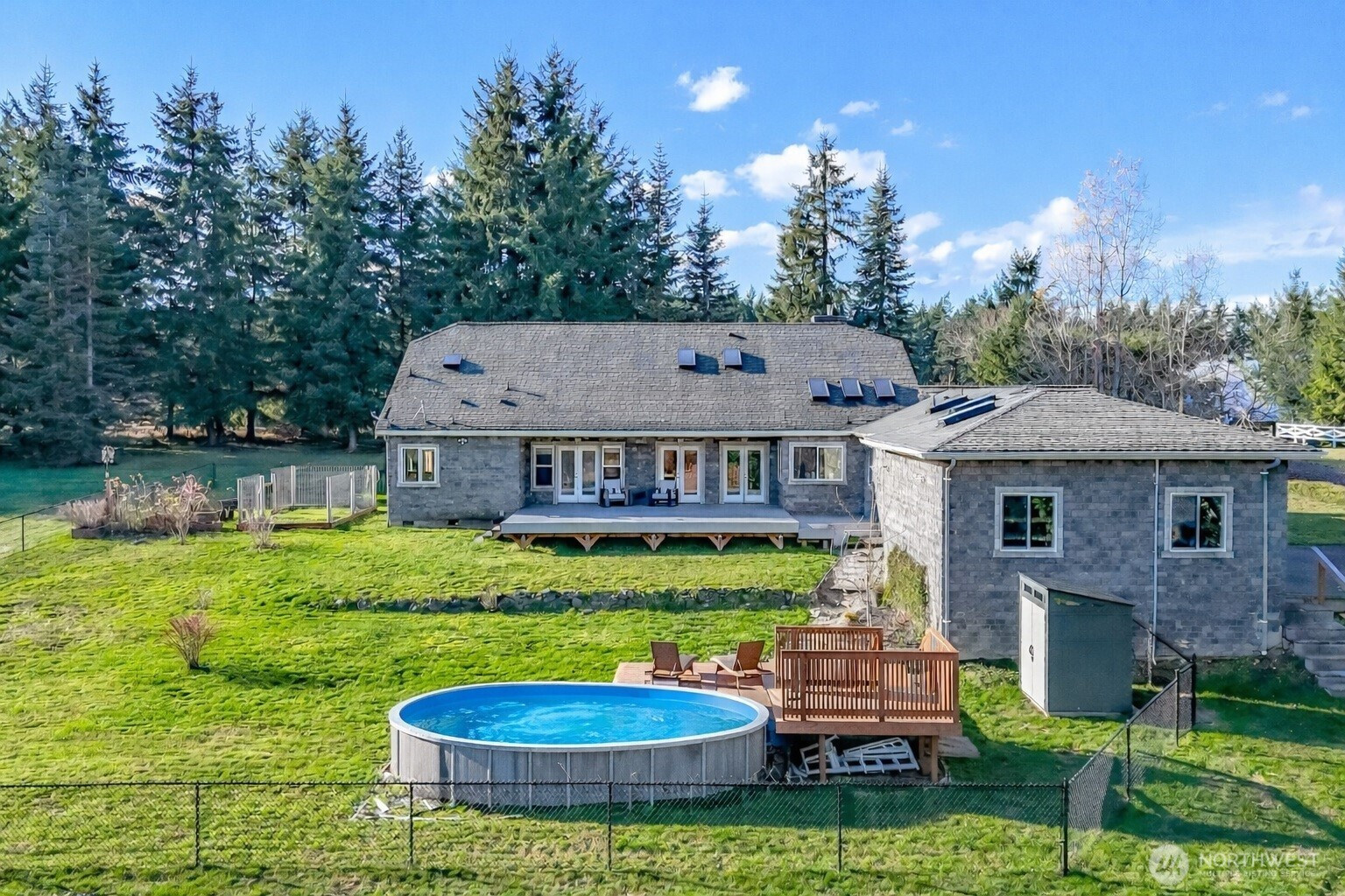Custom rambler set on over 20 sub-dividable acres offering privacy, open space, and stunning mountain views. Enjoy outdoor living from the wraparound front porch, large private back deck, or stone fire pit. Low-maintenance stone exterior with an oversized finished three-car garage, detached finished two-stall garage/shop, and nine paved parking spaces.Interior features include a spacious great room with custom built-ins and a massive stone fireplace shared with the dining area. Chef’s kitchen designed for entertaining with large breakfast island and custom cabinetry. Family room is wired for surround sound and offers dual patio doors to the back deck.Primary suite includes mountain views and a five-piece bath. Two additional bedrooms are en-suites with private bathrooms. Flexible layout also offers a private office with French doors, an additional finished room ideal for a second office or home gym, a dual-sink hall bath, and two half-baths.Recent updates include new interior paint, flooring, light fixtures, hardware, and ceiling fans throughout. Hardwood floors have been professionally buffed, cleaned, and sealed. A rare opportunity combining acreage, updates, and exceptional views—must see.