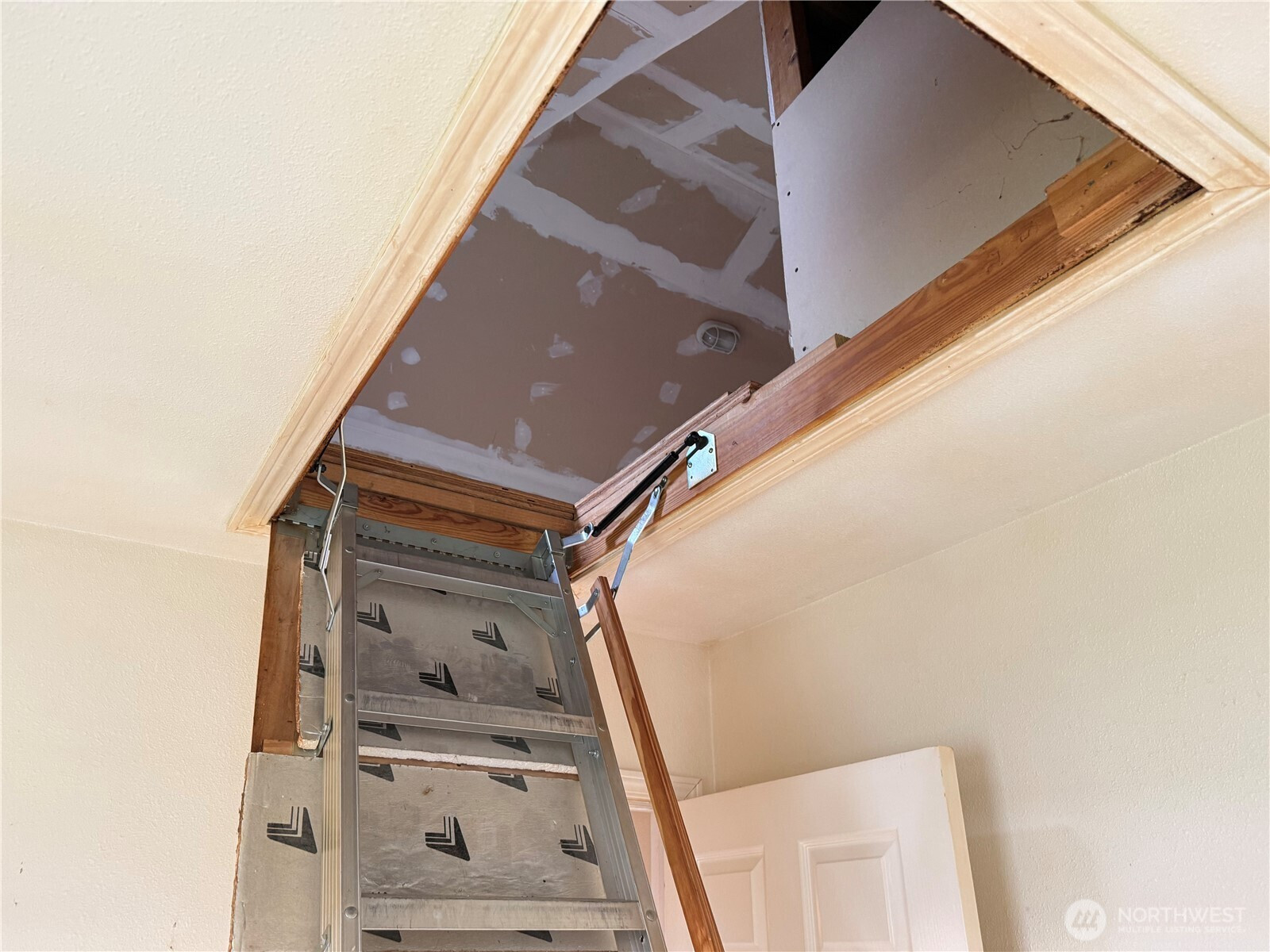 Enter through the door to a complete remodel, done a few years ago. Roff is 5 years old, attic is sheet rocked and ready for your finishing touch ...could be extra bedrooms??? Large lot, Near the NEW Franklin Elementary. Alley access to detached one car garage and shop.