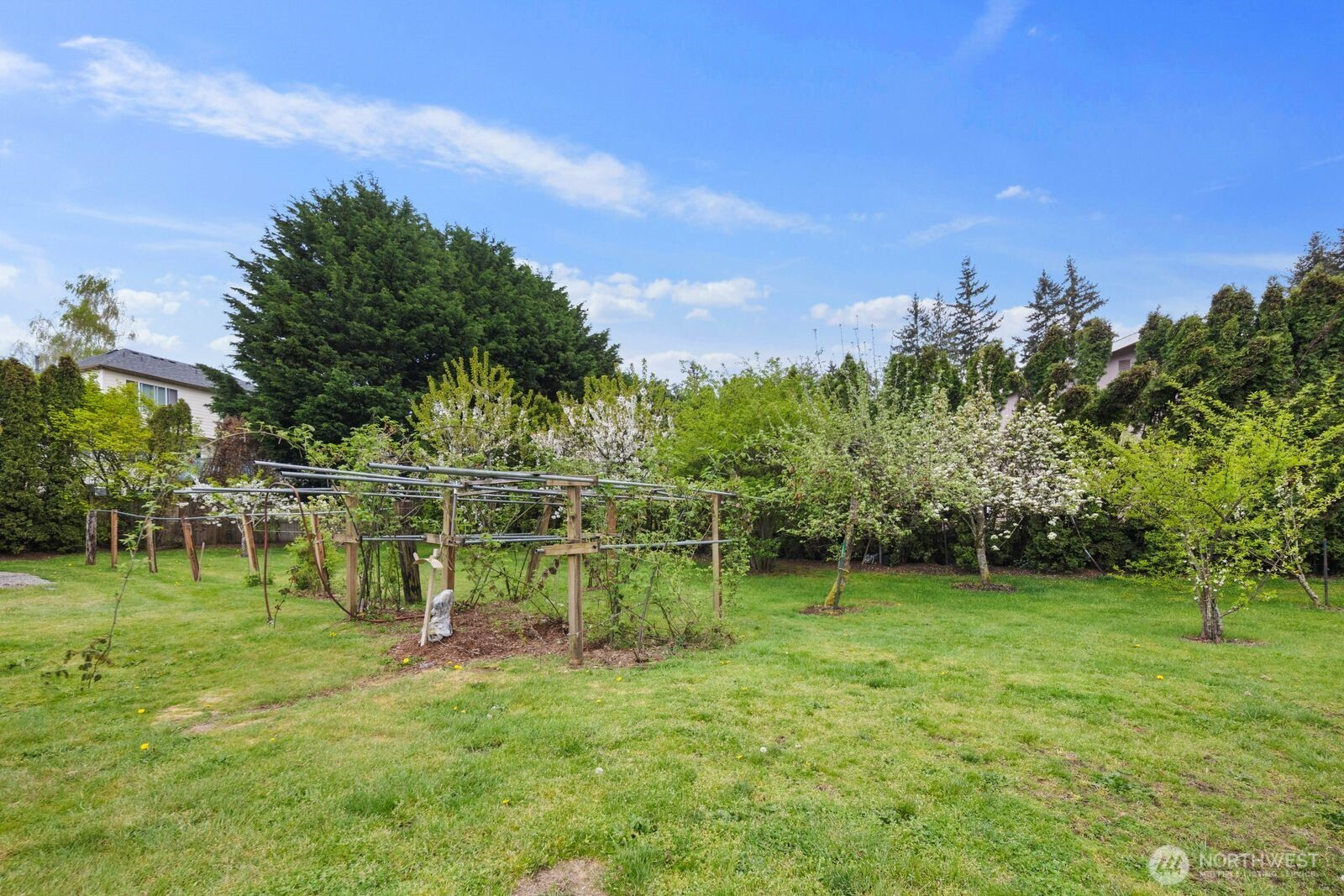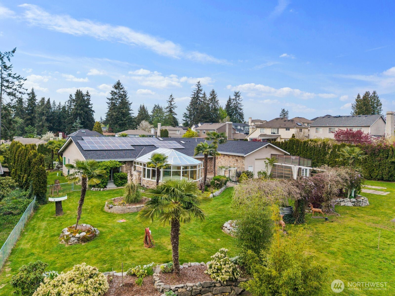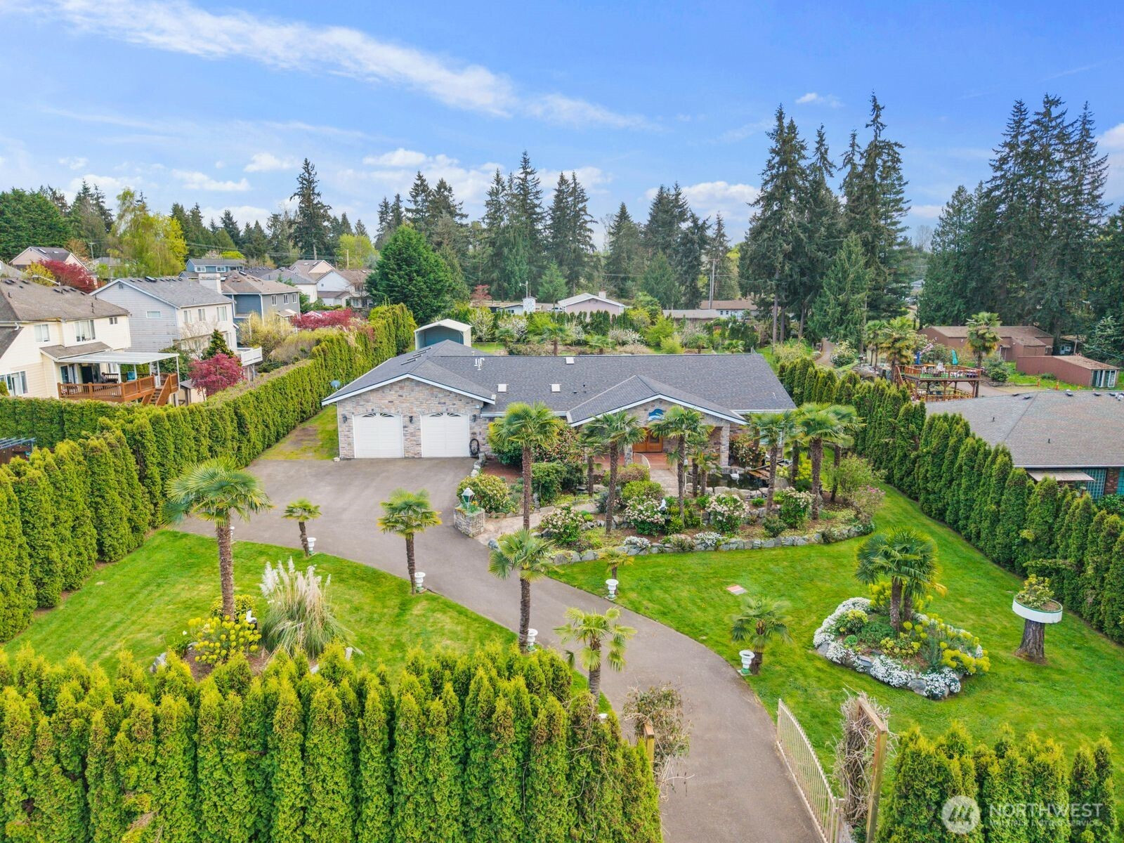 Stunning custom rambler set on an expansive 50,600 sq ft fully fenced lot, offering the perfect blend of comfort, functionality, and outdoor beauty. This spacious home features a luxurious primary suite with an oversized walk-in closet, along with thoughtful upgrades throughout including solar panels, a brand-new furnace and heat pump, tankless hot water system, and a gas generator for peace of mind during rare power outages. The well-appointed kitchen is designed for both everyday living and entertaining, featuring a huge island, double oven, and an abundance of cabinetry providing exceptional storage and workspace. Step outside to your private oasis with beautifully curated landscaping, complete with palm trees, a tranquil koi pond (with mature koi, filtration system, and maintenance equipment included), greenhouse, and abundant garden space. Enjoy a variety of established fruit trees including Bing cherry, Asian pear, peach, apple, and plum, plus thriving berry gardens with raspberries, strawberries, blueberries, and marionberries. The impressive 70’ x 30’ (2,100 sq ft) shop is a dream for hobbyists or entrepreneurs, featuring RV-sized doors and a convenient half bath. With room to live, grow, and create, this one-of-a-kind property offers unmatched versatility and charm.