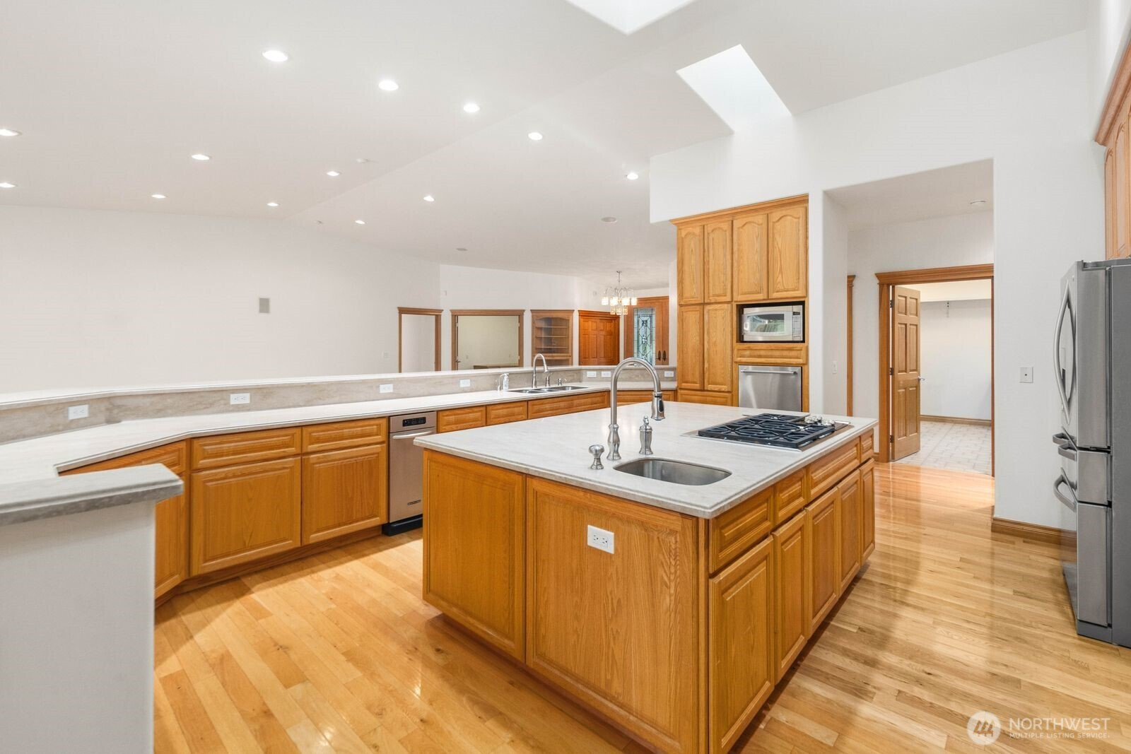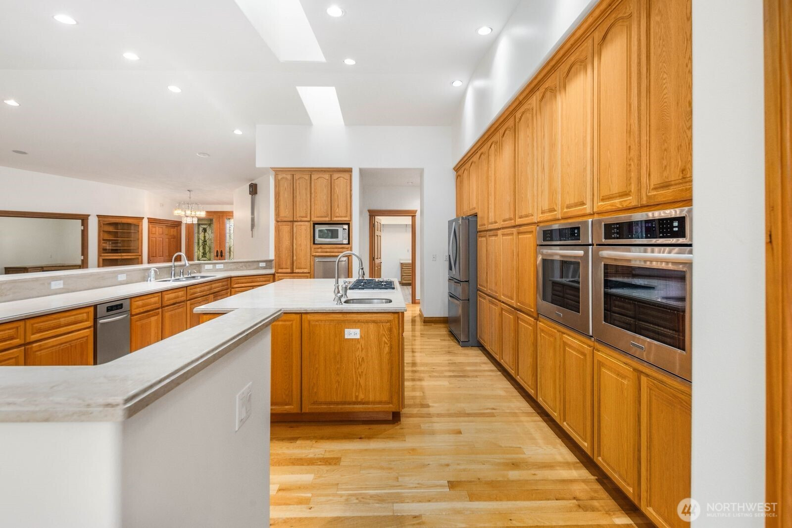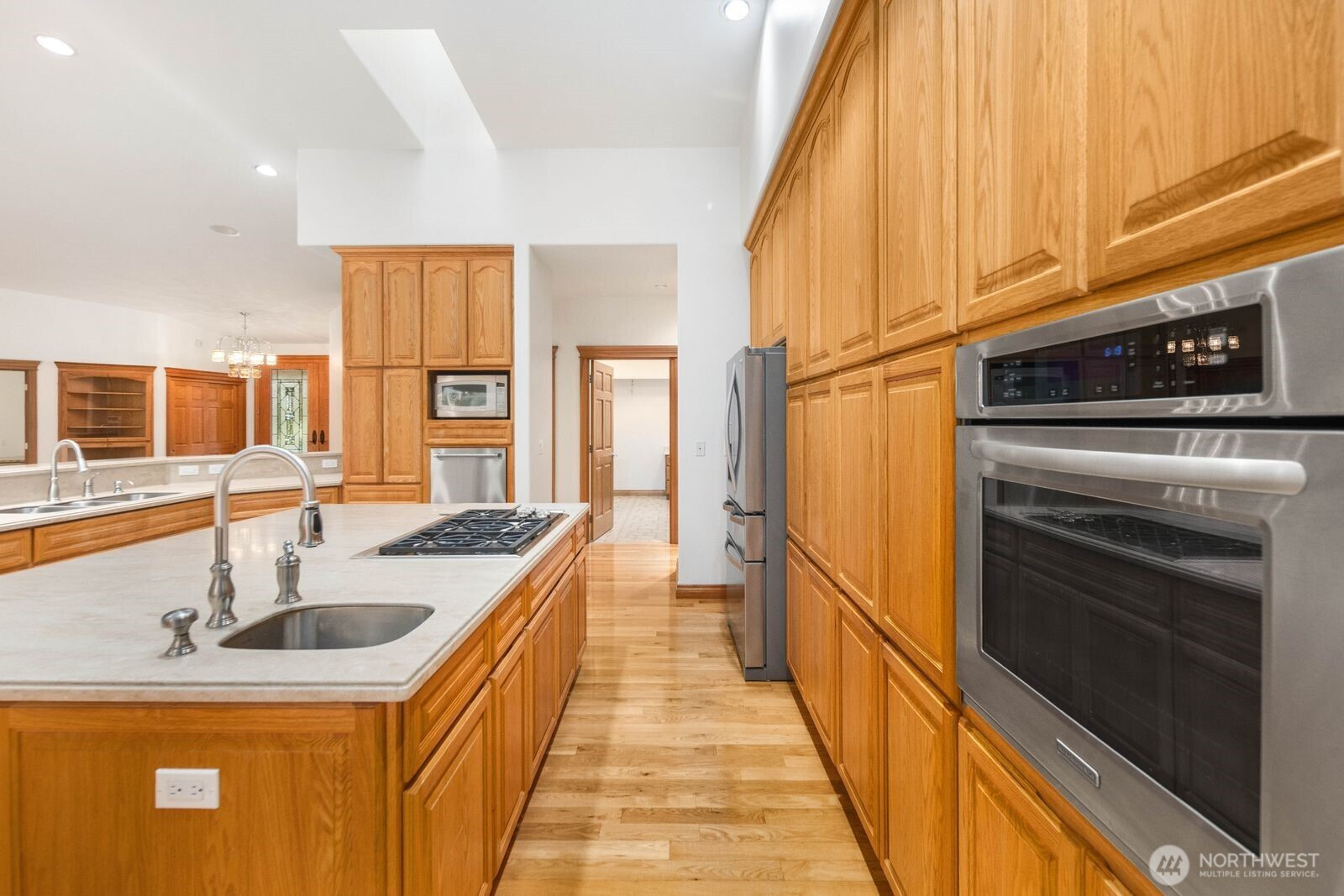 Stunning custom rambler set on an expansive 50,600 sq ft fully fenced lot, offering the perfect blend of comfort, functionality, and outdoor beauty. This spacious home features a luxurious primary suite with an oversized walk-in closet, along with thoughtful upgrades throughout including solar panels, a brand-new furnace and heat pump, tankless hot water system, and a gas generator for peace of mind during rare power outages. The well-appointed kitchen is designed for both everyday living and entertaining, featuring a huge island, double oven, and an abundance of cabinetry providing exceptional storage and workspace. Step outside to your private oasis with beautifully curated landscaping, complete with palm trees, a tranquil koi pond (with mature koi, filtration system, and maintenance equipment included), greenhouse, and abundant garden space. Enjoy a variety of established fruit trees including Bing cherry, Asian pear, peach, apple, and plum, plus thriving berry gardens with raspberries, strawberries, blueberries, and marionberries. The impressive 70’ x 30’ (2,100 sq ft) shop is a dream for hobbyists or entrepreneurs, featuring RV-sized doors and a convenient half bath. With room to live, grow, and create, this one-of-a-kind property offers unmatched versatility and charm.