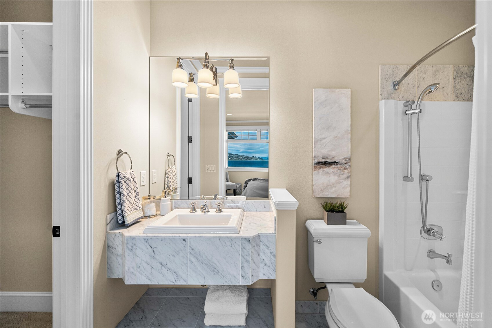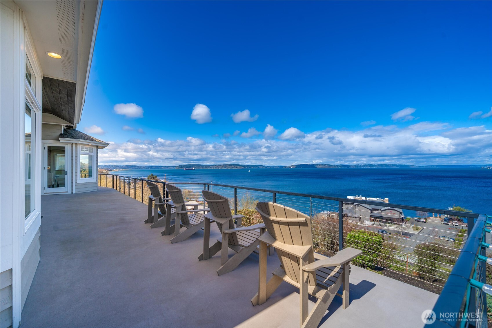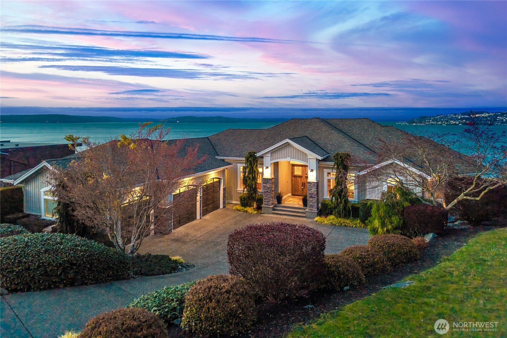 Never before available! Come discover this one-owner, 2005 custom built home in N. Tacoma's Pottery Point gated community. This 6,096 sq. ft. home is centerstage to the everchanging skyline from sunrise to sunset with an unobstructed panoramic view of the Puget Sound across Commencement Bay to Brown's Point, the islands & Olympic Mountains; pirched above Tacoma's waterfront. Enter the grand foyer & celebrate the view as your eyes takes you to the expansive & inviting entertainment size deck. Inside, enjoy the warmth of beautiful Brazilian Cherry hardwood floors, & the open-concept design complete with a gas fireside living room, conversational kitchen with breakfast nook, the formal dining room, & an elegant office with built-in desk, bookshelf, & glassed French doors. The spacious primary suite offers a private fireside sitting area & direct access to the view deck, a 5-piece ensuite, walk-in closet with built-in organization, & a private work out room. An add'l junior suite & laundry room are on the 3,048 sq. ft. finished main floor offering complete single level-living. Additionally, the full-daylight basement offers a private patio with panoramic Puget Sound view. This lower level offers 2,625 finished sq. ft. with 2 junior suites, a 2nd kitchen, fireside living room, recreation room, & theater room, plus three unfinished rooms (423 sq. ft.) for the 2nd laundry room, a dry storage/mechanical room, & a separate room perfect for wine cellar storage. A 3-car garage w/shop.