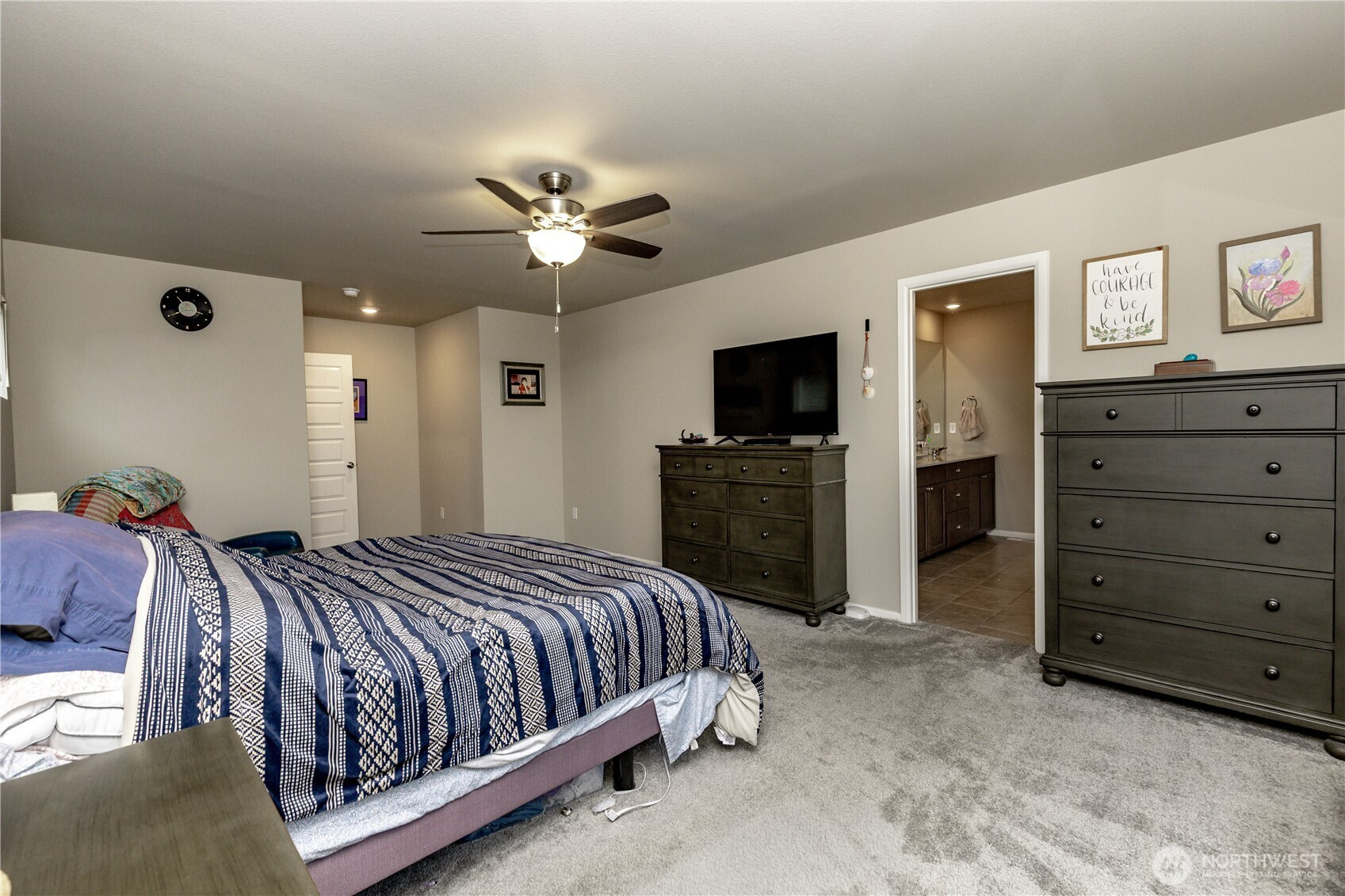 Welcome to this spectacular home in Steward Crossings! This beautiful home built in 2021 offers over 3,000 sq ft, ideally located in NW Puyallup near River Road and Downtown conveniences. Featuring 5 bedrooms, 2.75 bathrooms, this spacious home has the flexibility for today's lifestyles! The open-concept main level showcases a large kitchen with oversized island, ample pantry space and a seamless flow into the dining room - perfect for everyday living and entertaining. Head upstairs to the ginormous loft/bonus space, open for all possibilities! The impressive primary suite includes a very large walk-in closet and luxurious 5-piece bathroom. Additional upgrades include central A/C, energy saving solar panels and community park and sports court! Modern, spacious and move-in ready, this home offers comfort, efficiency and unbeatable location!