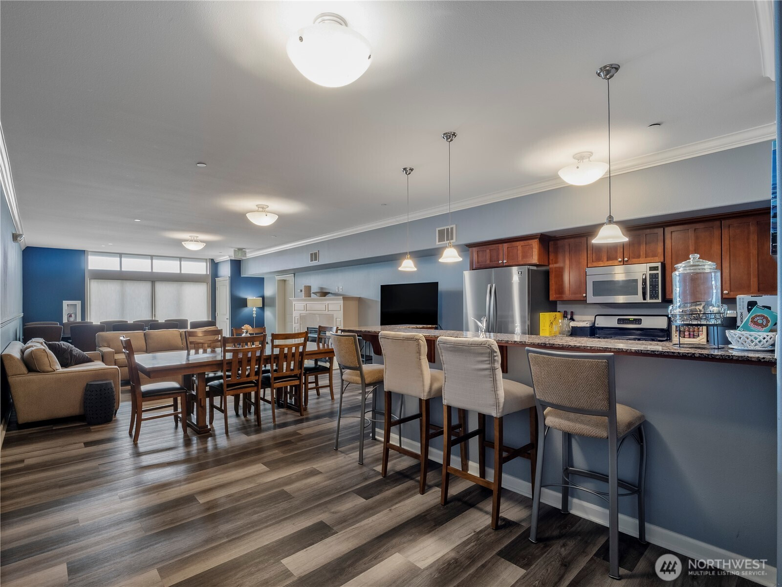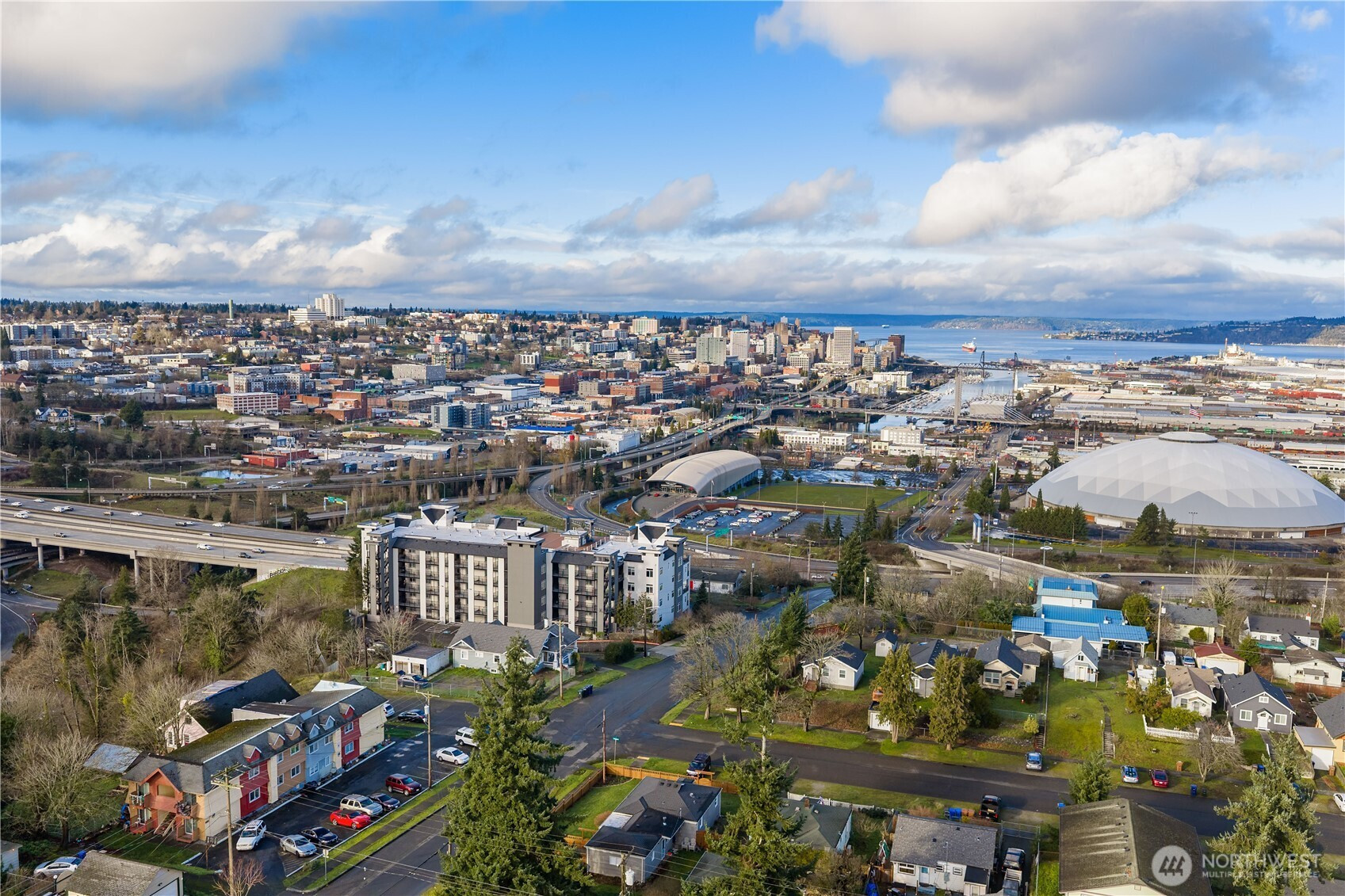 Enjoy stunning views of Downtown Tacoma and Commencement Bay from this stylish first-floor condo! Soaring ceilings, floor-to-ceiling windows, and tons of natural light create a bright, inviting living space accented by beautiful molding and newer LVP floors. Radiant heating and newer carpet add comfort and warmth. Blocks to McKinley Park and the East Tacoma business district. The building offers fantastic amenities, including a gym, community room, and rooftop deck. Fast, easy access to downtown, I-5, and more—urban living at its best! Ask about lender-paid 1 year rate buydown!