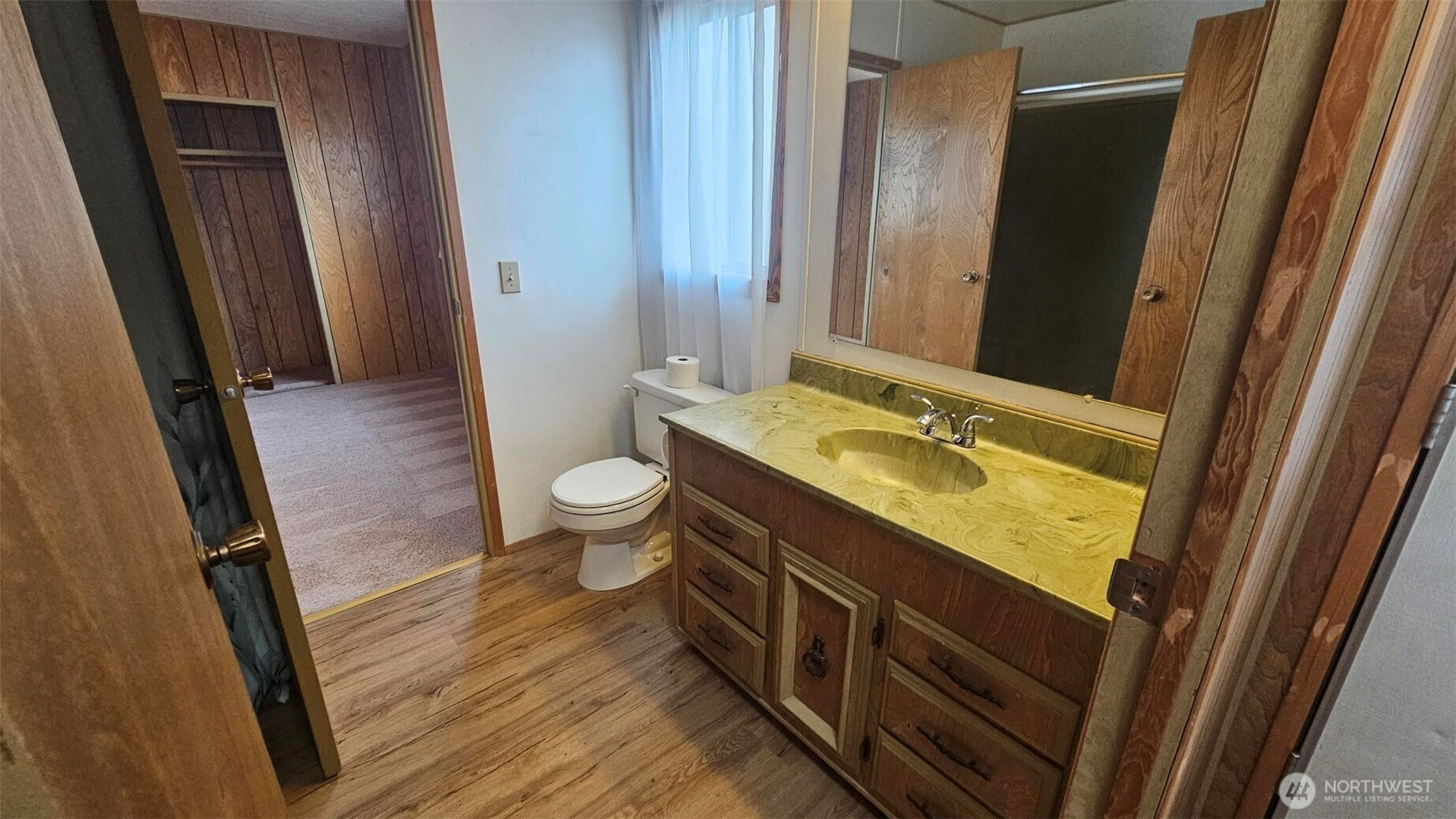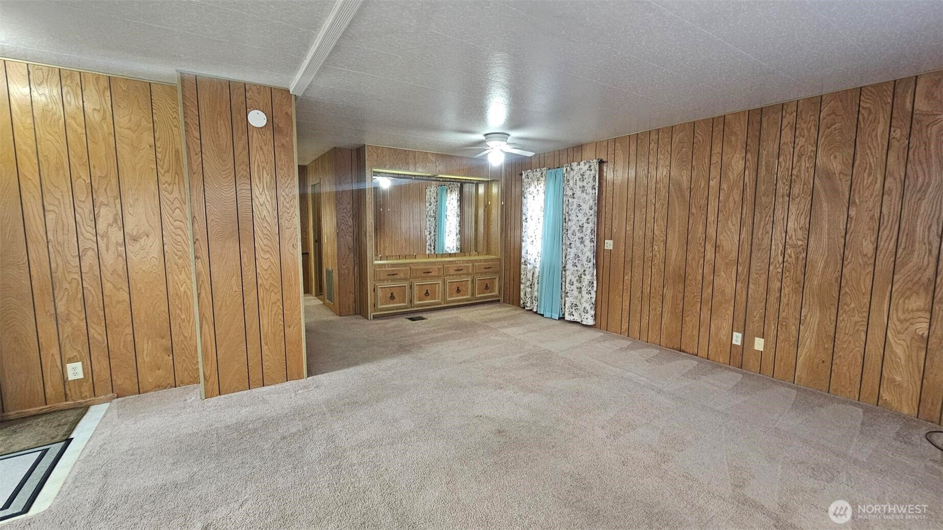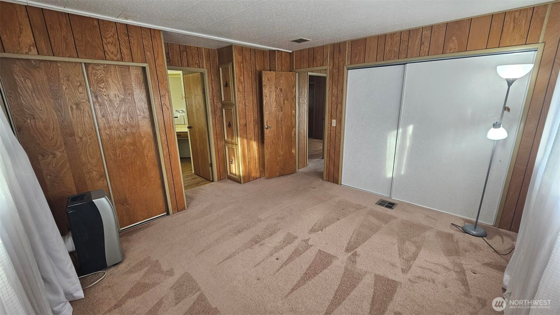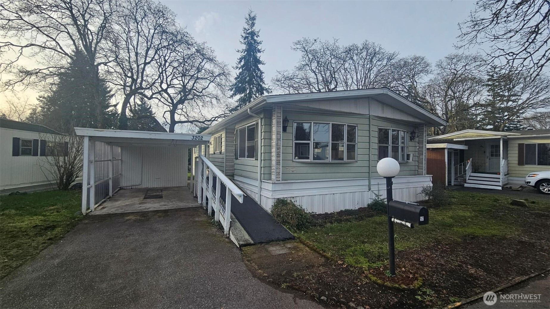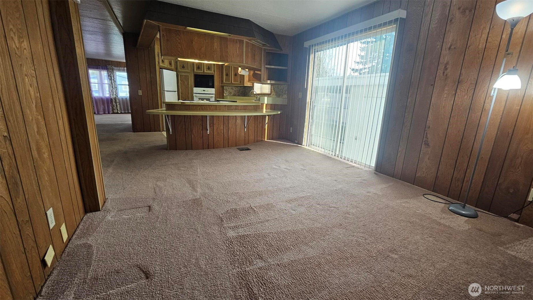 Conveniently located near the freeway in a larger quiet park setting. This large doublewide features a separate living and dining room with 2 beds and 2 baths. The primary bathroom has a walk in jetted tub. Clean, Tidy and ready to move in or, Either some new carpeting or new flooring and it will feel like new.