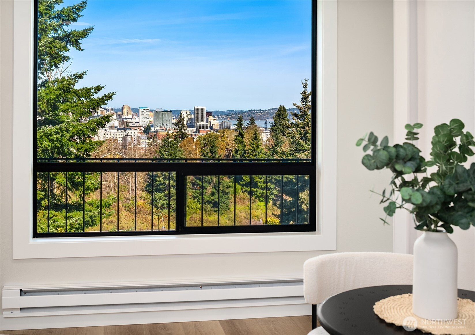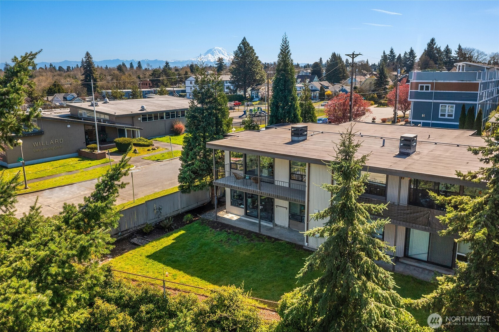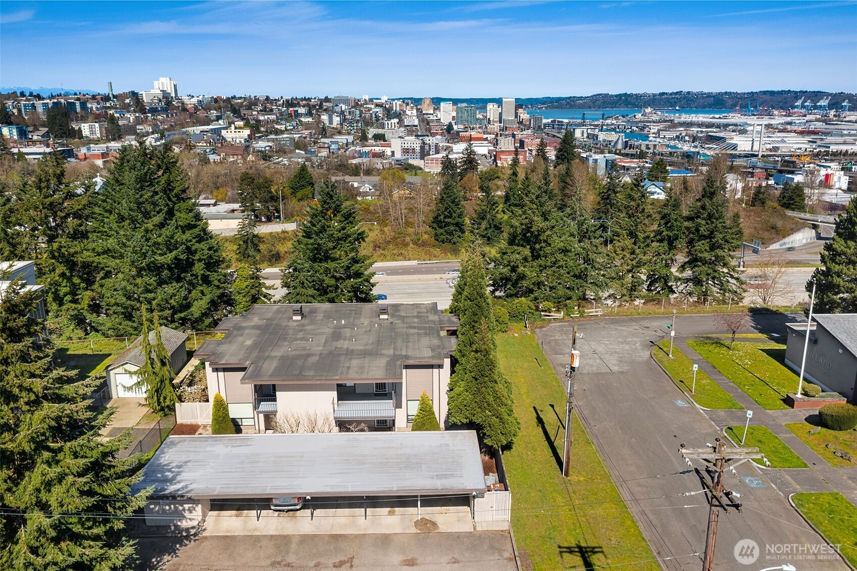 Perched above the city, this striking mid-century modern style fourplex captures sweeping views of downtown Tacoma, Commencement Bay, and the Tacoma Dome from every level. A true standout, the property features oversized units that live large and feel more like homes than apartments. The lower-level one-bedroom units span nearly 1,000 sqft each, complete with fully fenced yards and stunning views both inside and out in the large yards. Upstairs, the spacious two-bedroom units approach 1,100 sqft and showcase fully rebuilt decks with storage, plus incredible view from every north-facing window. Three of the four units have been beautifully renovated with fresh paint, updated lighting, new flooring, and stylish kitchens and baths. The newly completed fully renovated upper-right unit shines with a designer kitchen featuring under-cabinet lighting, a rare full-size pantry, new appliances, new flooring and carpet, all-new lighting, and a thoughtfully upgraded bath with heated tile floors. Ideal for an owner-occupant seeking a savvy “house hack” or an investor looking to maximize rents, this property delivers flexibility and upside. Ample covered parking, tons of street parking, and an on-site laundry room with nearly new machines add both convenience and additional income. A rare opportunity to own a view property with scale, style, and strong income potential - this is one you don’t want to miss.