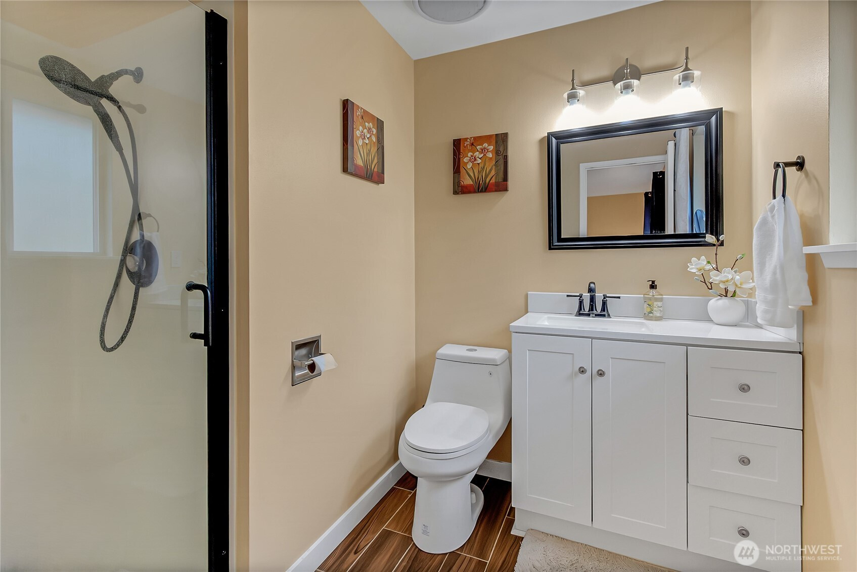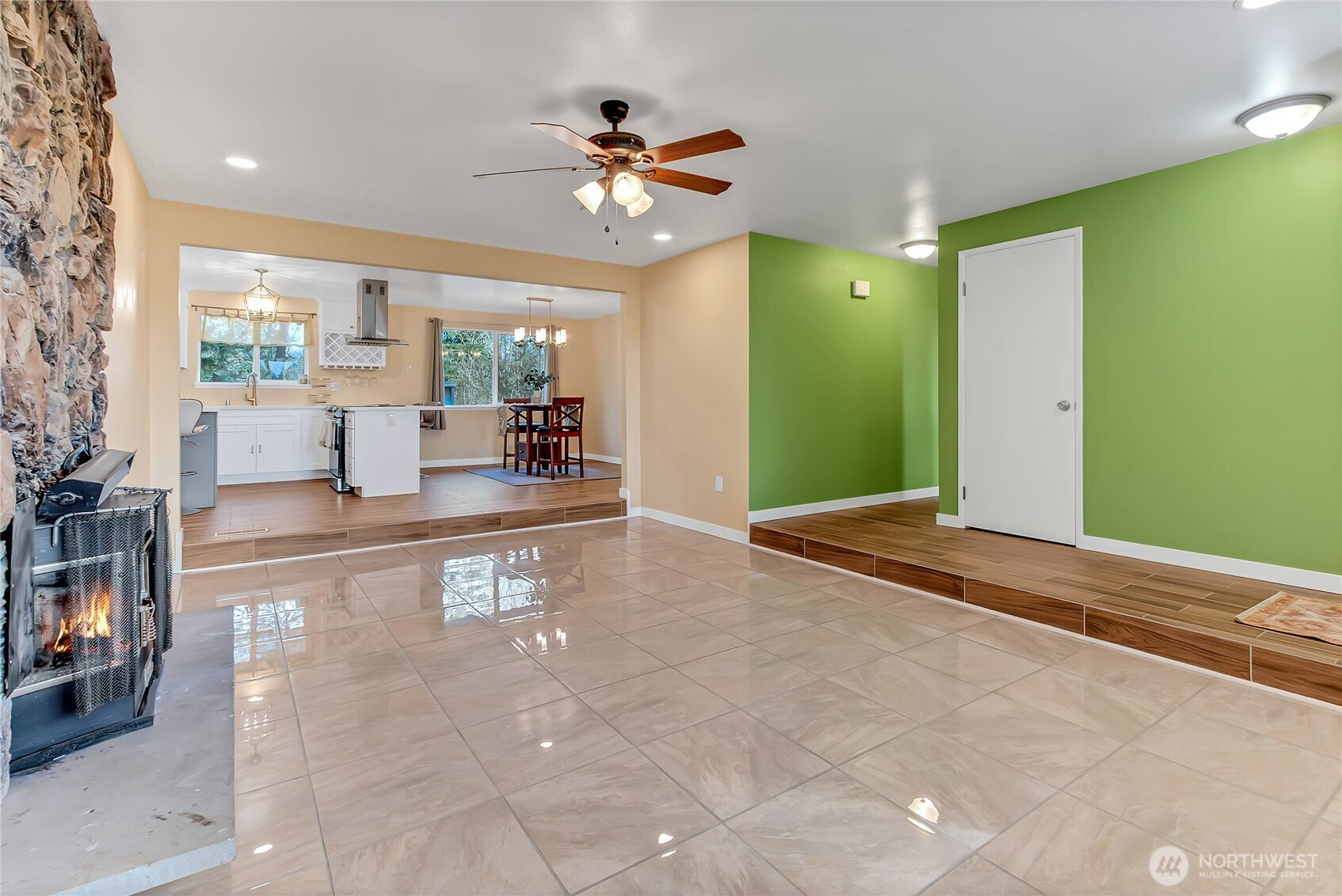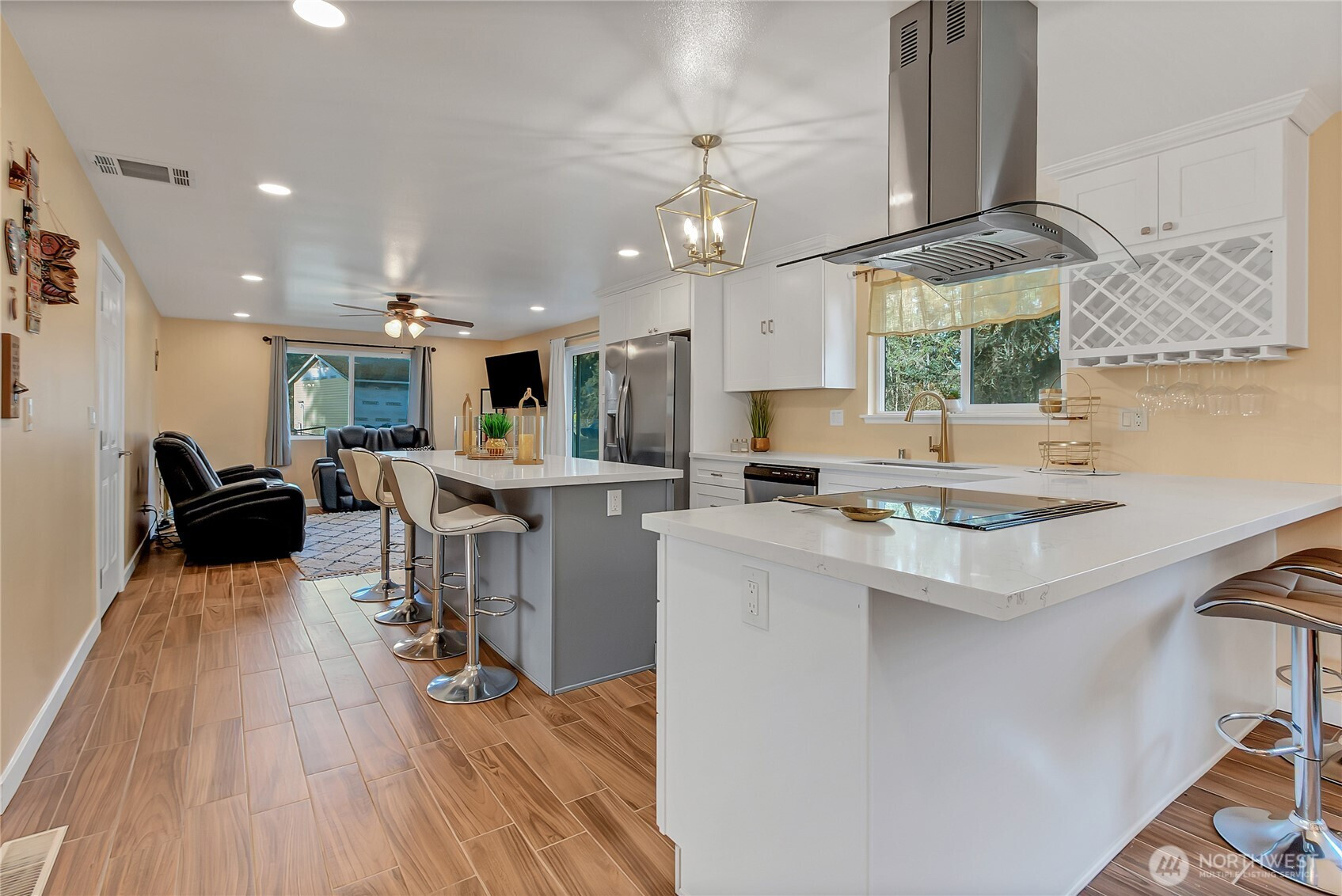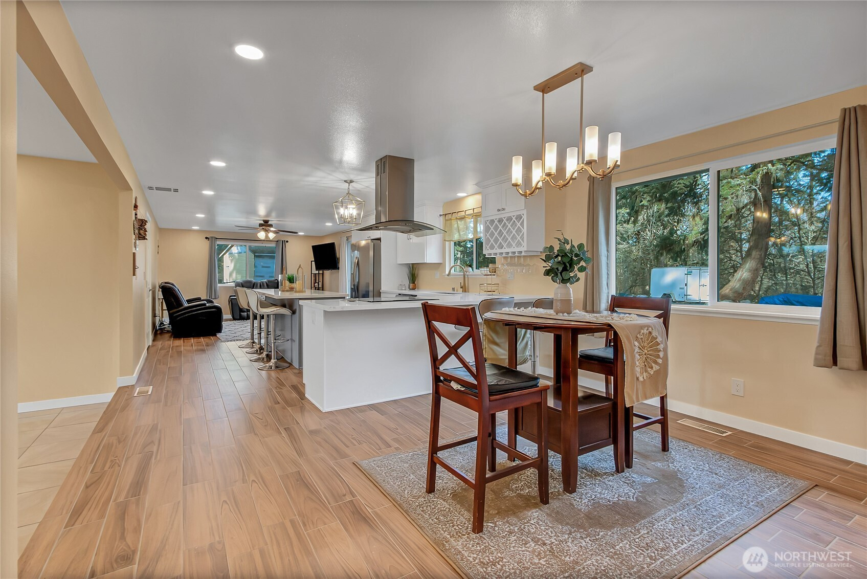 Modern day living with room to breathe! Experience the best of both worlds in this stunning, turn-key rambler situated on a rare, level 1-acre lot. Completely reimagined from the studs up, this home features a bright, open-concept layout perfect for modern living. Meticulously remodeled 3-bedroom, 2-bathroom home with 1,690 sq. ft. of seamless, single-level living space designed for gathering & entertaining. The airy designer kitchen with centerpiece island shines with quartz countertops, soft-close Shaker cabinets & stainless appliances, bringing the spacious living & family rooms together. Impressive primary with ensuite & two additional rooms. Step outside to your private oasis—a full acre of usable land with no HOA restrictions. Whether you dream of a massive shop, a hobby farm, or just ultimate privacy, this property delivers. Upgrades include: NEW roof, kitchen & bathrooms, A/C, porcelain & ceramic tile floors, gutters, and fresh interior & exterior paint. The home backs to a greenbelt for added privacy and offers an incredible amount of storage, parking, and additional building space. Plenty of room for all your toys, RVs & outdoor hobbies. Located just minutes from Spanaway amenities, Joint Base Lewis-McChord (JBLM), and Fredrickson Industrial Area, one of the largest industrial hubs in Pierce County with major anchors including Boeing, Amazon, Ikea, Whirlpool, Best Buy & many more. The perfect blend of suburban convenience & rural tranquility. Welcome home!