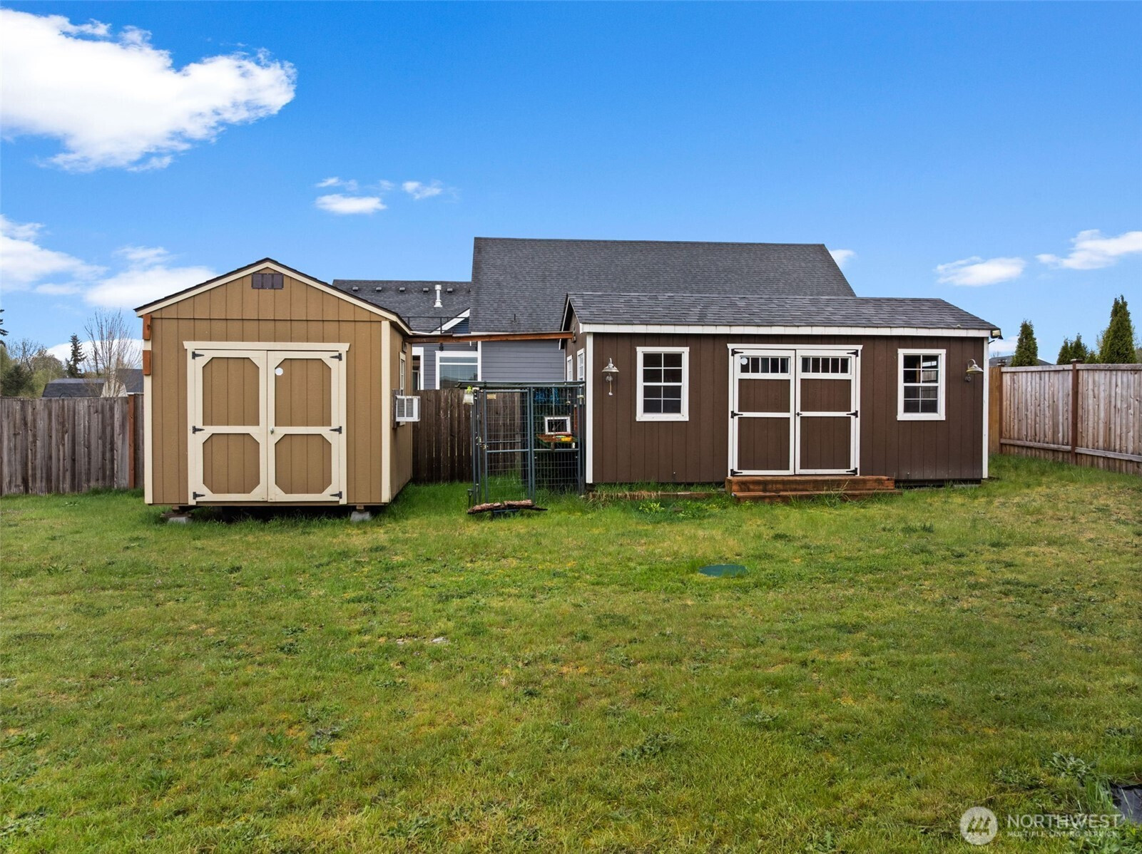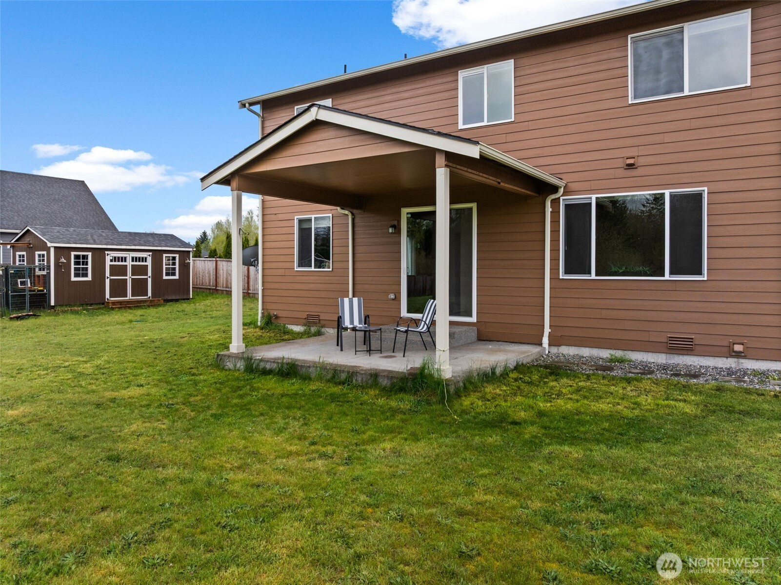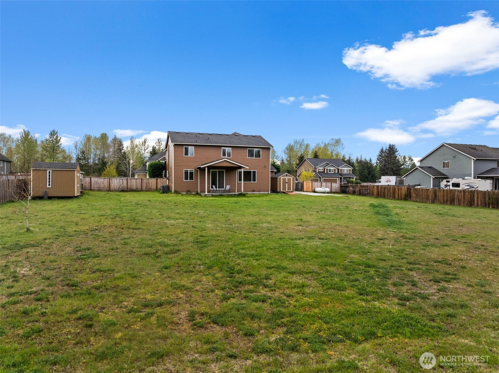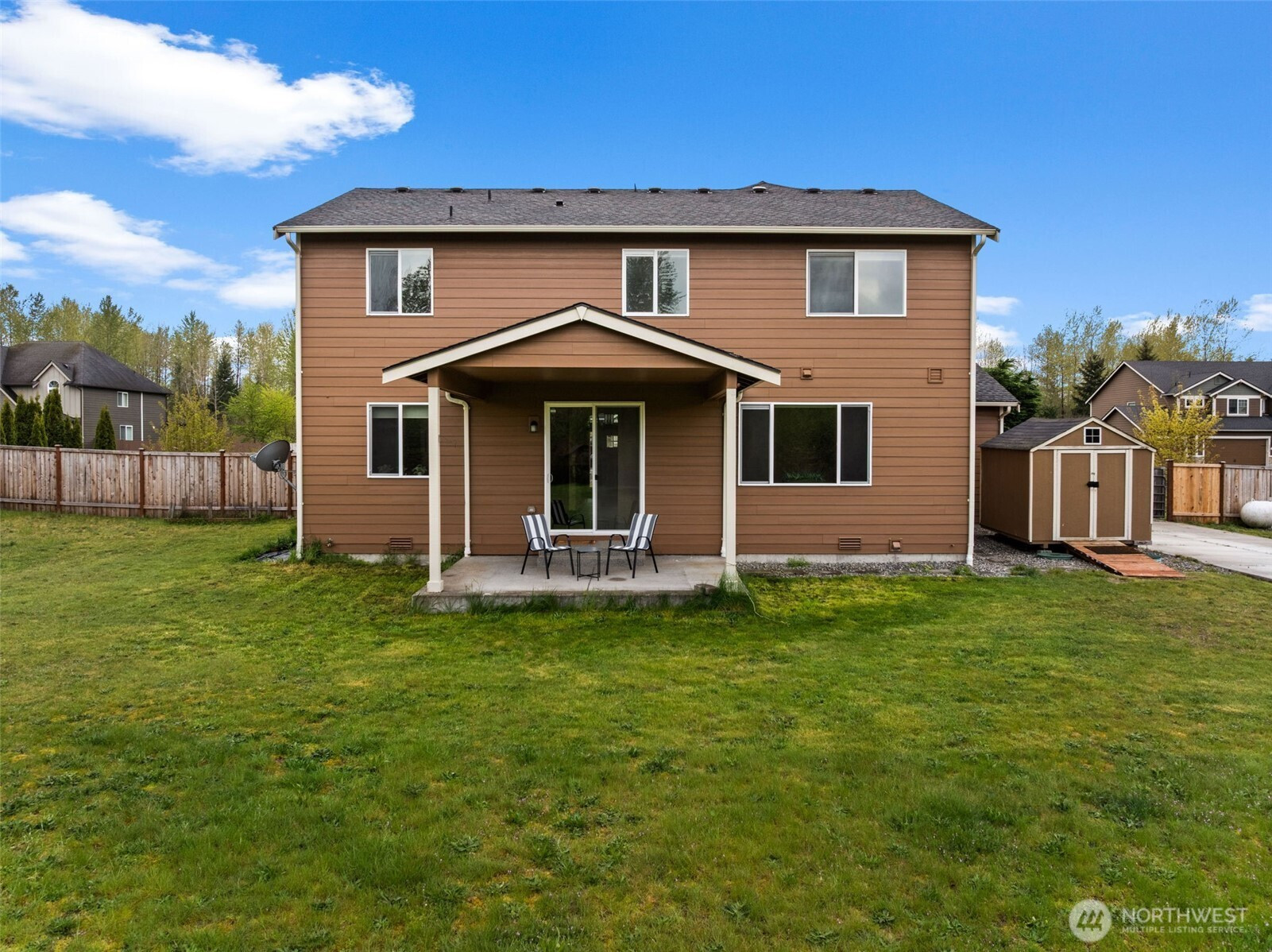 Tucked away on a quiet cul-de-sac in the highly sought-after Lacamas Valley Estates, this beautifully updated and thoughtfully designed home showcases a bright, open-concept floor plan with a spacious 3-car garage, inviting family and dining areas, and a stunning gourmet kitchen featuring rich granite countertops and generous prep space. Fresh exterior paint, stylish LVP flooring, and modern fixtures create a warm yet sophisticated feel throughout. Upstairs, you’ll find three well-appointed bedrooms, two full baths, a spacious rec room, and an open landing area, all enhanced by picturesque Mt. Rainier views. Built in generator that has automatic cutover during power outages. Step outside to your own private retreat with a covered patio, fully fenced yard, cozy firepit, and a sprawling acre offering exceptional flexibility, including secure RV parking. Three versatile outbuildings (8x10, 10x12, 10x20) provide abundant storage or hobby space. Ideally located near neighborhood parks with convenient access to Roy, Yelm, and JBLM, this property blends comfort, functionality, and scenic Northwest living.