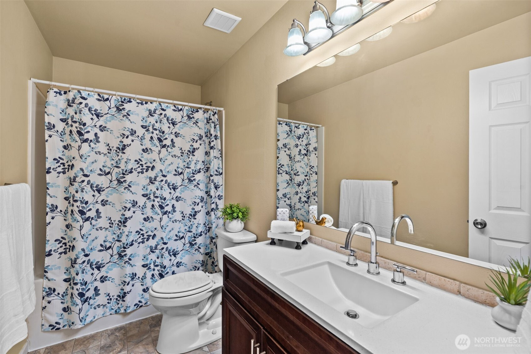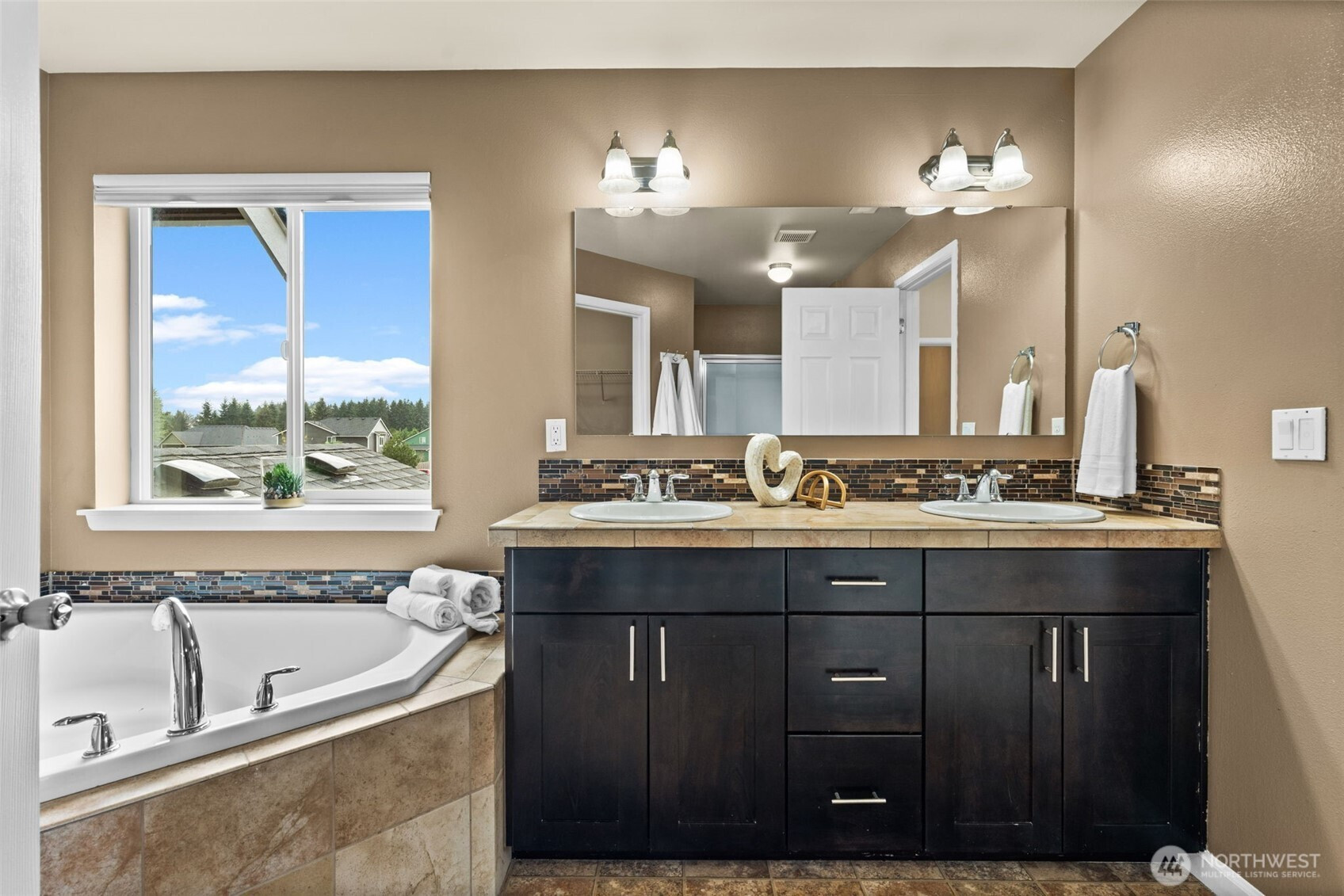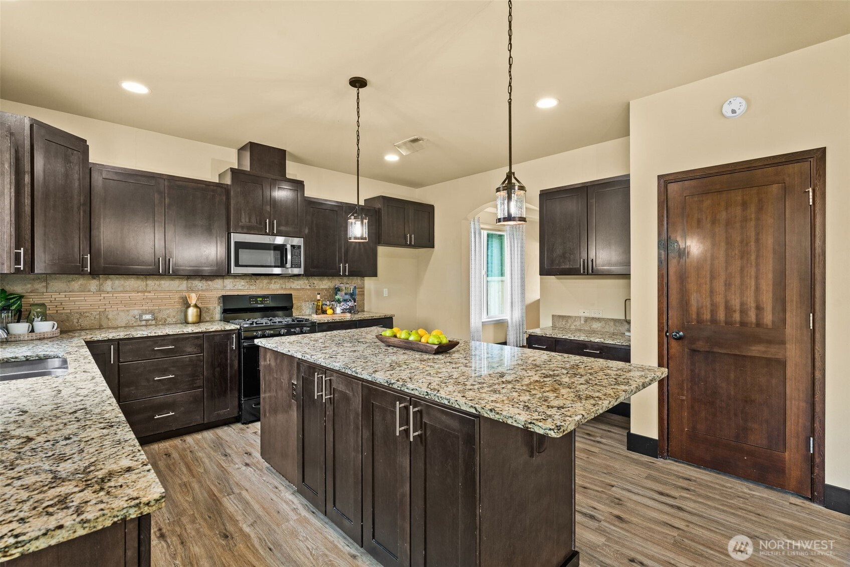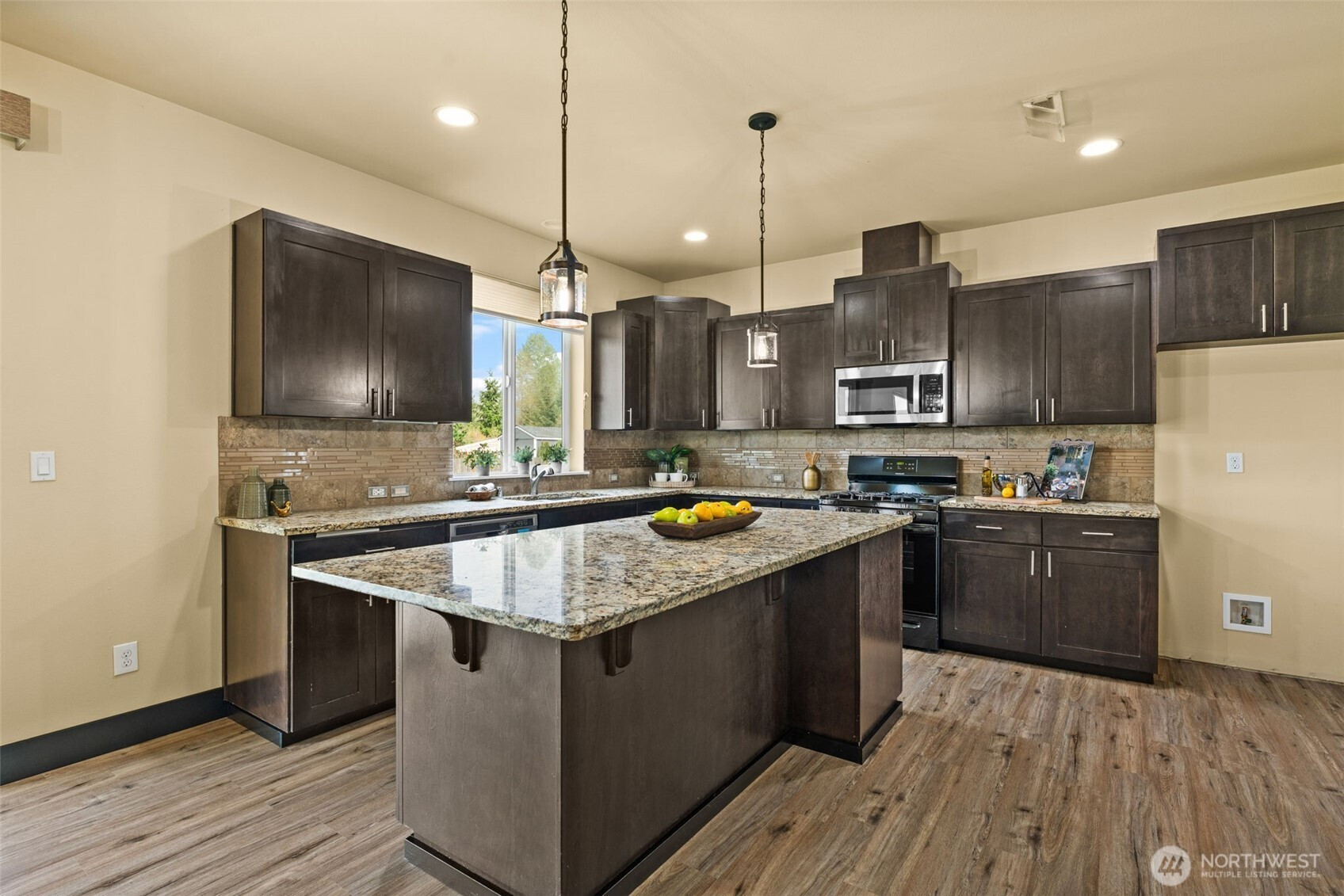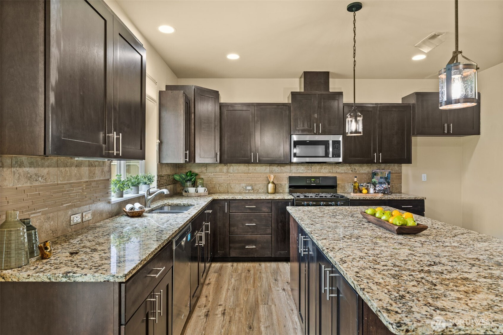Tucked away on a quiet cul-de-sac in the highly sought-after Lacamas Valley Estates, this beautifully updated and thoughtfully designed home showcases a bright, open-concept floor plan with a spacious 3-car garage, inviting family and dining areas, and a stunning gourmet kitchen featuring rich granite countertops and generous prep space. Fresh exterior paint, stylish LVP flooring, and modern fixtures create a warm yet sophisticated feel throughout. Upstairs, you’ll find three well-appointed bedrooms, two full baths, a spacious rec room, and an open landing area, all enhanced by picturesque Mt. Rainier views. Built in generator that has automatic cutover during power outages. Step outside to your own private retreat with a covered patio, fully fenced yard, cozy firepit, and a sprawling acre offering exceptional flexibility, including secure RV parking. Three versatile outbuildings (8x10, 10x12, 10x20) provide abundant storage or hobby space. Ideally located near neighborhood parks with convenient access to Roy, Yelm, and JBLM, this property blends comfort, functionality, and scenic Northwest living.