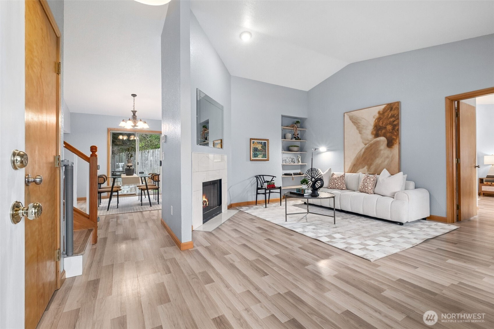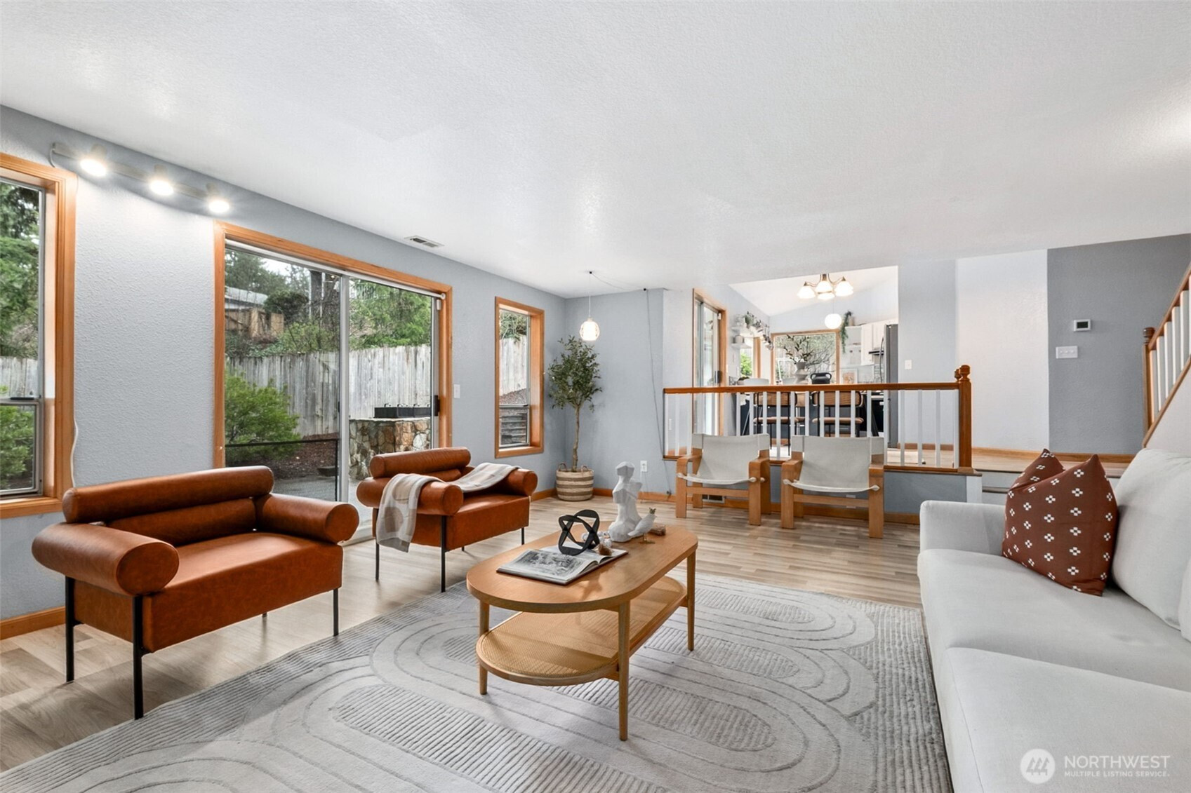 Beautifully updated charming home tucked away on a quiet cul-de-sac! A covered front porch warmly invites you in, setting the tone for the comfort and character found throughout. Inside, you'll find beautiful luxury laminate plank flooring throughout the home. Stunning living room with cathedral ceilings and a cozy fireplace. The thoughtfully designed layout includes a rare main-floor Primary Suite featuring an updated bathroom with eye-catching river rock flooring and surround. Upstairs offers a second primary suite with full bath and walk-in closet providing flexibility for guests or multi-generational living. The bright and cheery remodeled kitchen shines with quartz countertops, tile backsplash and seamless flow into the dining area and open family room - ideal for both everyday living and entertaining. New roof was installed in September, 2025. Air conditioning unit is 3 years. Step outside through the sliding glass door to the big patio complete with two built-in barbecue pits and a wrap-around deck, ready for gatherings year-round . Additional highlights include generator wiring, a fully fenced backyard featuring a dog run, Greenhouse, fruit trees and raised garden beds. Dash to the freeway! This is truly a rare find!