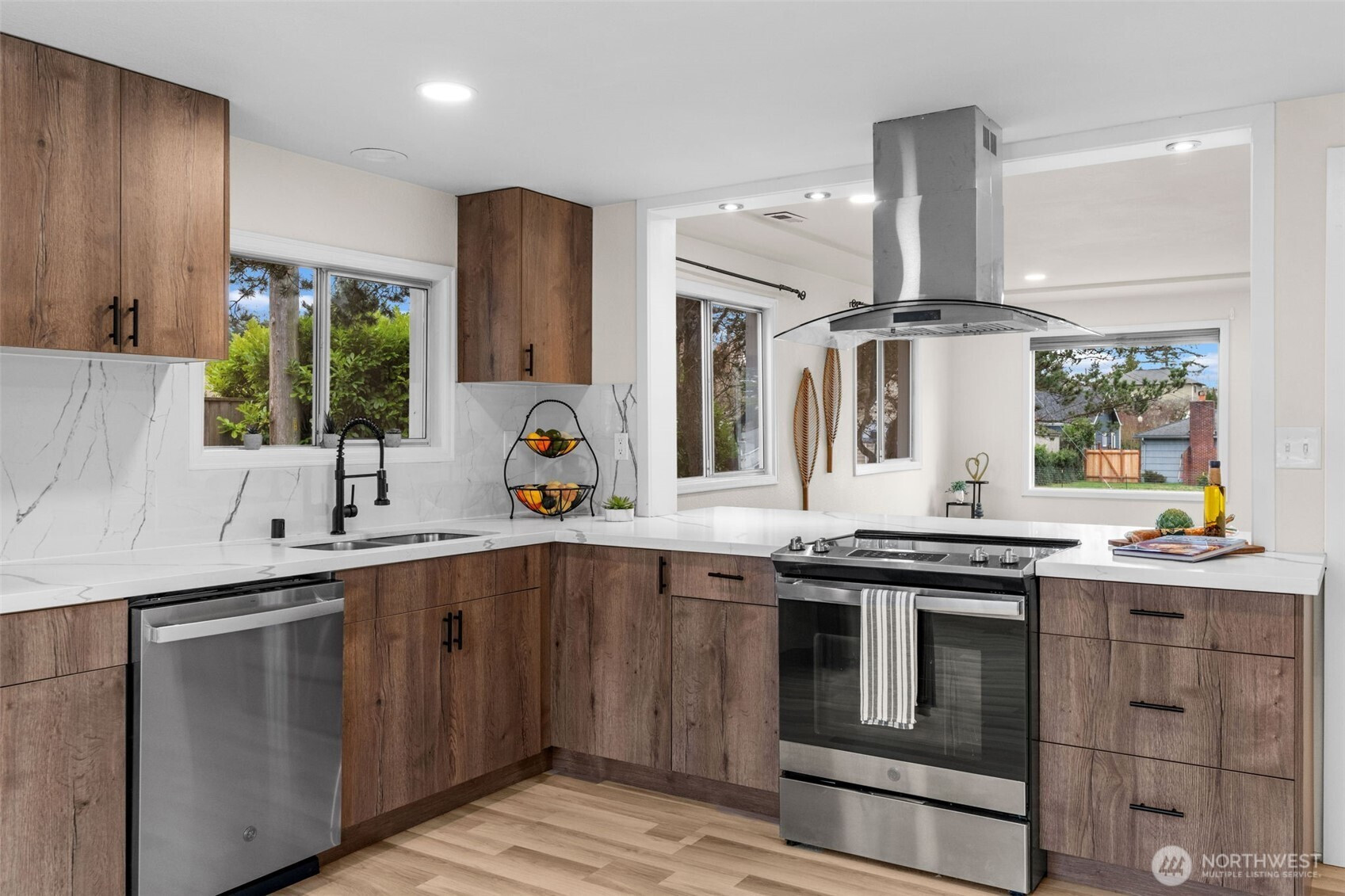 Location, location, location. This home is ideally situated near the entrance to Puget Park Trail and the Puget Creek Natural Area. Enjoy a tranquil, tree-covered trail that leads directly to the Ruston Way waterfront. Just minutes away are the charming shops, dining, and Saturday Farmers Market in the Proctor District. The expansive, light-filled yard is perfect for the urban gardener and outdoor enjoyment. The private patio offers a covered area as well as open air. Great storage area for all of your gardening needs is artfully tucked away. Inside, the home was beautifully remodeled in 2022 and features an open living, dining, and kitchen area filled with natural light. Three bedrooms are located on the main level, including a primary suite with an attached bath. Down the hall is a spacious family room with a cozy wood burning fireplace, offering wonderful additional living space. New HVAC with heat pump to keep you comfortable year-round. Downstairs is a versatile ADU with a kitchen area and a three-quarter bath. With a dedicated waiting area, it is ideal for a home business, guest suite, or flexible living arrangement. Storage abounds throughout the home, including a finished upper storage area accessed by pull-down stairs. This home offers an exceptional combination of location, tranquility, and flexibility in one of North Tacoma’s most sought-after neighborhoods.