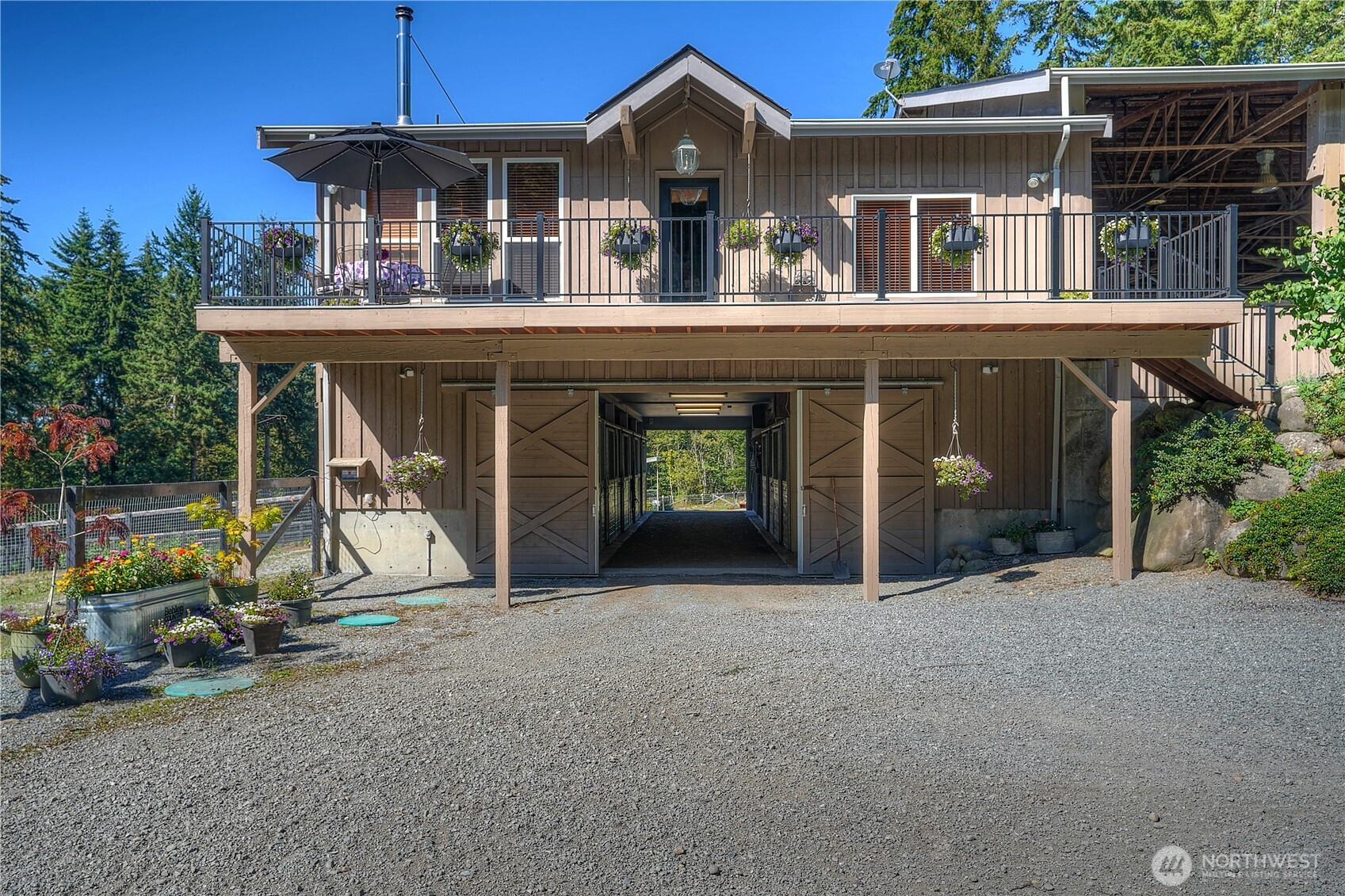 Liberty Farms Sport Horse Company! A distinctive private equestrian property setting offers a 7-stall barn with hot/cold wash rack, tack room, 60 X 120 covered arena, and a 24 X 100 hay barn/equipment/garage - workshop + paddocks/pastures w/loafing sheds. This magical 20 acres boasts 15 wooded acres of marketable (50-year) timber, 5 cleared acres, mini extreme obstacle course, numerous trails throughout, raised garden beds, lighted fire pit & loads of parking. The custom European Style home built above daylight basement barn features a cozy vibe – open concept kitchen to living room with vaulted ceilings, upper end finishes throughout, loft, 2 beds, 2 baths & huge gathering room with unique garage type door that opens into covered arena!