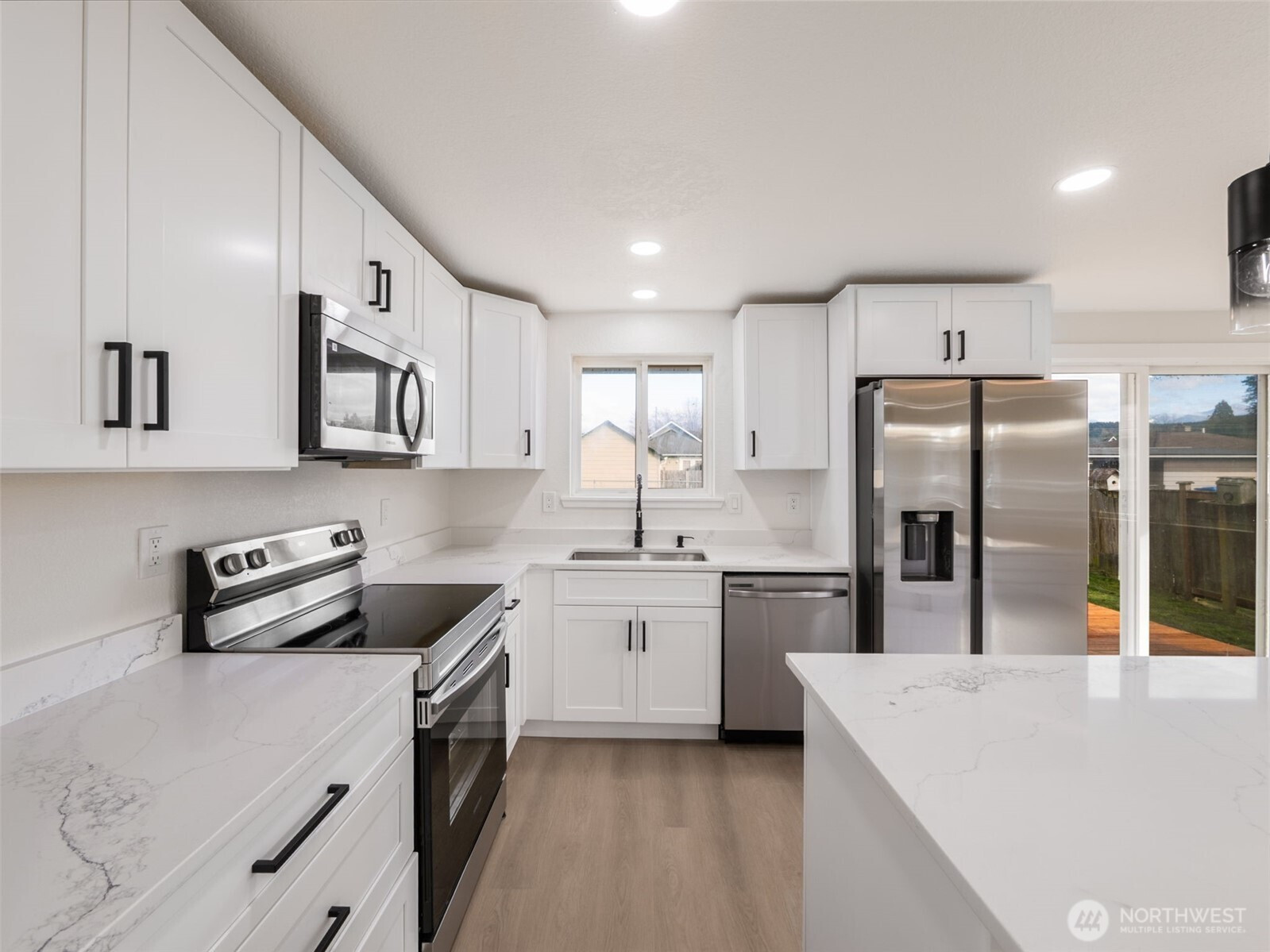 Beautifully remodeled 1,007 sq ft one-story rambler in the heart of Buckley! This inviting home offers a bright and open living space with a warm and welcoming feel throughout. The gourmet kitchen features quartz counters, white shaker cabinets, SS appliances, large island with eating space- making meal prep and everyday living a breeze. The home includes a primary bedroom, two guest bedrooms, and a full bath, offering flexibility for guests, a home office, or hobbies. Step outside to a large yard with new deck, ideal for entertaining, gardening, or simply enjoying the outdoors. Complete with a 1-car garage and conveniently located just minutes to downtown Buckley shopping, dining, entertainment, and schools — this home combines small-town charm with everyday convenience! Don't miss out!!