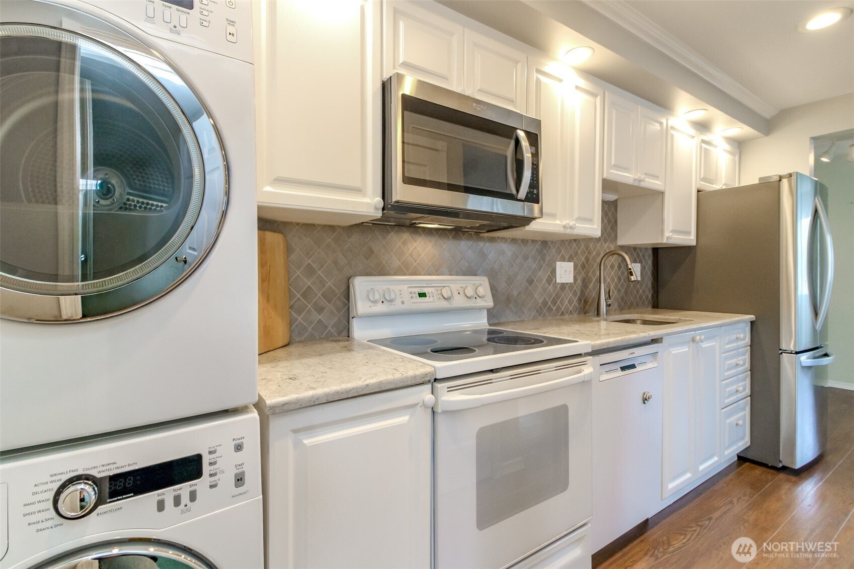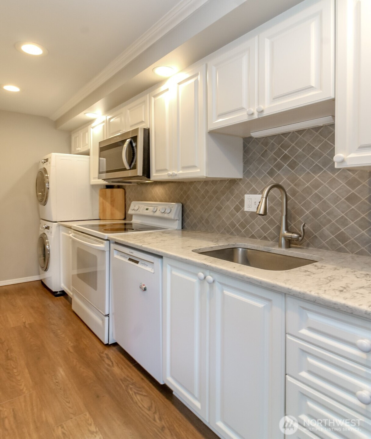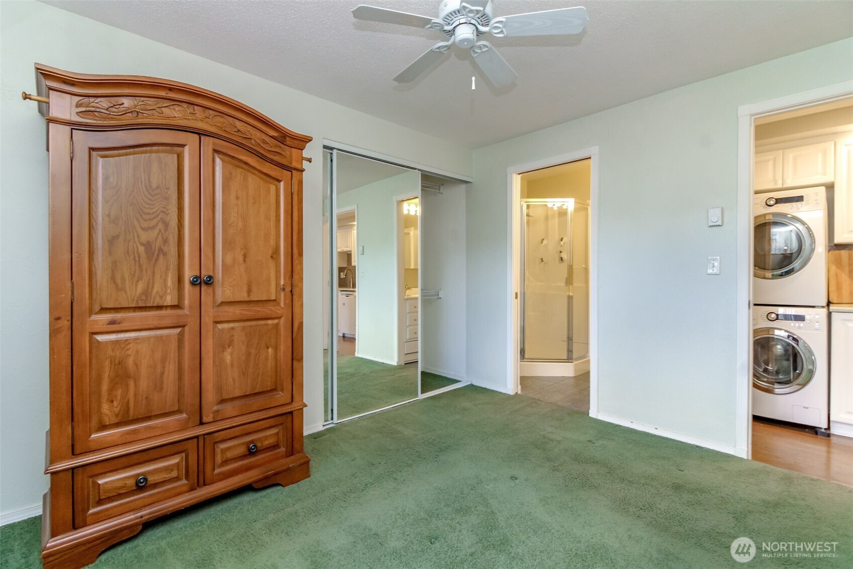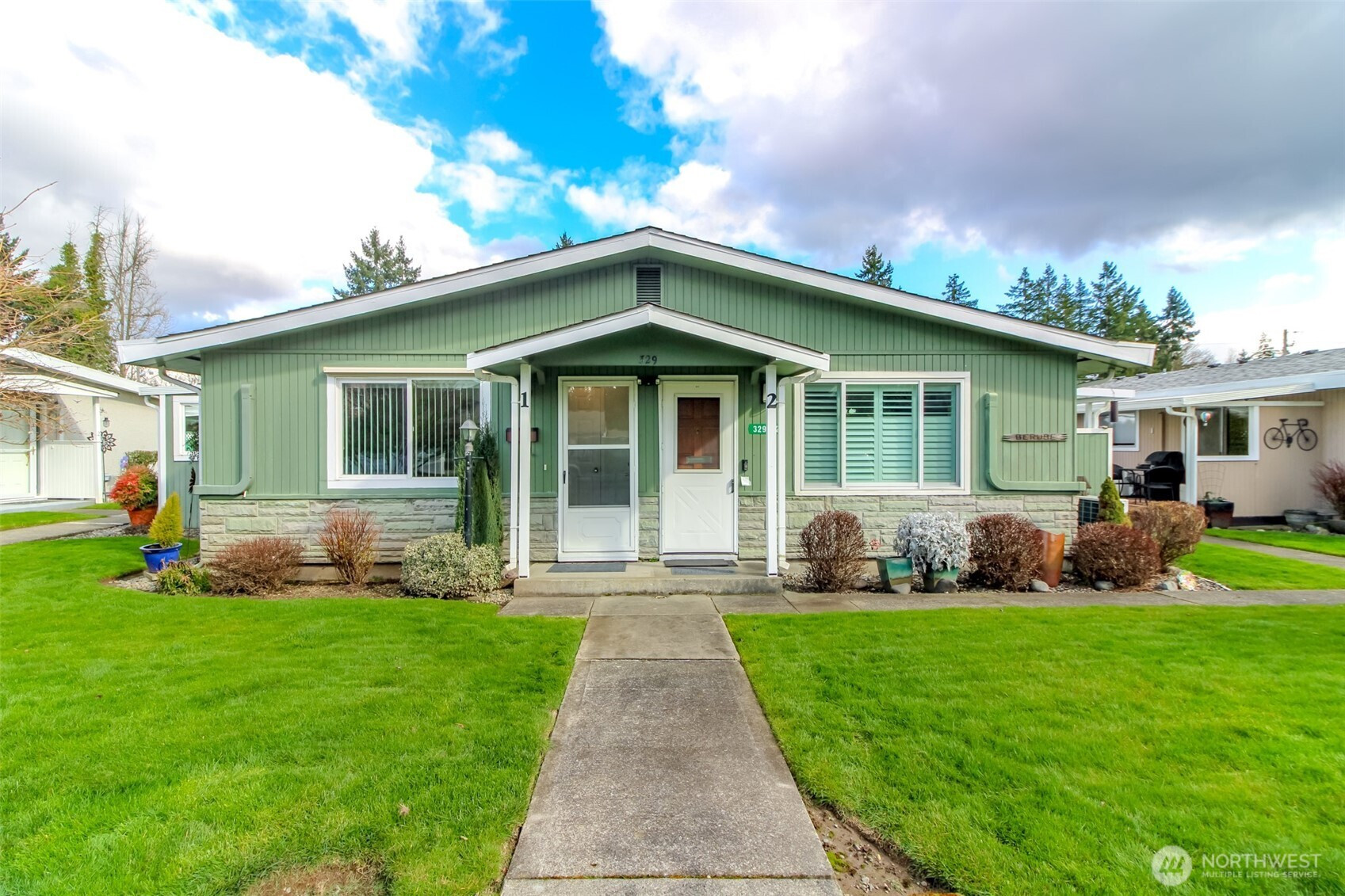 Come view this popular 55+ community at the Viking Co-Op in downtown Puyallup. This tastefully updated 650 sq. ft home features one bedroom, one bath with a bright and open layout. (Armoire in bedroom stays offering additional storage) Thoughtful storage and modern touches make this turn key home an ideal place to downsize. The kitchen features white cabinetry, beautiful tile backsplash, a pantry with pull out shelving, stainless steel appliances and a convenient stackable washer and dryer. The 3/4 bath has additional storage to help keep things organized. The open living room opens to the sizable dining room and access to sliding glass doors leading to the covered deck. A ductless mini splitter offers heat and A/C for year round comfort. This outdoor space is perfect for entertaining and outdoor living. This home comes with a designated carport and two additional assigned storage sheds. It's located near downtown shops, dining, parks and easy commuter access. Monthly dues include water, sewer, property taxes, garbage, landscaping service & exterior building insurance. This well designed home is ideal for buyers seeking style, functionality and a low maintenance lifestyle. Schedule your private tour and get acquainted with this unique property and community.