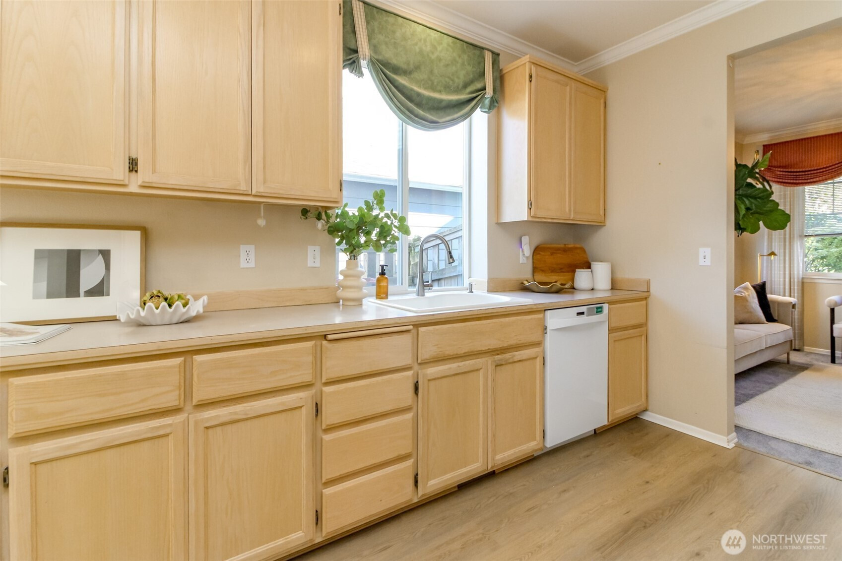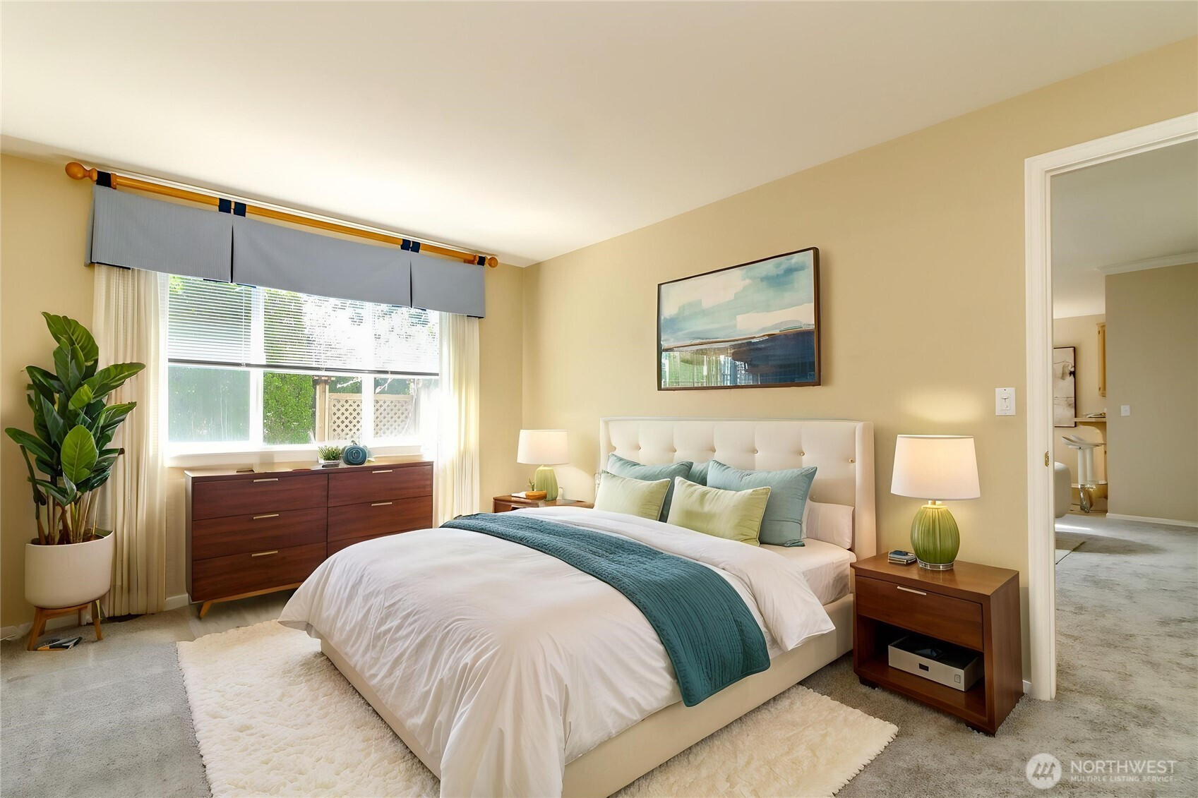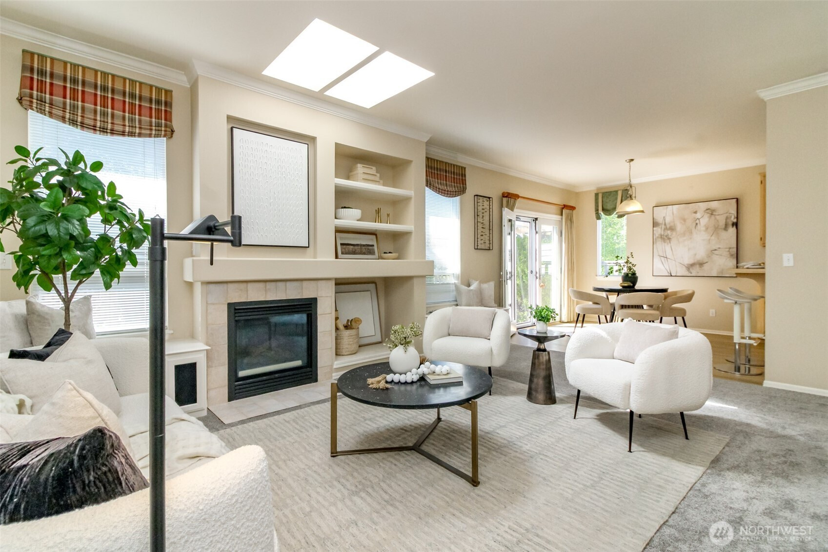 Great opportunity to own! Situated on a quiet street in the Heritage Park neighborhood, this home offers a blend of comfort, functionality, and a private setting. This home has a new electrical panel, brand-new carpet, and new durable luxury vinyl flooring throughout the entire home. The layout includes multiple living areas, and a great central fireplace with built in nooks. Additional shelving adds great charm and storage, while large windows invite in abundant natural light, enhancing the bright atmosphere throughout. Step out to the spacious, private backyard retreat. The patio provides an ideal space for year-round enjoyment, whether hosting gatherings or simply unwinding in a quiet setting. The primary bedroom is a main-level suite, providing convenience and accessibility. The attached primary bathroom features double sinks and a spacious walk-in closet. Additional features include a two-car garage for ample parking and storage, as well as low annual HOA dues. This is a great move-in-ready home inside a peaceful, community-oriented neighborhood. This lovely home has a great centrally located community park, as well. Local to the community Center at Norpoint, schools, shopping, and more!
