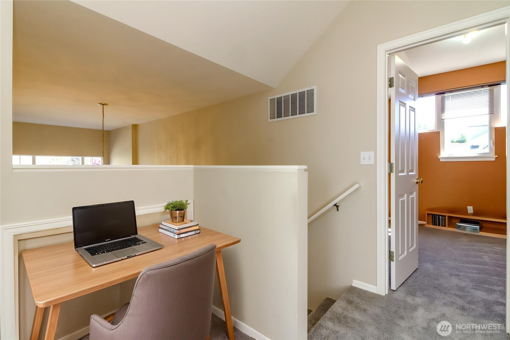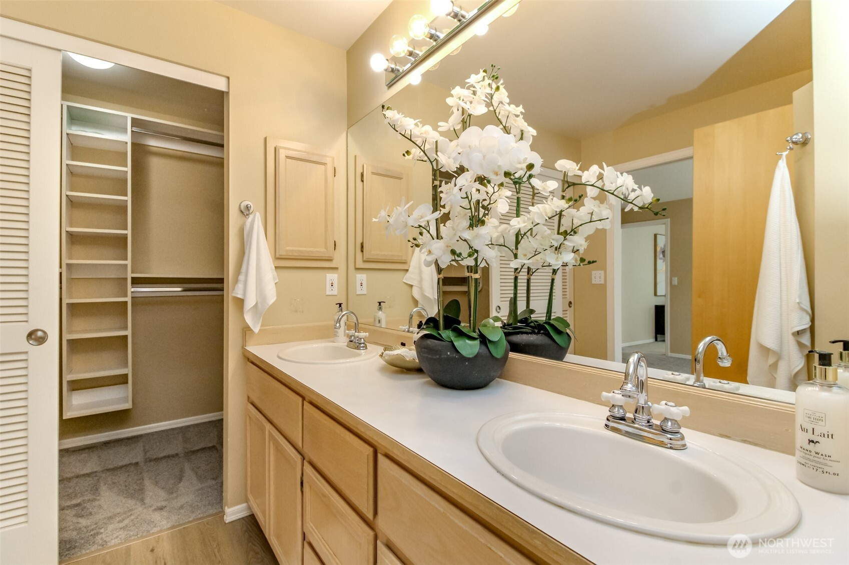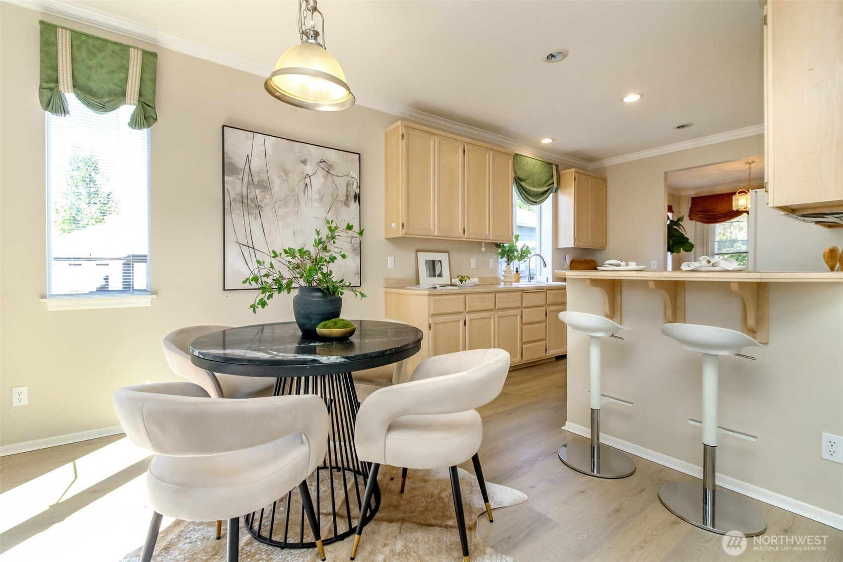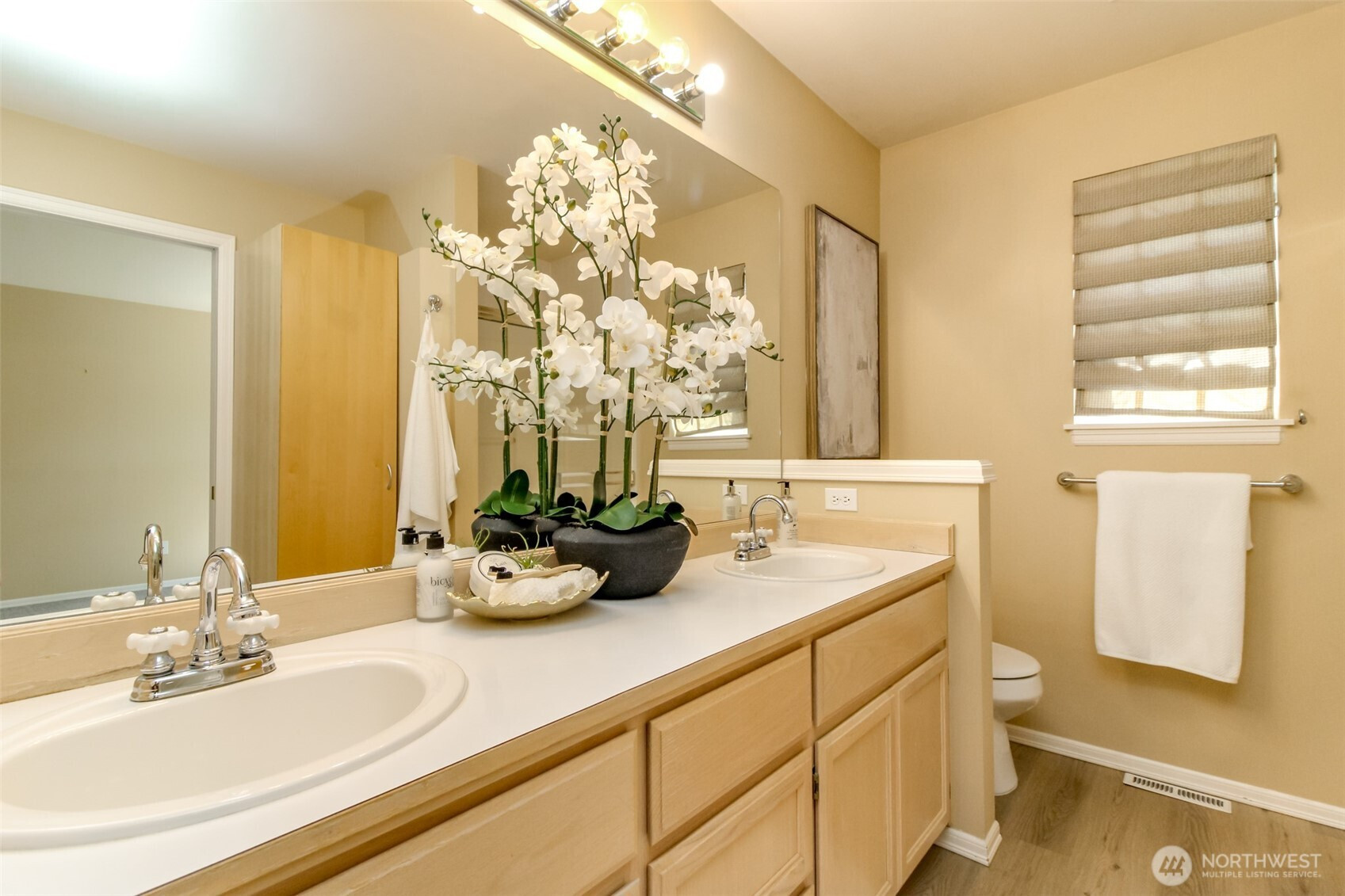 Great opportunity to own! Situated on a quiet street in the Heritage Park neighborhood, this home offers a blend of comfort, functionality, and a private setting. This home has a new electrical panel, brand-new carpet, and new durable luxury vinyl flooring throughout the entire home. The layout includes multiple living areas, and a great central fireplace with built in nooks. Additional shelving adds great charm and storage, while large windows invite in abundant natural light, enhancing the bright atmosphere throughout. Step out to the spacious, private backyard retreat. The patio provides an ideal space for year-round enjoyment, whether hosting gatherings or simply unwinding in a quiet setting. The primary bedroom is a main-level suite, providing convenience and accessibility. The attached primary bathroom features double sinks and a spacious walk-in closet. Additional features include a two-car garage for ample parking and storage, as well as low annual HOA dues. This is a great move-in-ready home inside a peaceful, community-oriented neighborhood. This lovely home has a great centrally located community park, as well. Local to the community Center at Norpoint, schools, shopping, and more!