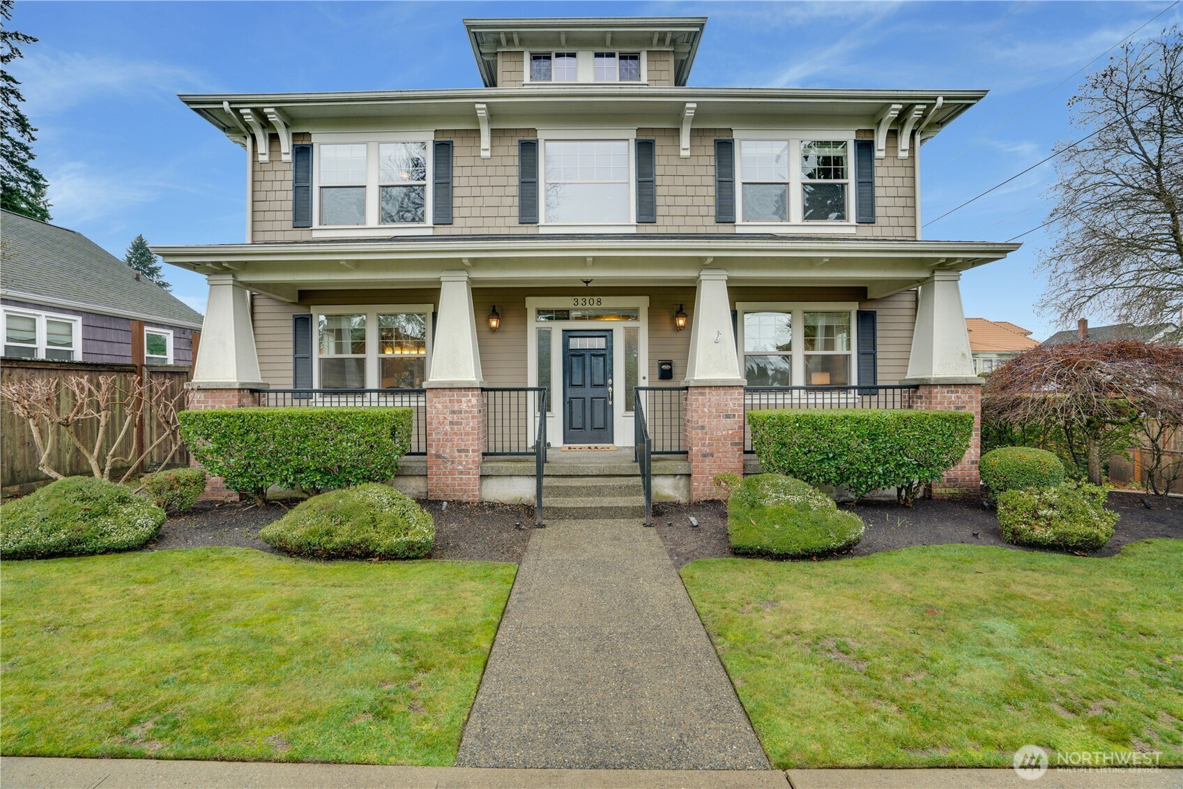 Nestled on a private lot near Tacoma’s Proctor District, this exquisite home blends timeless elegance with modern comfort. A soaring entry showcases rich hardwoods, handcrafted millwork, and sun-filled windows. The great room features a bay window, a gas fireplace with custom bookshelves, and opens to a chef’s kitchen with a double-door refrigerator, six-burner gas range, walk-in pantry, and butlery. Enjoy formal dining, main floor guest room/office, and spa-inspired primary suite with generous walk-in closet. Two bedrooms plus three full baths add to the floor plan. The beautifully landscaped backyard with an expansive patio and garden studio makes this home an entertainer’s dream! Don’t miss the basement bonus room and three-car garage.